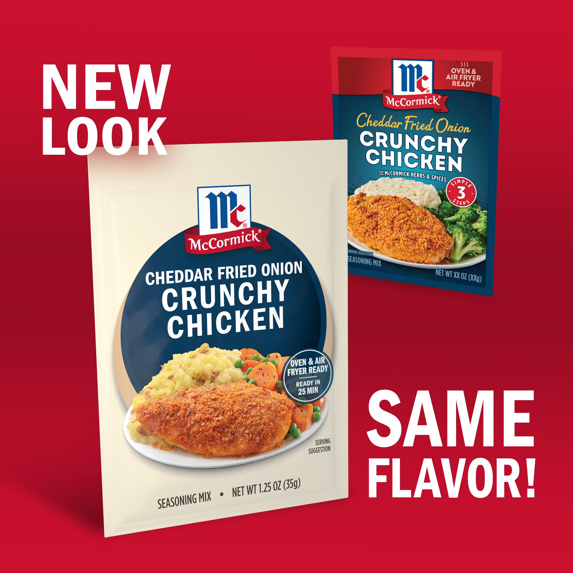 - McCormick® Cheddar Fried Onion Crunchy Chicken Seasoning Mix tempts even picky eaters with its crunch and cheesy, oniony flavor. Just 5 minutes prep and 3 simple steps needed to get a tasty chicken dinner to the table