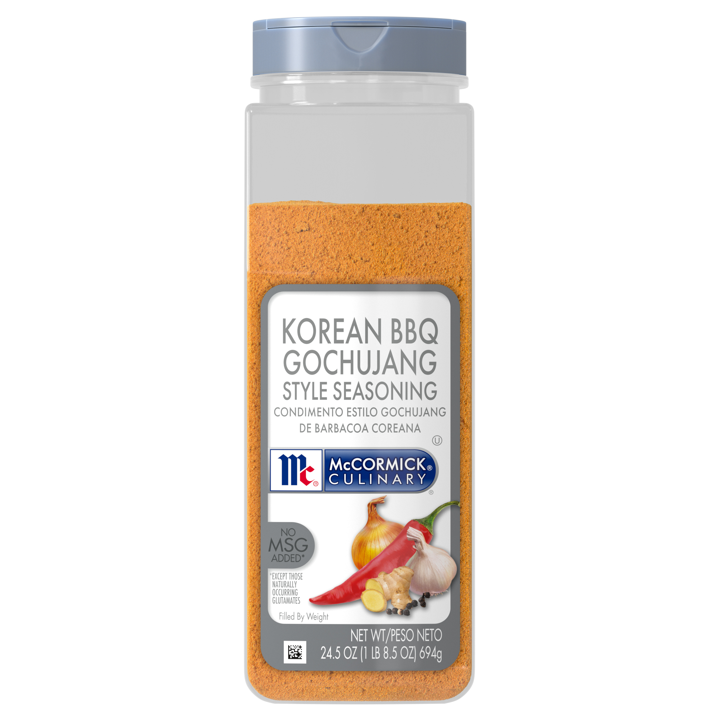 Extra Long Description Treat customers to the distinctive flavor of McCormick Culinary Korean BBQ Gochujang Style Seasoning. Ready to use straight from the bottle, this convenient seasoning for professional kitchens creates depth of flavor with a balanced heat and sweetness on everything from meat to seafood, vegetables, and more. Gochujang, a staple in Korean cuisine, is a Korean pepper paste made from fermented chilies and beans. Spicy and earthy with a hint of sweetness, gochujang delivers a sophisticated heat and flavor to menu items. Our made-for-chefs seasoning, inspired by the bold flavors of Korean BBQ, makes it effortless to bring gochujang-style flavor to traditional Korean and everyday dishes via ingredients like paprika, red pepper, ginger, chili, and brown sugar. A delicious blend of herbs and spices, gochujang-style seasoning delivers consistent flavor and a modest heat. It’s the perfect middle ground for any culinary professional looking to bring a craveable angle to their menus that will keep patrons coming back for more. Feature 1 KOREAN BBQ GOCHUJANG: Our made-for-chefs seasoning, inspired by the bold flavors of Korean BBQ, brings gochujang-style flavor to life in traditional Korean and everyday dishes. Feature 2 CONVENIENT SPICE BLEND: Made with trusted McCormick Culinary spices including paprika, red pepper, ginger, and chili, plus brown sugar. Feature 3 MADE FOR CHEFS: McCormick for Chefs seasoning blend that makes it quick and easy to deliver memorable Korean BBQ flavor to protein like shrimp, chicken, steak, fish, and more. Feature 4 VERSATILE: Use gochujang style seasoning as a rub before grilling or roasting meats to create distinctive flavor and crust. Feature 5 FEEL GOOD FLAVOR: Seasoning is gluten free with no added MSG* to help you bring bold flavor to patrons with dietary restrictions. (*Except naturally occurring glutamates.) Universal Allergens Contains: Soy, Sesame Seed Benefits - Gluten Free