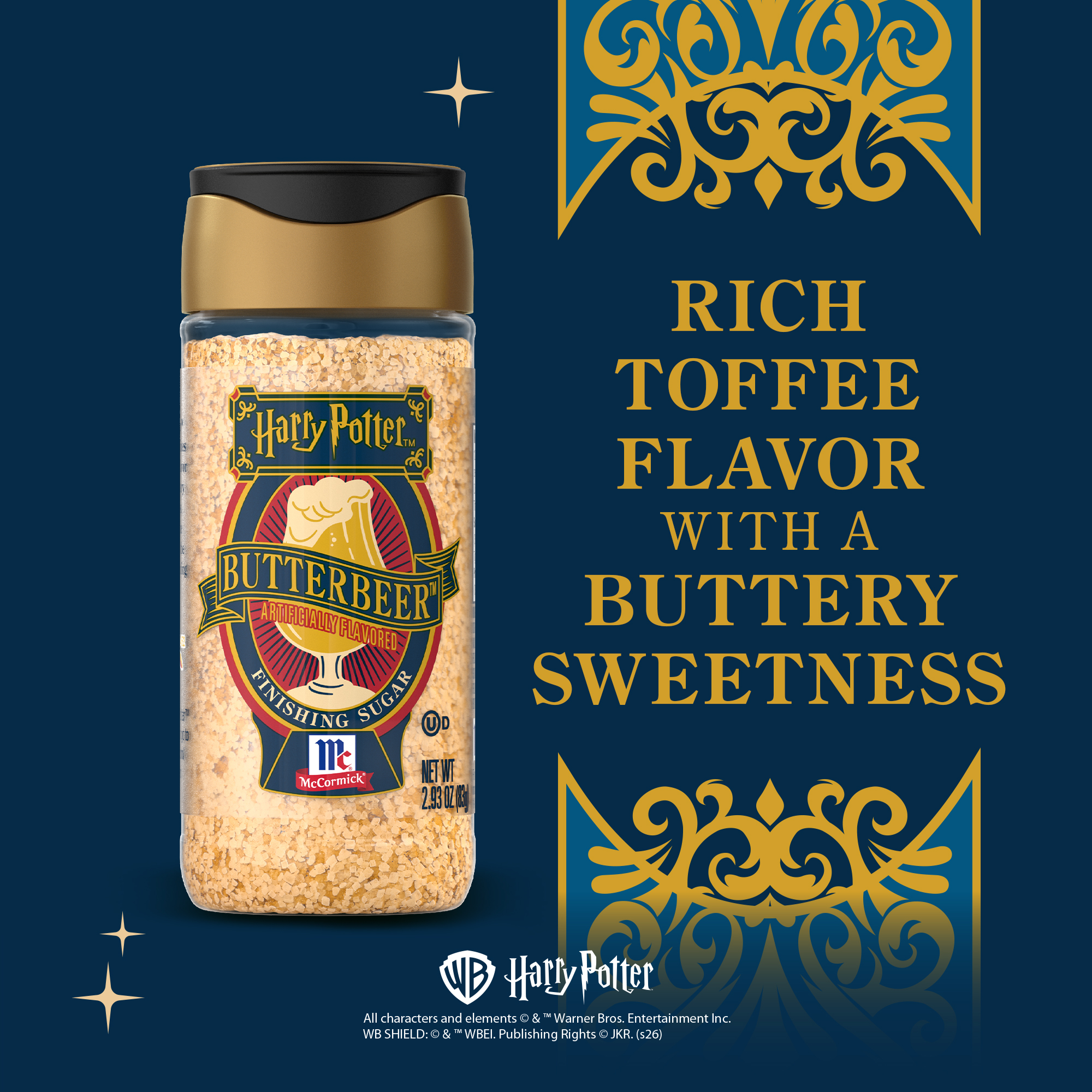 - Experience the magic of Harry Potter with the rich toffee flavor of McCormick® Harry Potter™ Butterbeer™ Artificially Flavored Finishing Sugar. Sprinkle the spellbinding blend onto your favorite sweets and treats and conjure the feeling of enjoying a Butterbeer™ with friends.