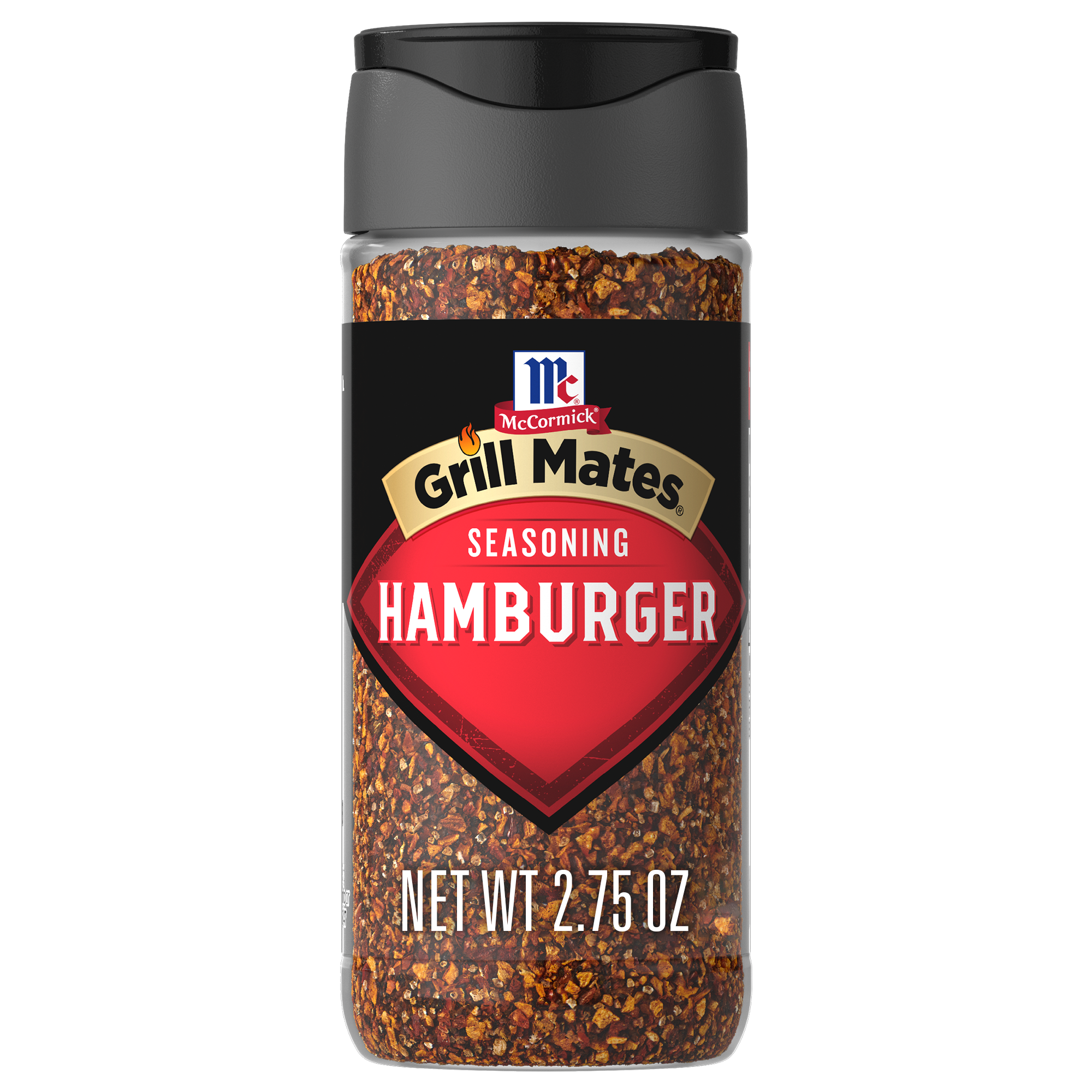 - Master the flame, master the flavor. Make dinner extra special with just a shake of McCormick Grill Mates Hamburger Seasoning. Made with black pepper, chili pepper, onion, red bell pepper, and garlic, our seasoning helps you create bold, juicy burgers.