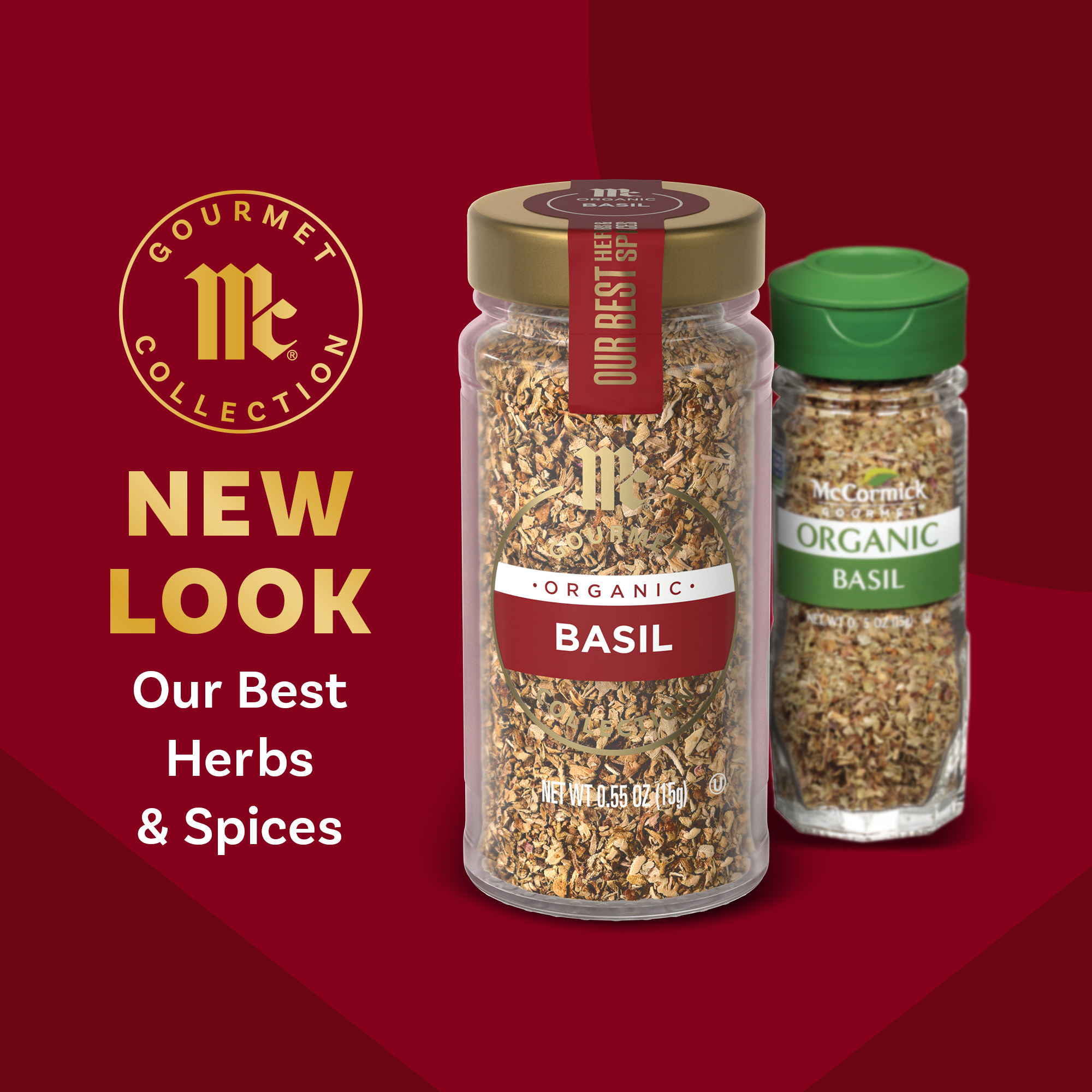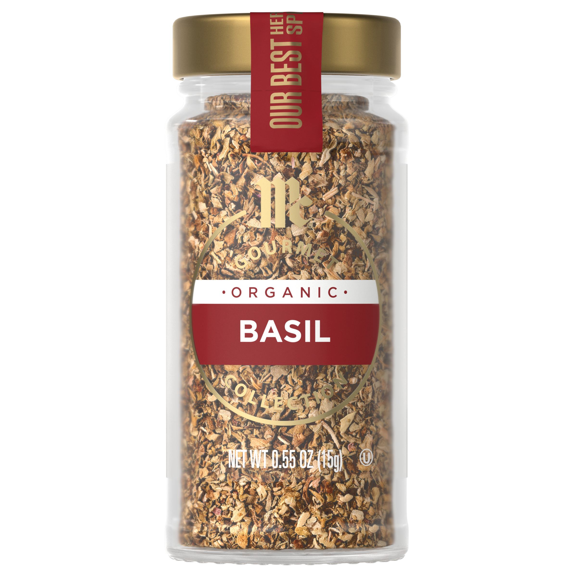- McCormick Gourmet™ Collection Organic Basil, Our Best Herbs & Spices, Sweet, Fragrant, Minty, Anise-Like Flavor, Elevate Grilled Meats, Vegetables, Salads & Seafood, Organic, Non GMO, Kosher, 0.55 oz Discover our finest flavors with the McCormick Gourmet™ Collection of our best herbs and spices — including McCormick Gourmet Collection Organic Basil. Basil brings exceptional taste to your table with its sweet flavor and fragrant aroma.