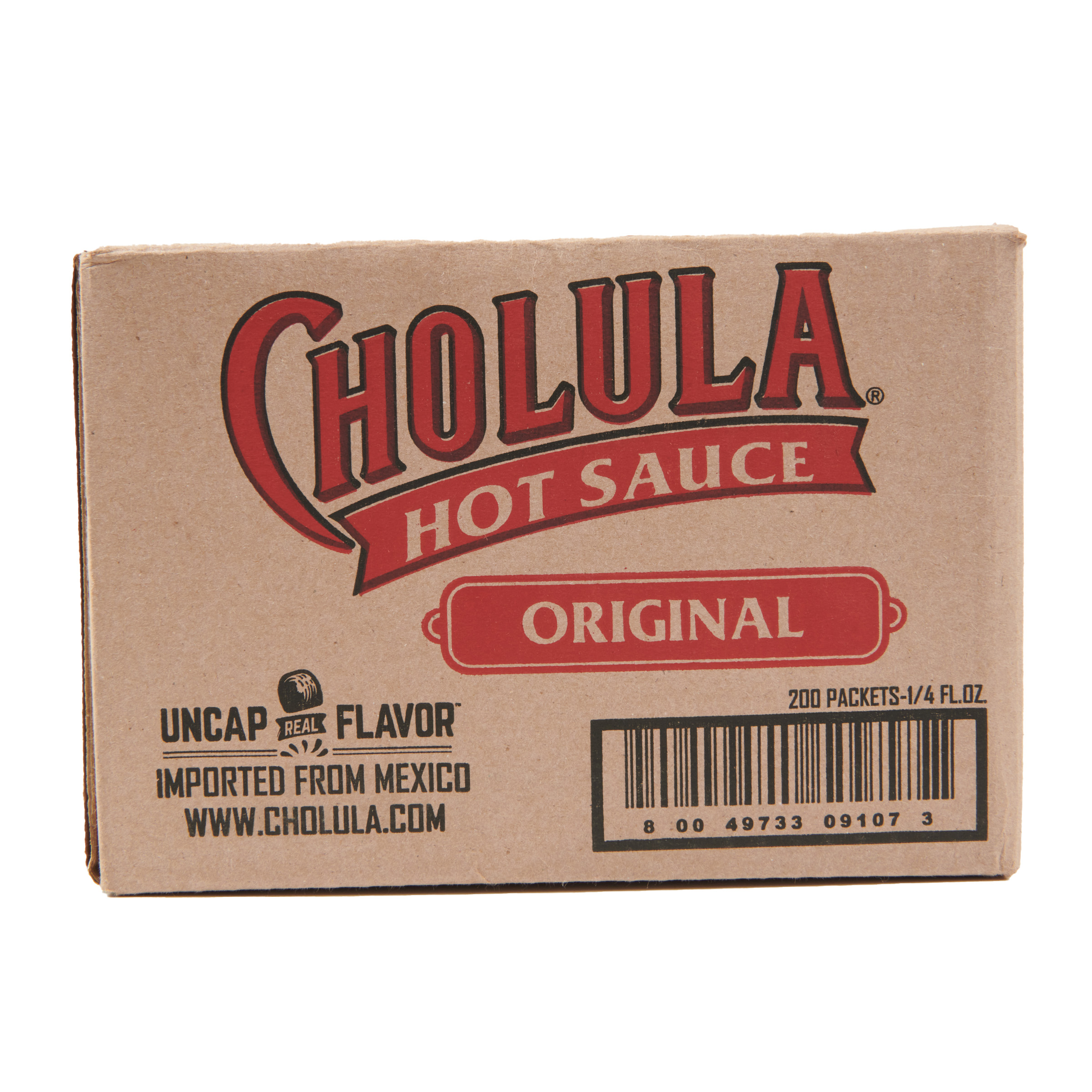 Extra Long Description Cholula Original Hot Sauce is crafted from a generations-old family recipe that features arbol and piquin peppers, with a signature blend of Cholula spices, to deliver Mexican hot sauce heat and flavor. Enjoy Cholula flavor wherever you go with these convenient, single-serve portion packets of hot sauce. Taste the best life has to offer with Cholula Original. Your go-to hot sauce for flavorful heat, it's a perfect partner for everything from eggs to pizza, chili, and Mexican-inspired dishes like carne asada or fish tacos, burrito bowls, nachos, and Margaritas. From our distinctive wooden cap to the original recipe hot sauce inside, every bottle of Cholula is a celebration of great food, flavor, and our Mexican roots. Each drop of Cholula delivers balanced heat and layers of flavor. Whether it's shaking Cholula on your tacos or adding a few drops to a classic breakfast, we'll keep you coming back saying "More, por favor.” Feature 1 SIGNATURE INGREDIENTS: Cholula Original Hot Sauce is made with a thoughtful blend of arbol and piquin peppers plus Cholula spices, inspired by our generations-old family recipe. Feature 2 LAYERED FLAVOR: Every bite of this hot sauce delivers balanced flavor and heat, instantly upgrading favorite foods with a simple shake of the bottle. Feature 3 VERSATILE CONDIMENT: Shake, shake, shake hot sauce over everything from eggs to rice & beans, pizza, wings, and more – anywhere you’re already enjoying hot sauce! Feature 4 FOR MEXICAN DISHES: Give taco, nachos, huevos rancheros, fajitas, enchiladas, and salsa a quick hit of heat. Feature 5 IMPORTED FROM MEXICO: Cholula Hot Sauces are proudly made in Jalisco, Mexico, from generations-old recipes originally prepared for the famed Jose Cuervo family by their beloved cook, known affectionally as “La Chila.” Our distinctive wooden cap celebrates the tradition of Mexican craftmanship that goes into each bottle. Feature 6 PORTION PACKET: Conveniently sized for condiment stations and bringing the signature flavor of Cholula hot sauce wherever you go – school, the office, the big game, and more. Tear, pour, and enjoy. Includes 200 portion packets. Preparation Instructions No preparation necessary. Cholula Original Hot Sauce is ready to use to bring spicy heat and flavor to Storage Instructions To enjoy, we recommend Cholula Original Hot Sauce be consumed within six months of opening, and within its shelf life. Cholula sauce can be consumed past 6 months of opening as long as still within its Best By date. However, the product is more exposed to oxygen which accelerates the degradation of color and flavor. We don’t recommend consuming Cholula past its best by date. Shelf life: 600 days. Benefits - Kosher