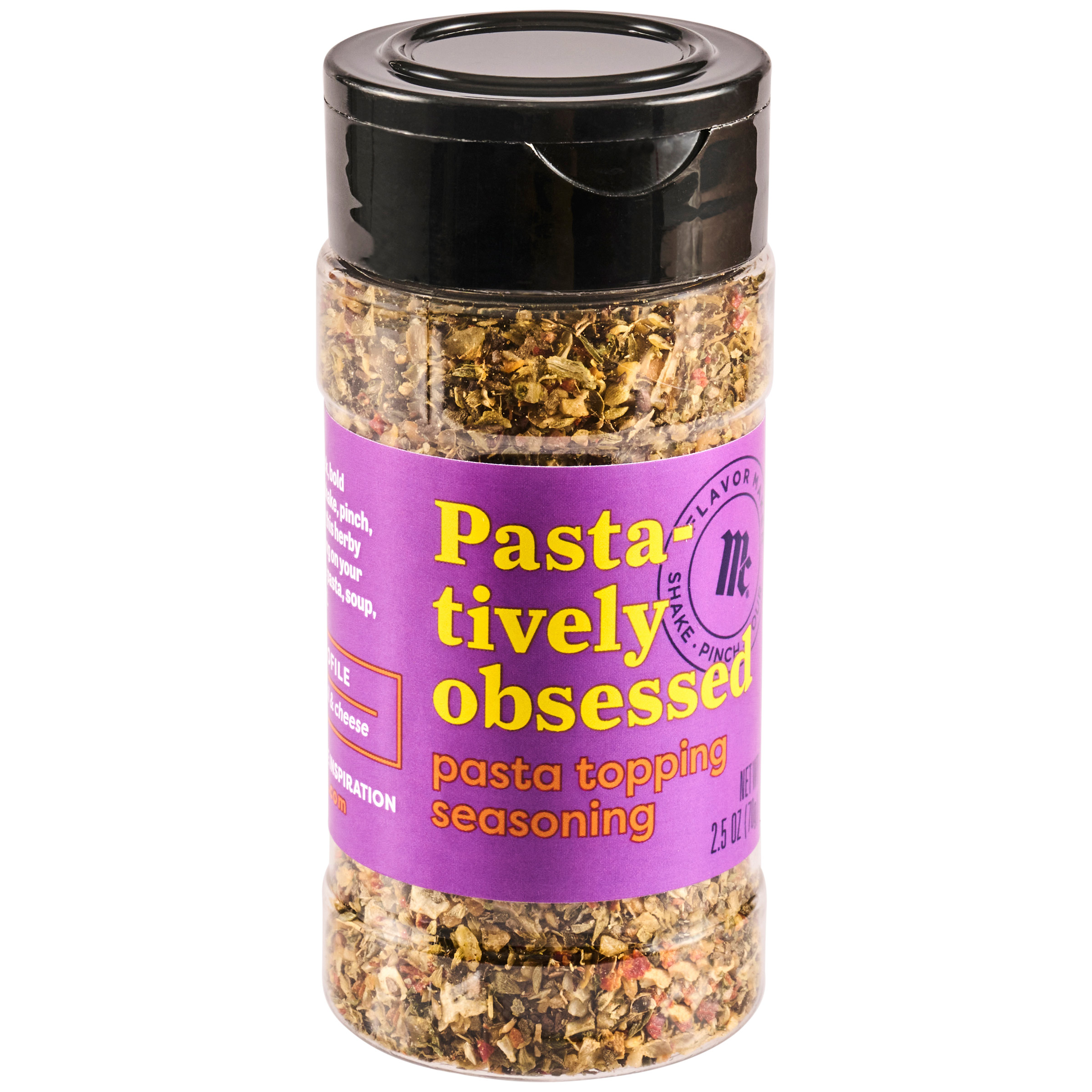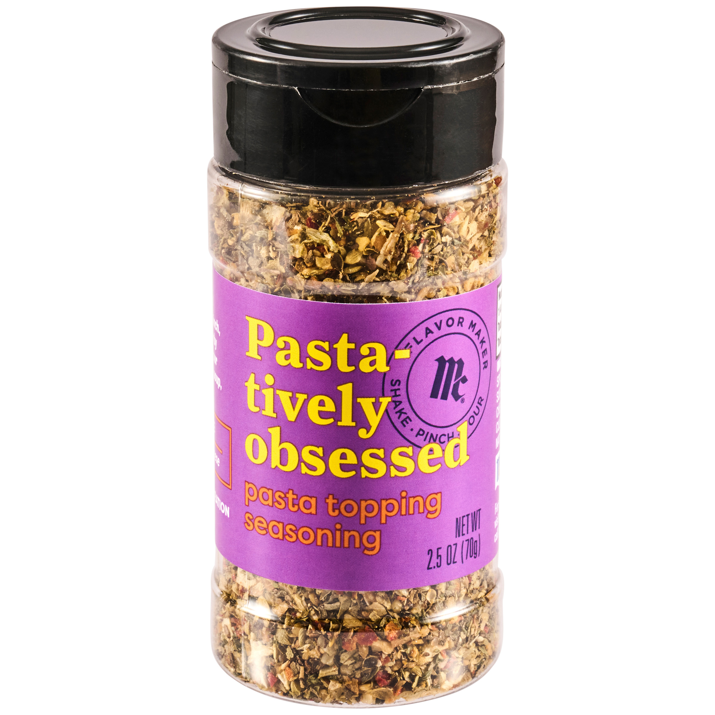 | Extra Long Description | Trust us when we say you'll be pasta-tively obsessed with McCormick® Flavor Maker Pasta Topping Seasoning. Made with garlic, basil, and cheese, it delivers a boost of herby, savory flavor to pasta, soup, and salad while cooking or tableside. Give pasta dishes – from spaghetti with marinara to Alfredo – a quick and easy flavor upgrade with Pasta Topping Seasoning. Simply flip the cap to pinch, pour, or shake, and enjoy. Prefer to flavor at the table? Pinch or shake over your meal for an extra pop of memorable flavor. With this all-in-one solution to inspired, everyday cooking, you'll be the best pasta maker around. |