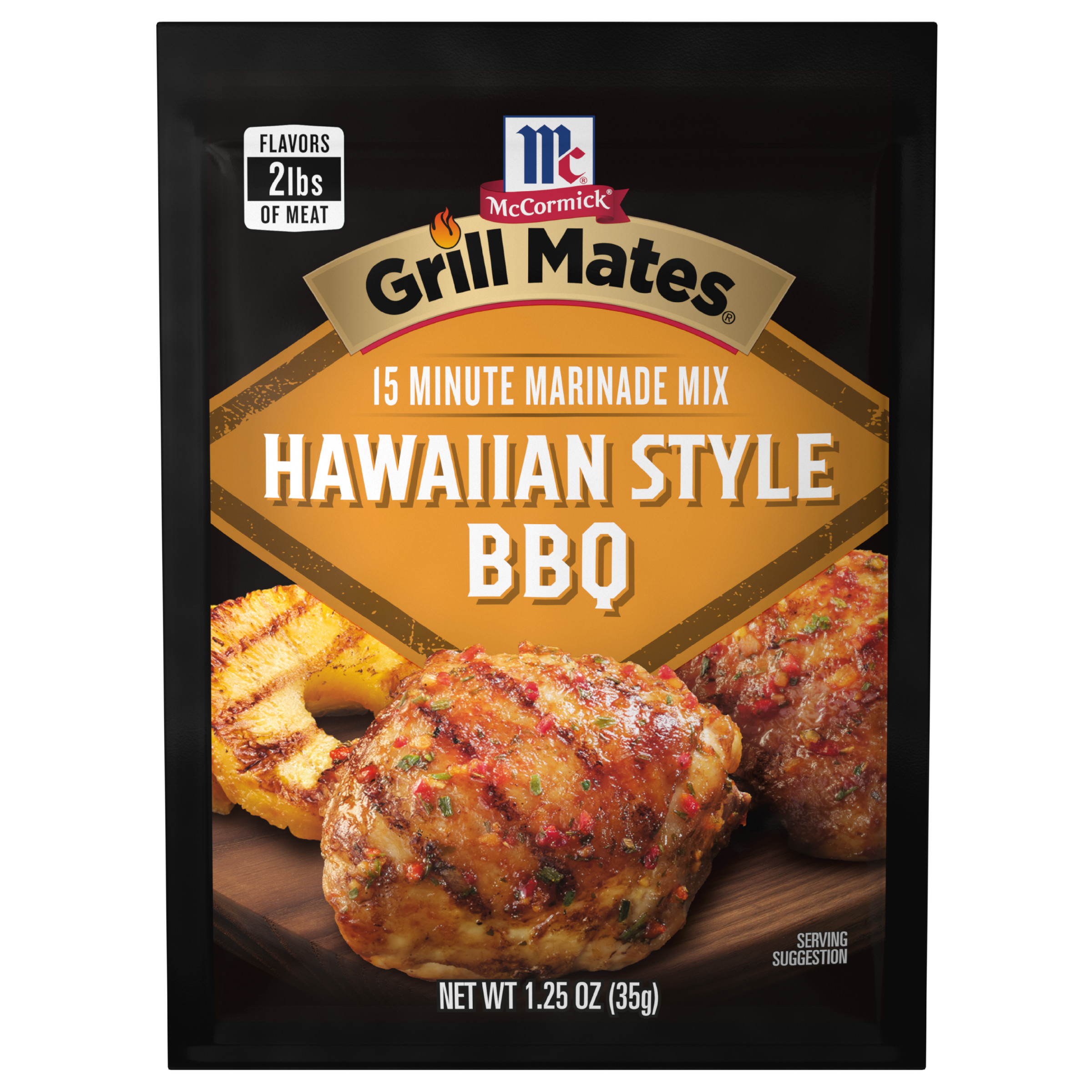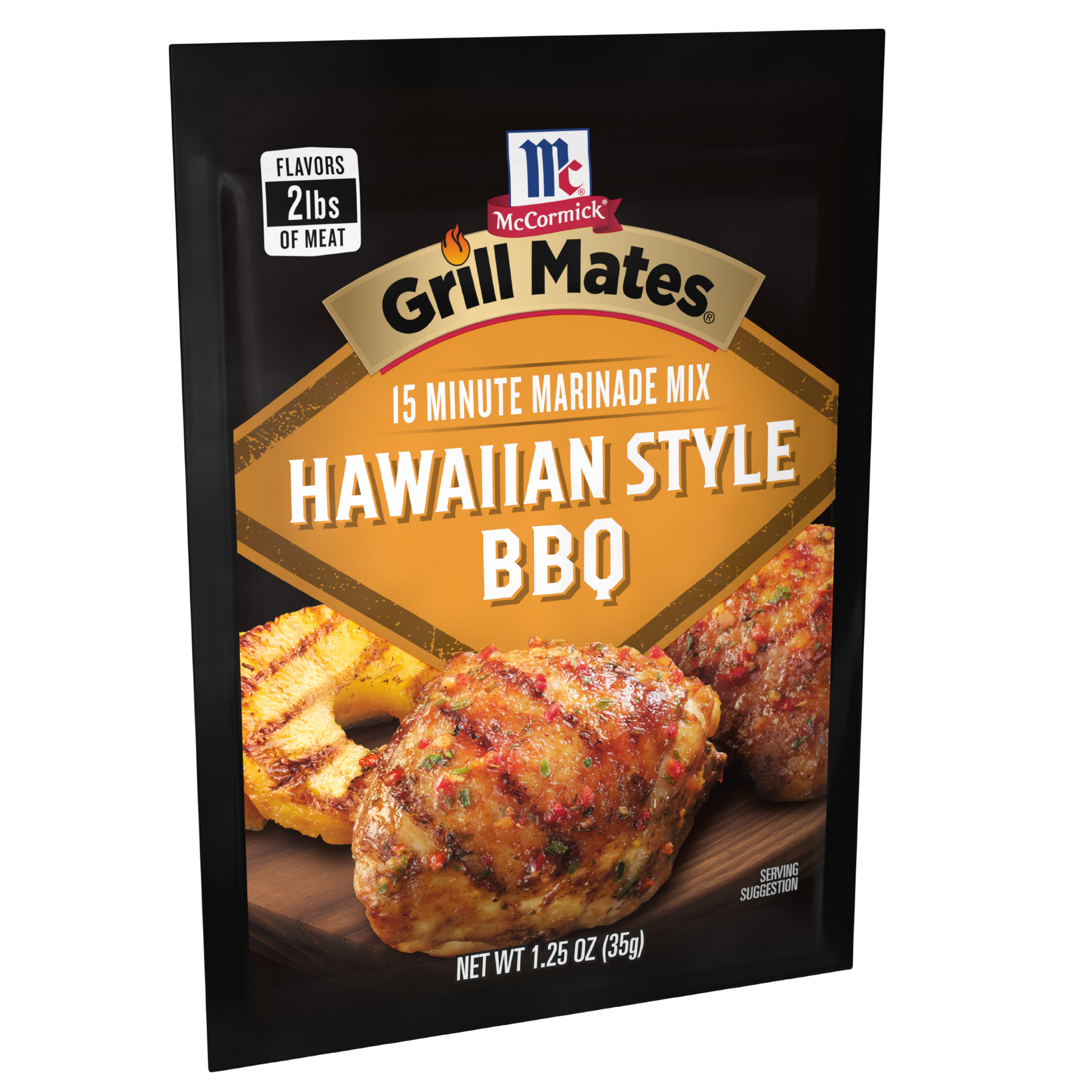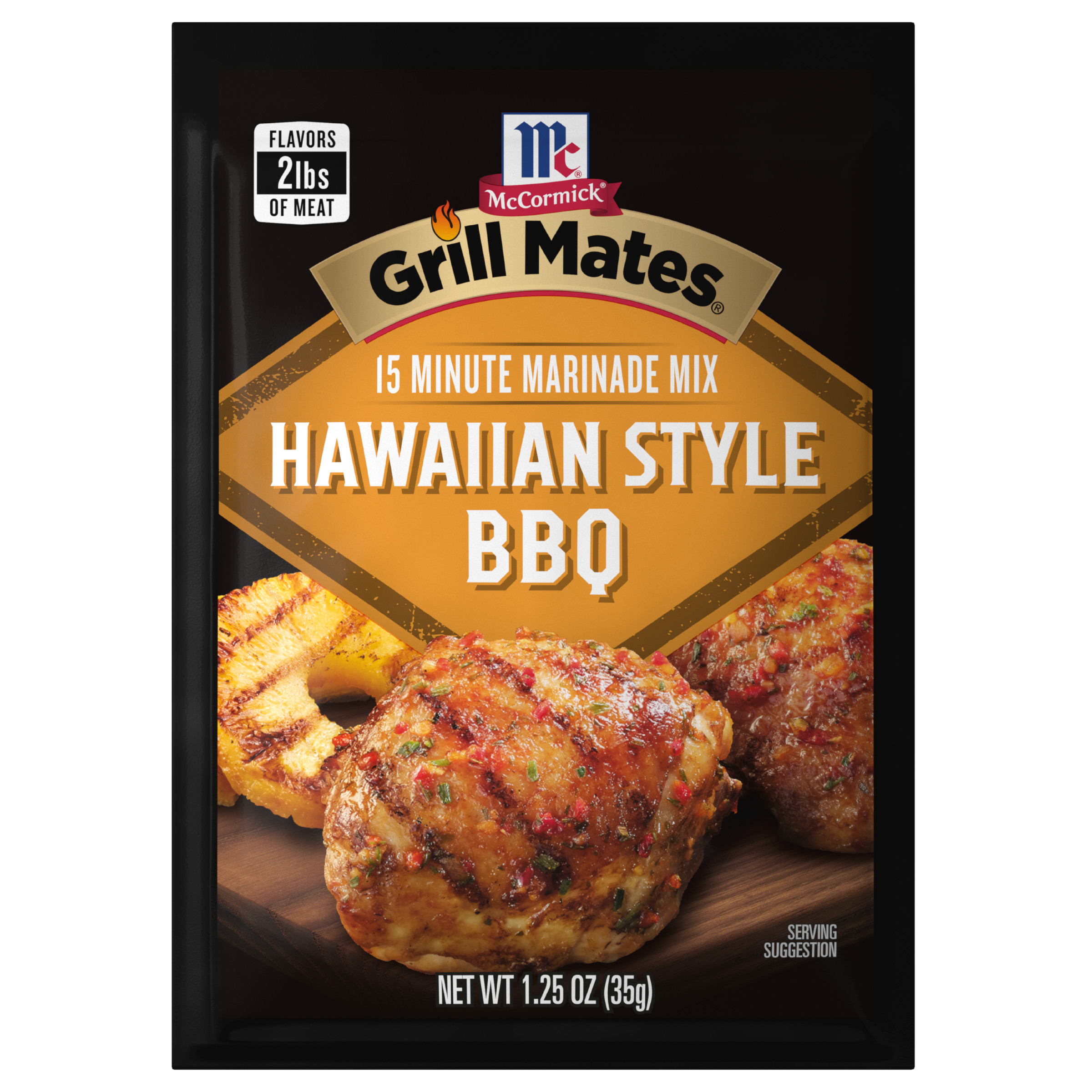 | Extra Long Description | McCormick Grill Mates Hawaiian Style BBQ 15 Minute Marinade Mix is a quick way to add lively, Hawaiian-inspired flavor to whatever you're grilling up. This brown sugar marinade is especially delicious on chicken, pork, and seafood.
