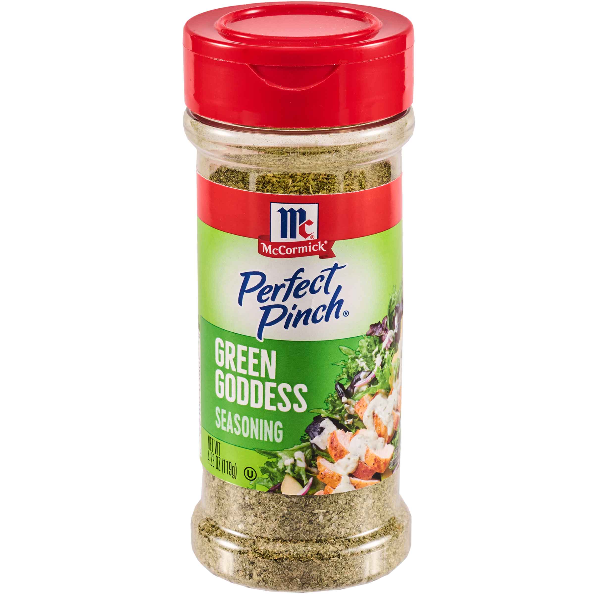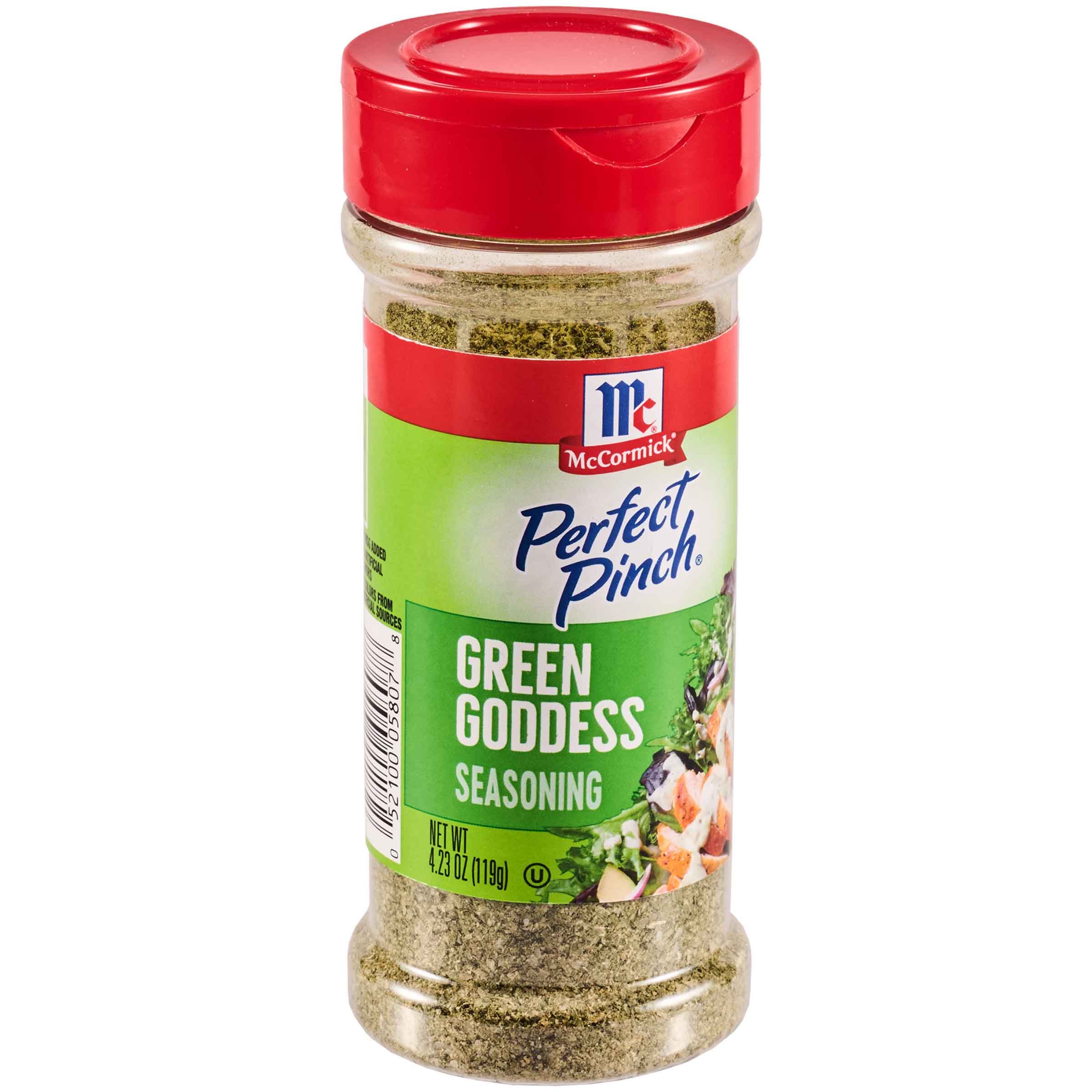 | Extra Long Description | Treat your meals to the tangy, herby flavor of McCormick® Perfect Pinch® Green Goddess Seasoning, based on the ever-popular green goddess dressing. A versatile ingredient, it's the perfect partner for chicken, veggies, dips, and preparing salad dressing at home. To make cool, creamy green goddess dressing, whisk seasoning with Greek yogurt that's been thinned with a bit of milk or water. (It's that easy!) Then serve deliciously herbaceous dressing over Greek salad, Caesar salad, slaws, pasta, or chicken, or serve as a dip with veggies. For fail-proof flavor, without the hassle, simply flip the cap and shake, sprinkle or pour. Crafted with ingredients including parsley, green onion, tarragon, and jalapeño pepper, Perfect Pinch Green Goddess Seasoning contains no colors from artificial sources and no MSG added. |
