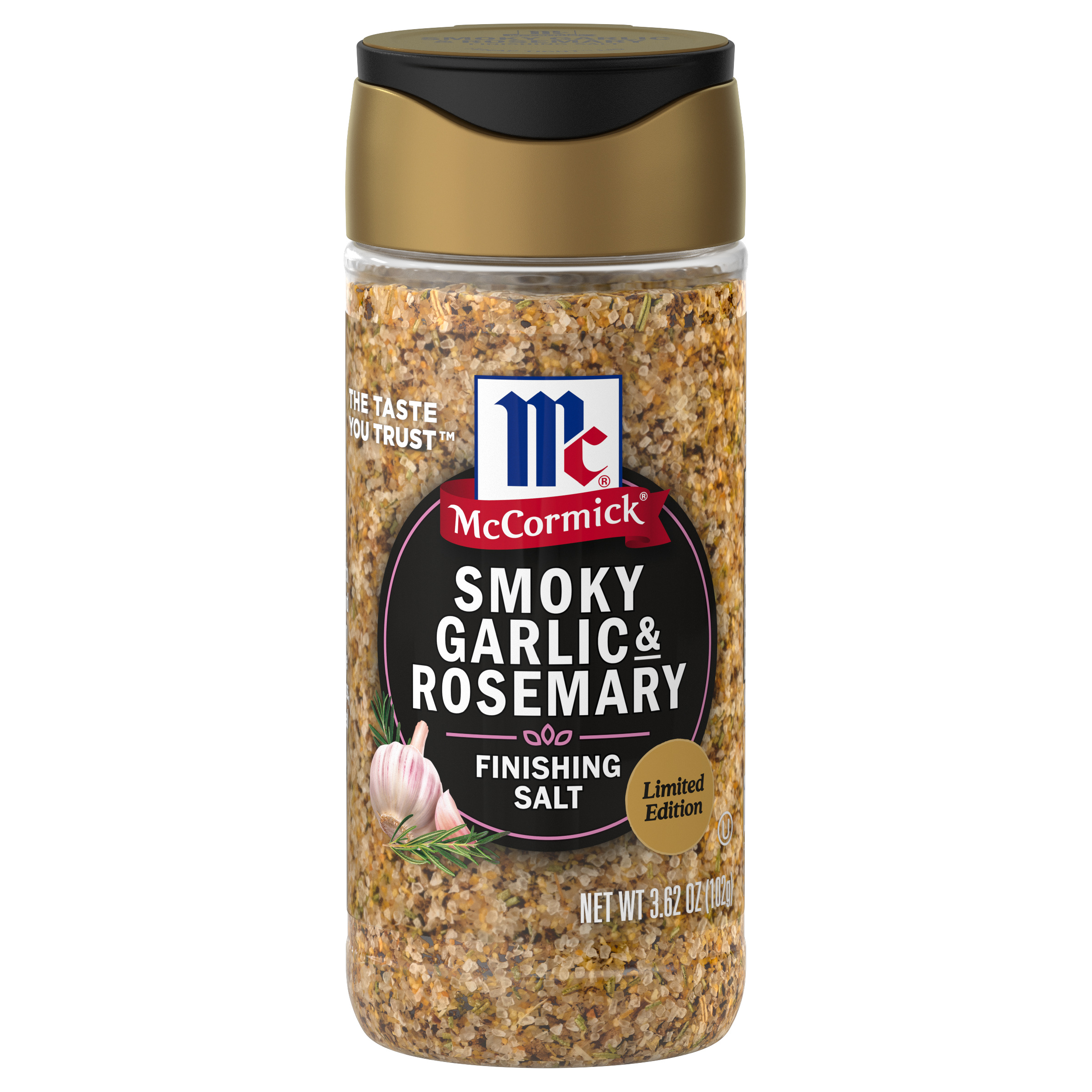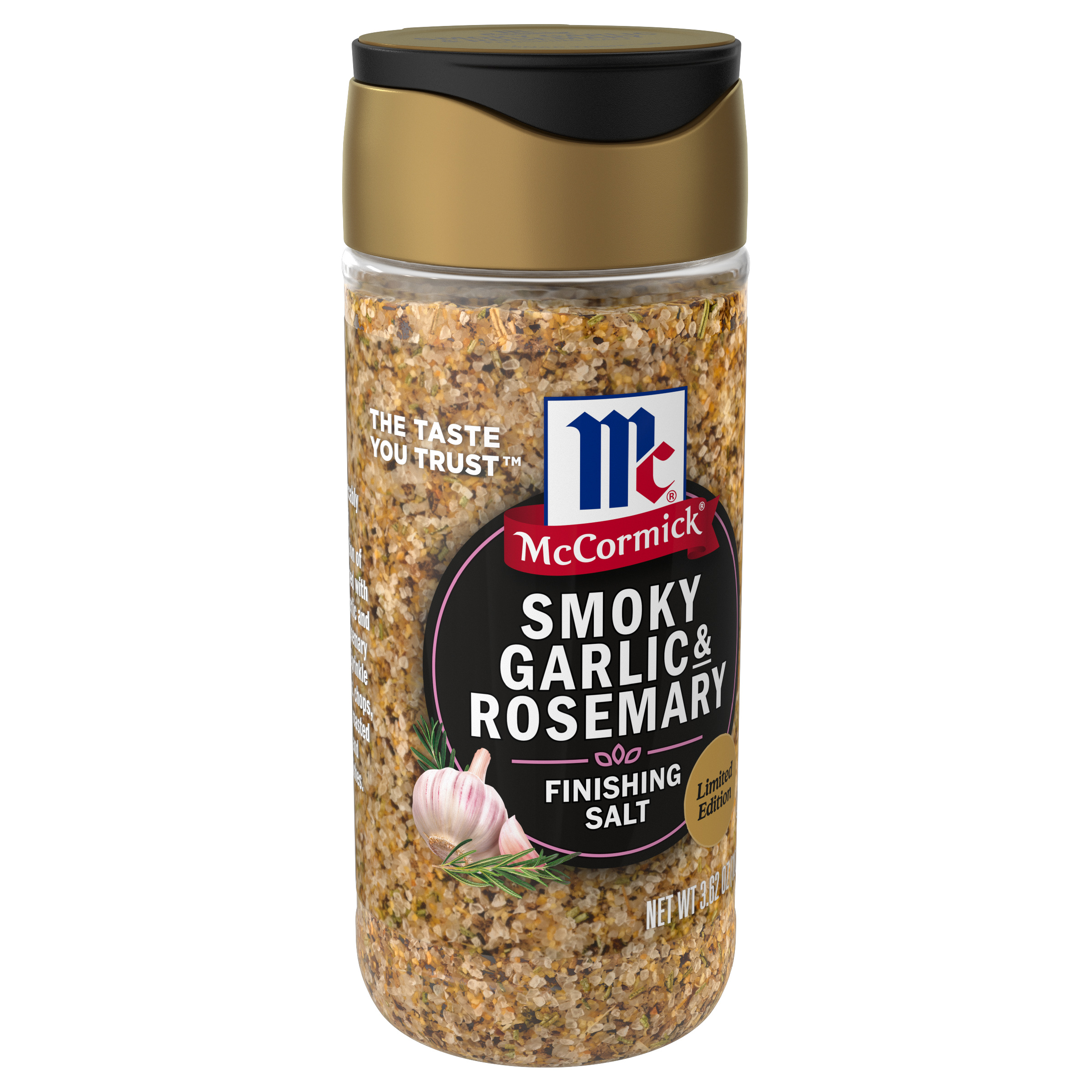 | Extra Long Description | McCormick® Smoky Garlic & Herb Finishing Salt, Limited Edition, is a an impeccably balanced combination of salt infused with savory garlic and herbal rosemary flavors. Cook, sprinkle, and garnish with this extra-special salt to bring memorable flavor to your favorite foods and recipes. Available for a limited time. This unique coarse salt can be sprinkled over steak, chops, or chicken before grilling to infuse with bold flavor and a coarse texture. It's also a perfect partner for roasted vegetables, potato dishes, and even pizza, imparting smoky, herby flavor wherever you choose to enjoy it. Now in a SnapTight™ bottle to keep flavor and aroma sealed in — finishing salt makes recipes delicious with every snap of the cap. Each bottle delivers long lasting fresh flavor, with and easy-to-find best by date. For more inspiration on how to use our limited time seasonal flavors, visit mccormick.com/seasonalflavors. |
