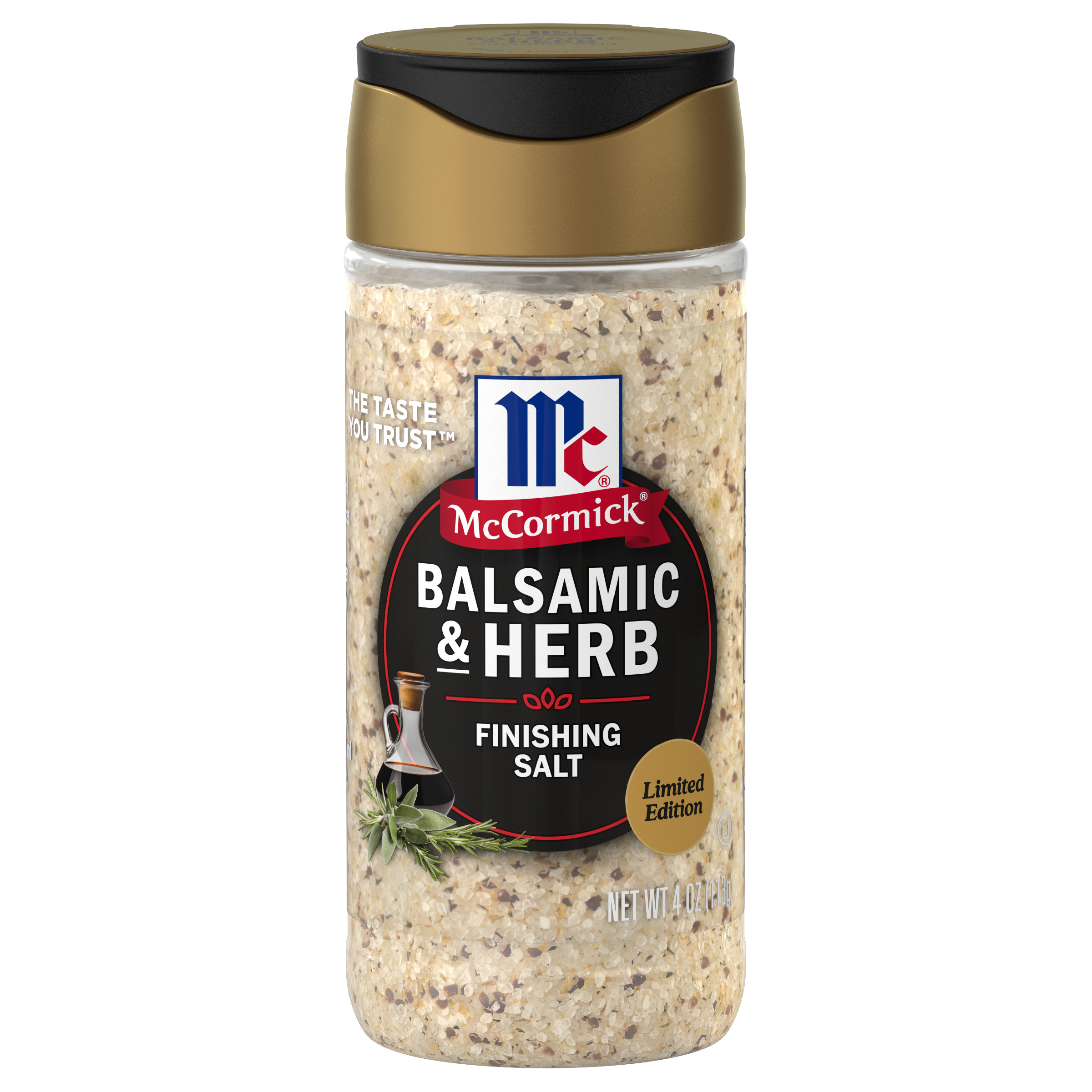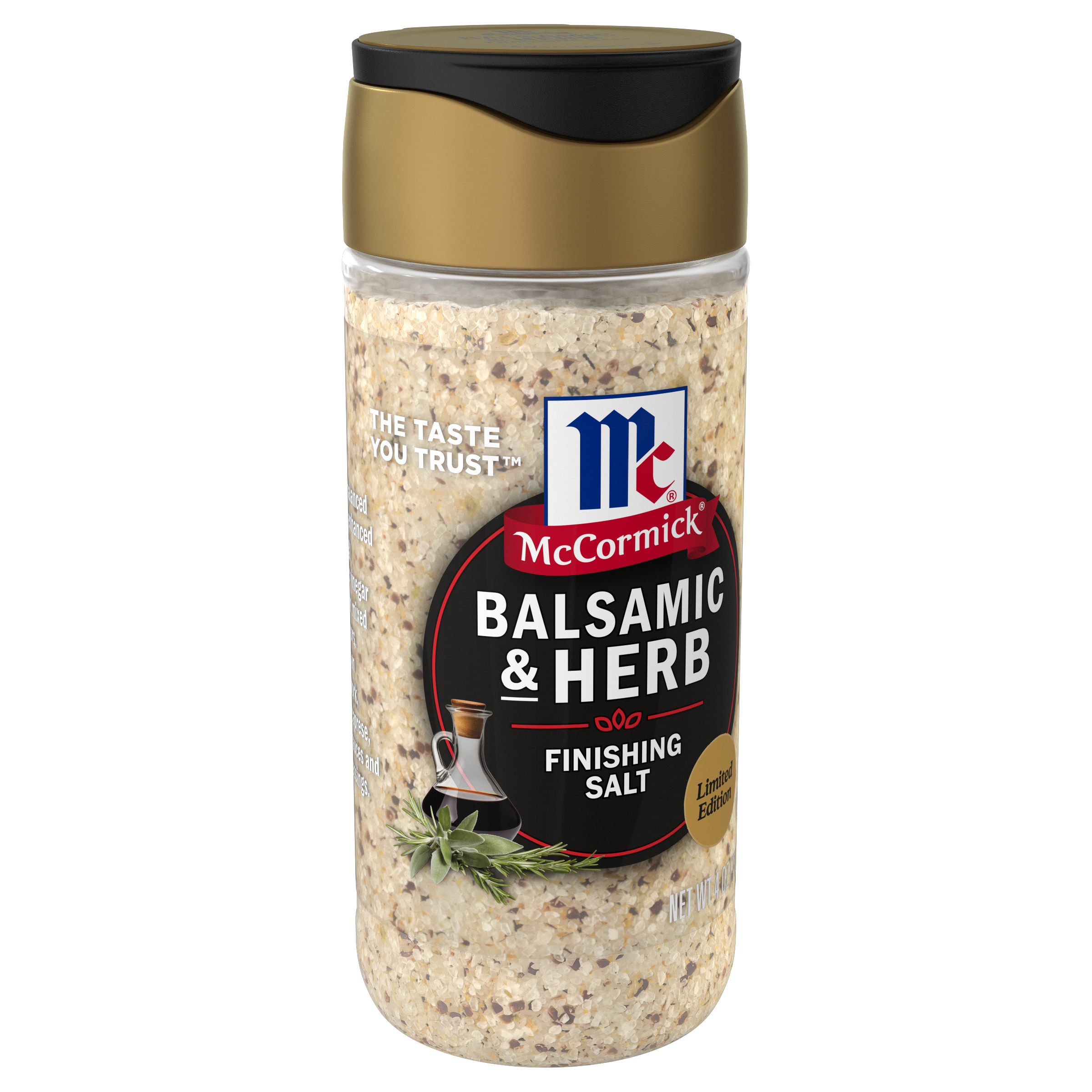 | Extra Long Description | McCormick® Balsamic & Herb Finishing Salt, Limited Edition, is a combination of salt and zingy balsamic vinegar notes mixed with herbs like oregano, thyme, and basil. Cook, sprinkle, and garnish with this extra-special salt to bring savory flavor to your favorite foods and recipes. Available for a limited time. This unique coarse salt can be sprinkled over steak, pork, and poultry before grilling to infuse with memorable flavor and a coarse texture. It's also a perfect partner for roasted vegetables, caprese salads, sauces, dressings, and more. Now in a SnapTight™ bottle to keep flavor and aroma sealed in — finishing salt makes recipes delicious with every snap of the cap. Each bottle delivers long lasting fresh flavor, with and easy-to-find best by date. For more inspiration on how to use our limited time seasonal flavors, visit mccormick.com/seasonalflavors. |