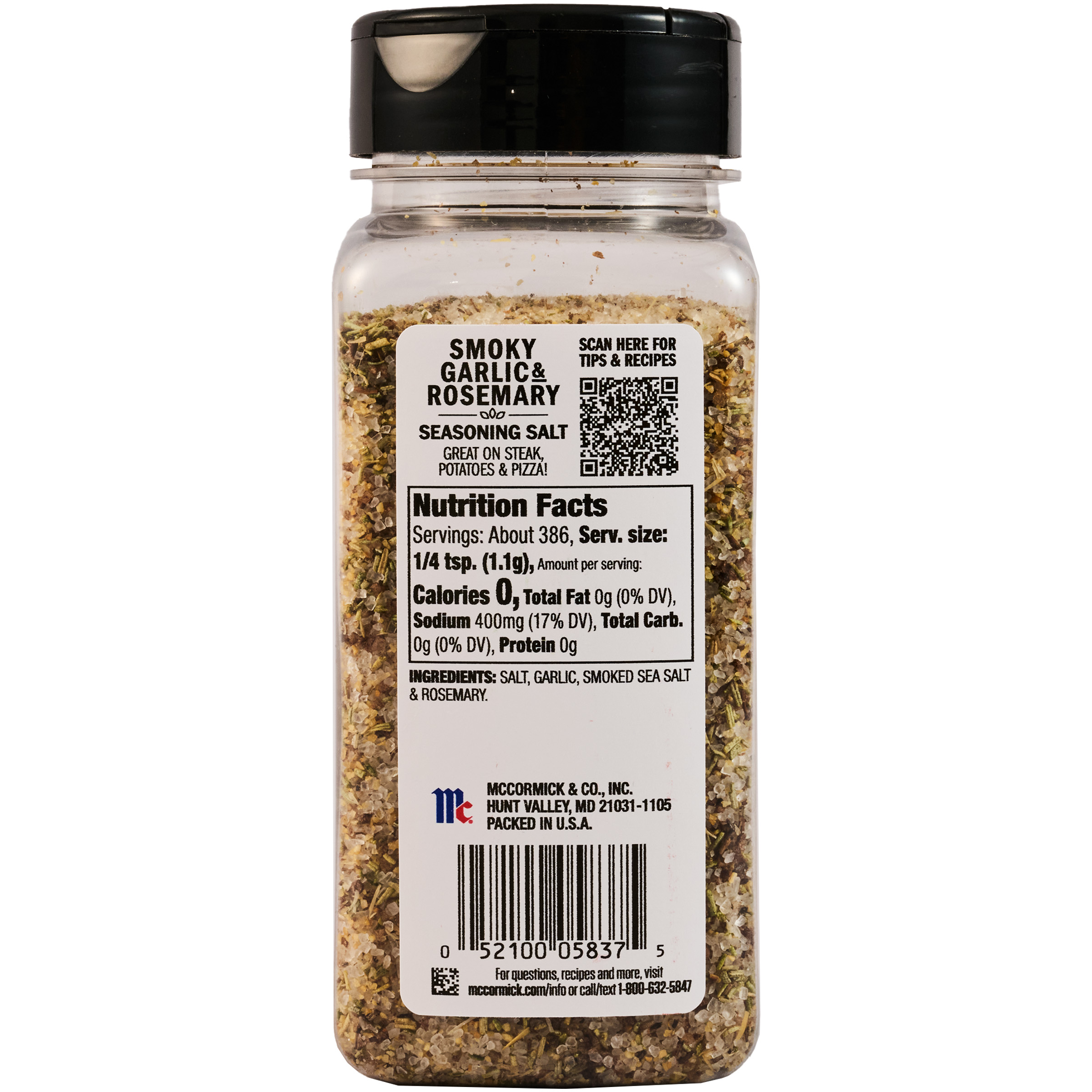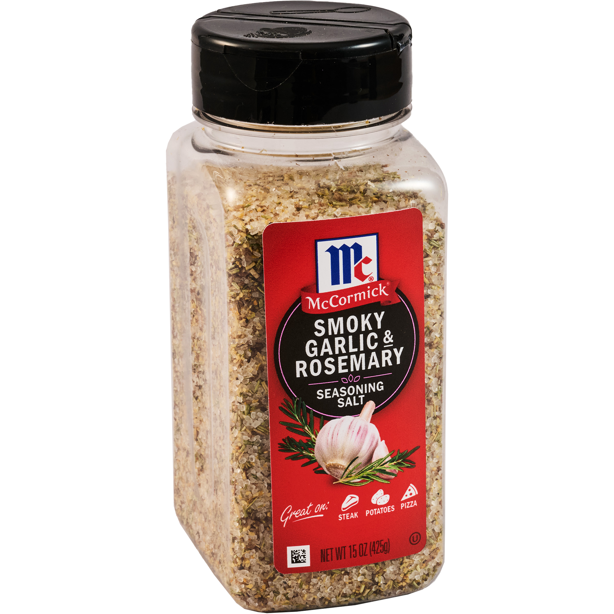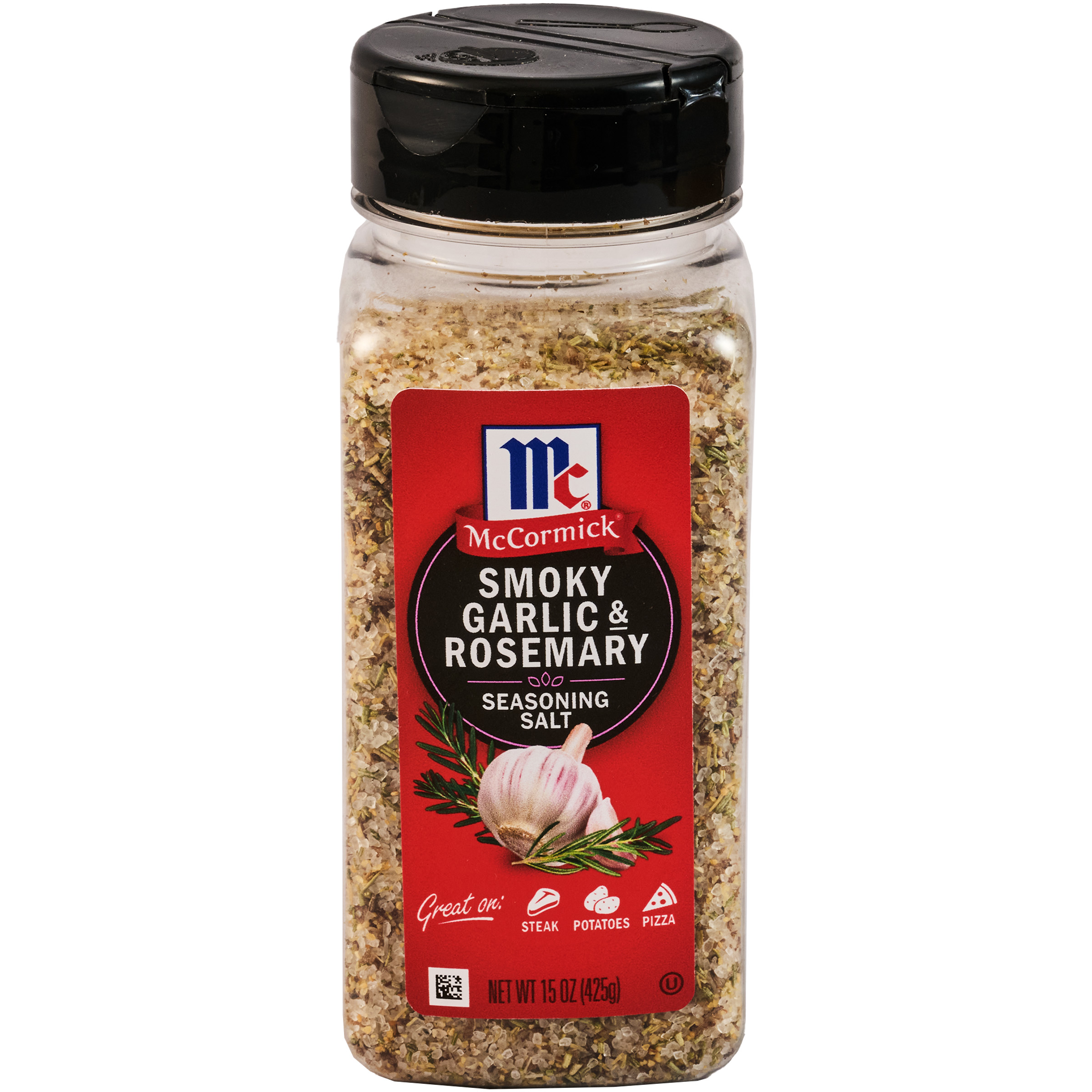 | Extra Long Description | Looking for an easy, delicious way to upgrade everyday meals? McCormick® Smoky Garlic & Rosemary Seasoning Salt is the answer. This robust mix includes garlic, smoked sea salt, and rosemary for the perfect pop of savory flavor. From steak and potatoes, to pizza, grilled chicken, and veggies, there's no wrong way to enjoy this convenient seasoning salt. Mix into olive oil and serve with crusty bread for an elevated dipping oil or enjoy as a garnish for spaghetti topped with pasta sauce and a side of Italian bread. For fool-proof flavor sprinkle this seasoning salt all over … everything! Our convenient 15 oz bottle size is great for families who love having delicious flavor always on hand. |