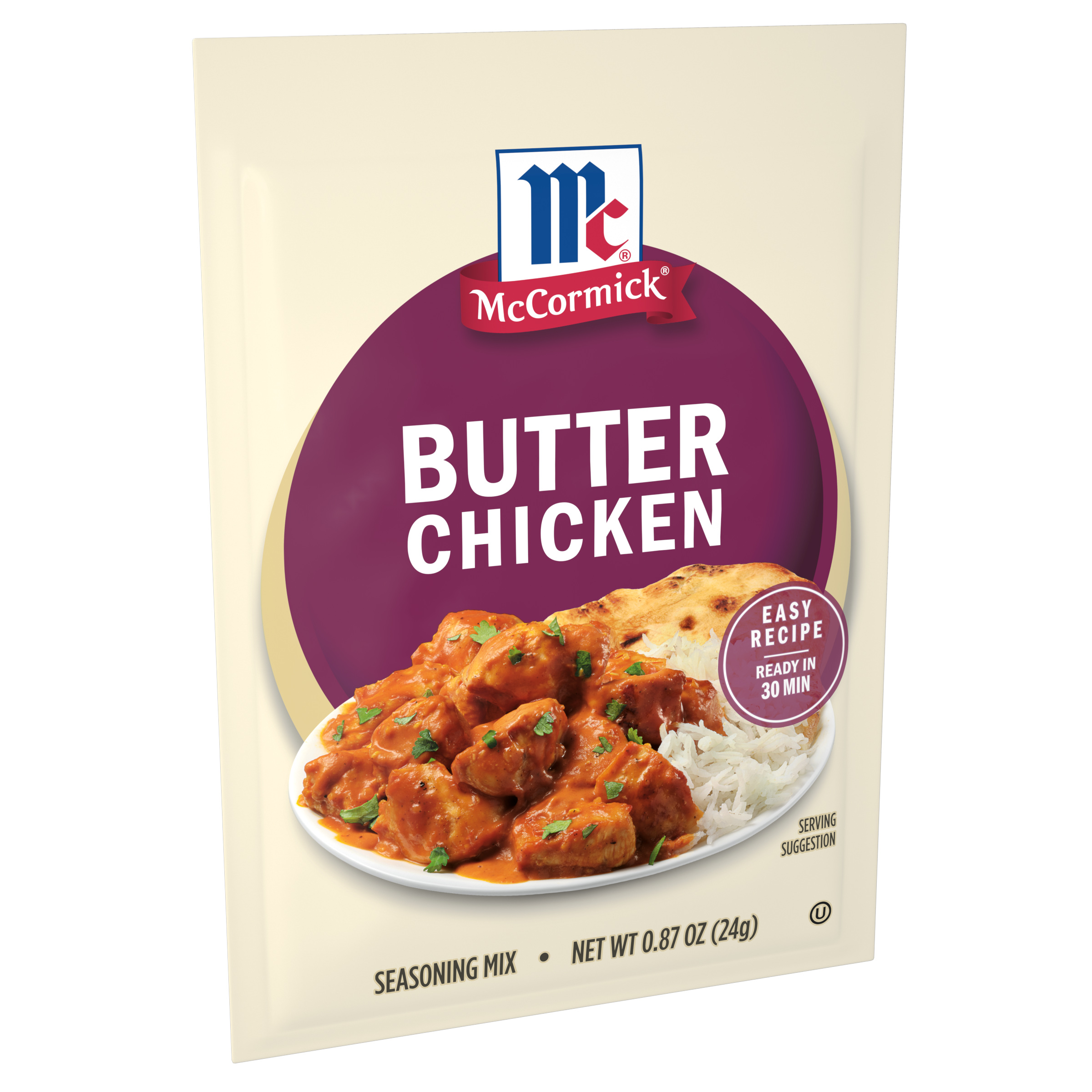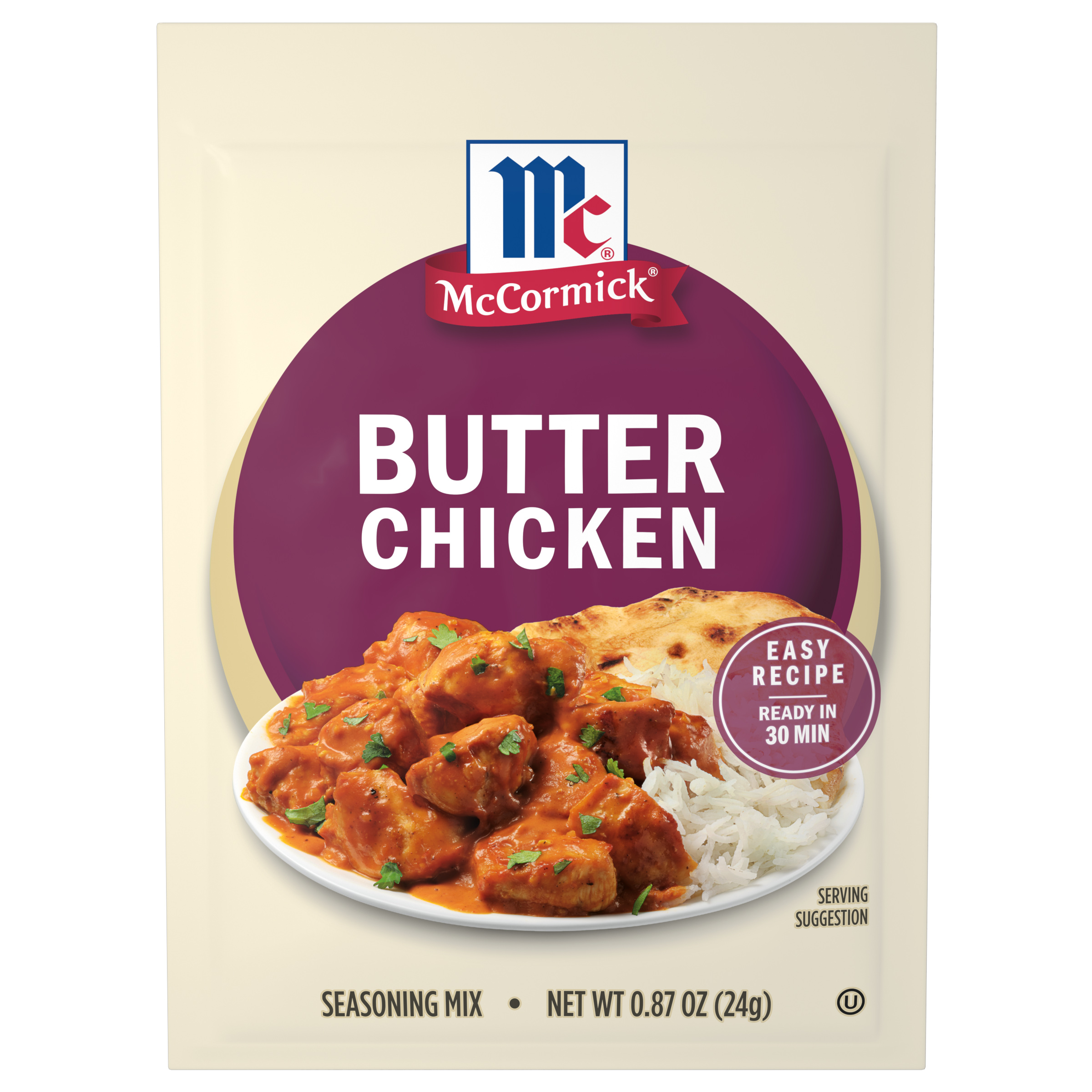 | Extra Long Description | Hungry for the aromatic flavors of Butter Chicken from your local Indian restaurant? Prepare it at home … with McCormick Butter Chicken Seasoning Mix you can have this creamy, mildly spicy chicken dish on the table in 30 minutes! Made with coriander seed, cumin, turmeric, and cardamom, this seasoning mix contains a blend of fragrant spices or "masala” that makes it nearly failproof for you to recreate this dish in the comfort of your kitchen. To prepare our easy recipe, sauté chicken breast cubes, add butter, seasoning mix, and tomato sauce, and simmer. Sir in heavy cream or half-and-half and cook until sauce is nicely thickened. Serve over cooked basmati rice and you will have a restaurant-worthy meal without having to order takeout. McCormick brings a wide variety of flavor and cuisine you crave to your table with our delicious and convenient seasoning mixes. From comfort food favorites like meatloaf and chili to globally inspired dishes like Filipino Style Adobo Chicken or Beef & Broccoli, we've got flavor covered. |
