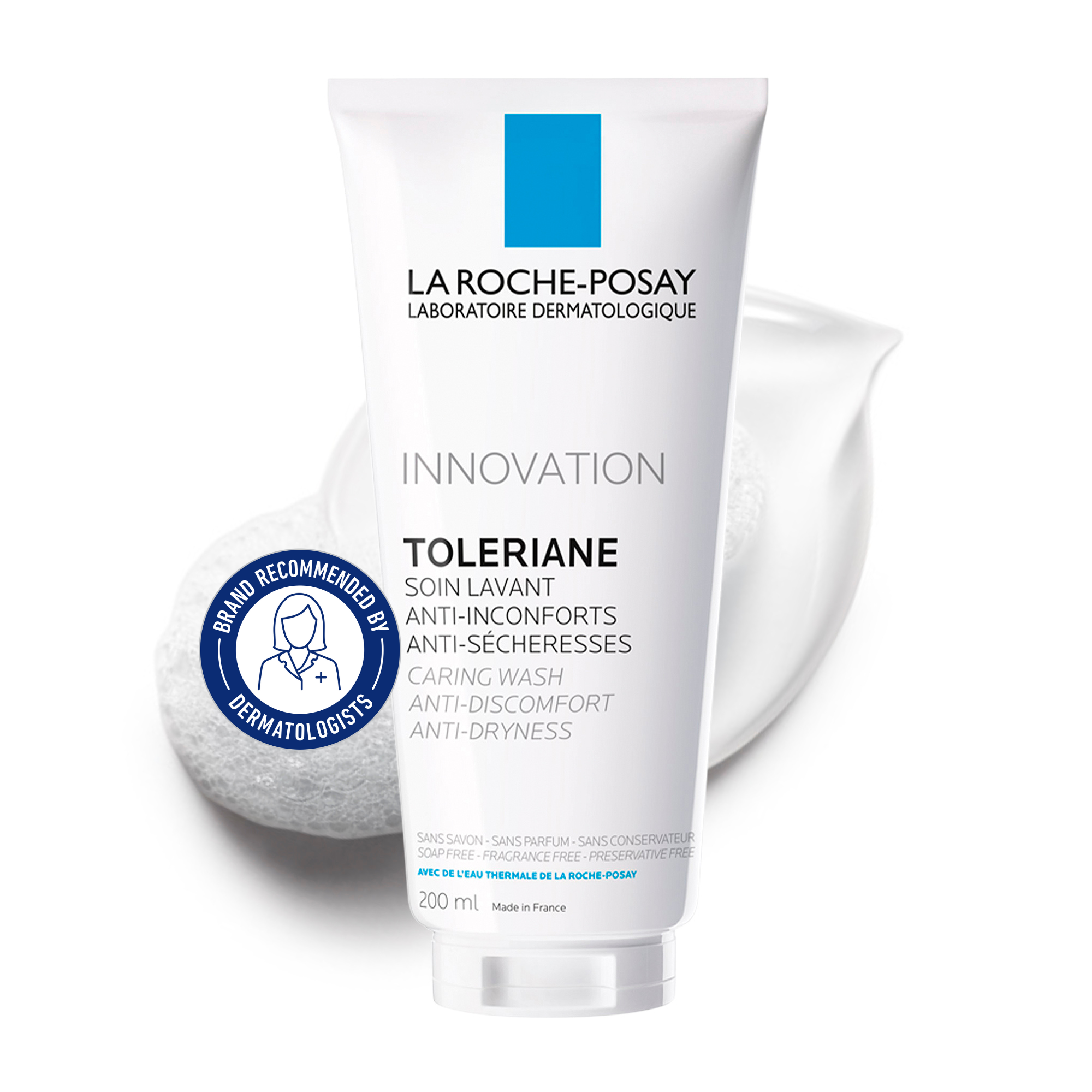 Walmart product name La Roche-Posay Toleriane Hydrating Cleanser, Gentle Face Wash with Ceramides for Dry Skin, 400mL Walmart Product Description Short Gently wash away daily impurities and makeup with this hydrating cream cleanser formulated for normal to dry sensitive skin. Infused with essential Ceramides, Niacinamide, and Prebiotic Thermal Water, it helps the skin retain vital moisture while supporting its natural protective barrier. This soap-free, non-lathering face wash soothes dryness and discomfort, leaving your complexion feeling soft and nourished. Dermatologist-tested to ensure optimal safety and tolerance for delicate skin. walmart_consumer_benefit - Hydrating cream cleanser: Gently lifts away face and eye makeup, dirt, and impurities without over-drying the skin