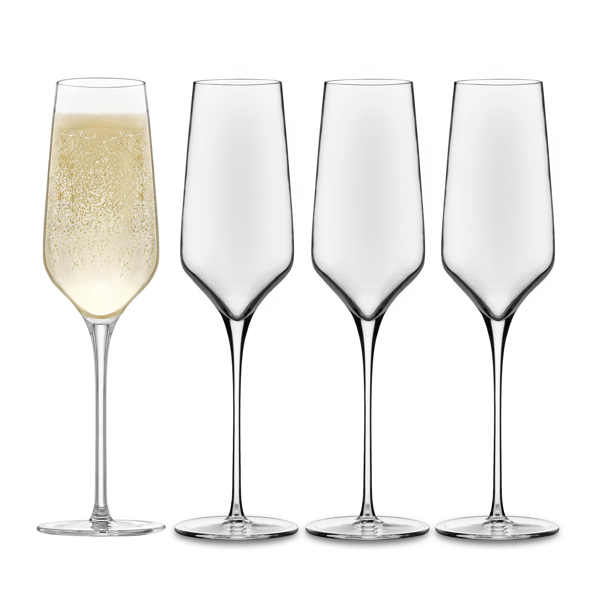 Crafted with state-of-the-art Libbey ClearFire glass composition, these champagne wine glasses feature thinner walls that offer a balance of superior clarity and strength and a laser-cut rim for an even, beadless, chip-resistant edge. The glass's steadfast, stable foot keeps it poised confidently on your tabletop. The pulled stem creates solid and seamless transition to the slender, angular champagne bowl.