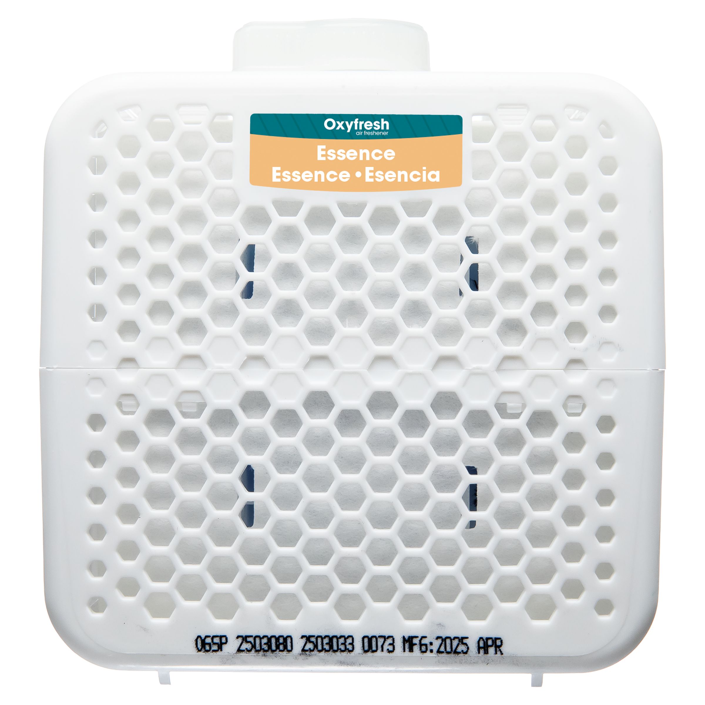 Brand Fresh Products Product Name Oxyfresh Product Category Active Air Fresheners Product Description Oxyfresh Refill in Essence Fragrance Essence SKU# OX-F-000I006M-19 Case UPC 00760034000109 H.S. Tariff Code 3307.90.0000 Country of Origin U.A.E. Feature 1 Refills can be set to last 30, 60, or 90 days Feature 2 Made for use in the Oxyfresh dispenser system Feature 3 The innovative refills deliver frangrance continuously and consistently Feature 4 Refills are cost-effective, containing 6.5x more fragrance oil than metered aerosol Feature 5 The 100% pure fragrance oils do not contain any added solvents or alcohols making it eco-friendly Feature 6 Free of CFCs, VOCs, and propellants, the fragrance release is completely silent Feature 7 Covers up to 6,000 square feet. Feature 8 A designer fruity, floral fragrance embellished with hints of Musk creates the perfect balance of familiarity and intrigue. Summary Oxyfresh refills release 100% fragrance oil consistently for 30, 60, or 90 days. They are compatible with the Oxyfresh dispenser and are free of CFCs, VOCs, and propellants. Description Oxyfresh refills are eco-friendly consisting of 100% fragrance oil which means there are no harmful CFCs, VOCs, or propellants. They release a constant and consistent amount of fragrance for 30, 60, or 90 days. The duration is set by the user for a custom experience. Fragrance is released with the power of oxygen for a clean and simple air freshening system. Each refill covers approximately 6,000 square feet and are made specifically for use in the Oxyfresh dispensers. Feature Bullets - Freshens for 30, 60, or 90 days
