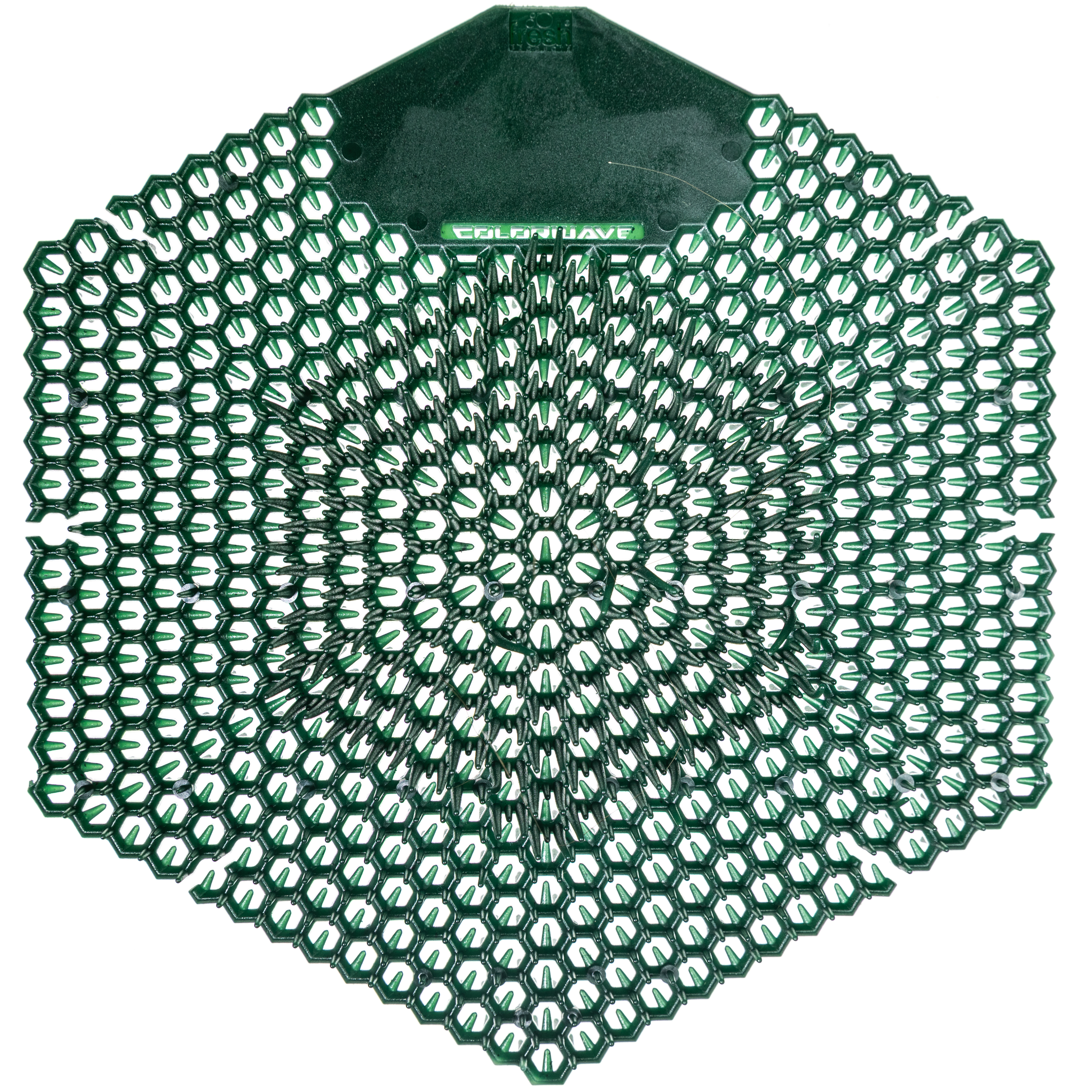Brand Fresh Products Product Name Colorwave Urinal Screen Product Category Urinal & Bowl Care Product Description Colorwave changes color and virtually eliminates urine splash in Herbal Mint Fragrance Herbal Mint SKU# CWS-F-010I060M-05 Case UPC 00760034000673 Inner UPC 00760034000680 H.S. Tariff Code 3307.49.0000 Country of Origin U.S.A. Feature 1 This unique color-changing screen changes color (from dark to light) when urine hits it, encouraging better aim. Feature 2 Cleaner Restrooms: Patented long protrusions break up the urine stream eliminating splashback, so clothes, floors, and walls stay cleaner. Feature 3 More effective than competitors while using less plastic for improved sustainability. Feature 4 The patented formula has 2-3x more fragrance than other similarly sized screens. Feature 5 Protrusions on the back side also reduce splash, so it works on either side. Feature 6 Contains beneficial bacteria that consume odors and keep drains clean, clear, and smelling fresh. Feature 7 Made in the U.S.A. Summary The Colorwave urinal screen changes color when urine hits it and reduces splash by 99%, keeping restrooms cleaner. Each screen contains more fragrance than competitors for 30 days of freshness. Description The Colorwave urinal screen changes color from dark to light when urine hits it, encouraging better aim and resulting in less mess. The innovative design reduces splash by 99%, keeping restrooms cleaner and freshens for 30 days. Colorwave offers improved sustainability by using less plastic and creating improved performance. Feature Bullets - Color Changing Technology