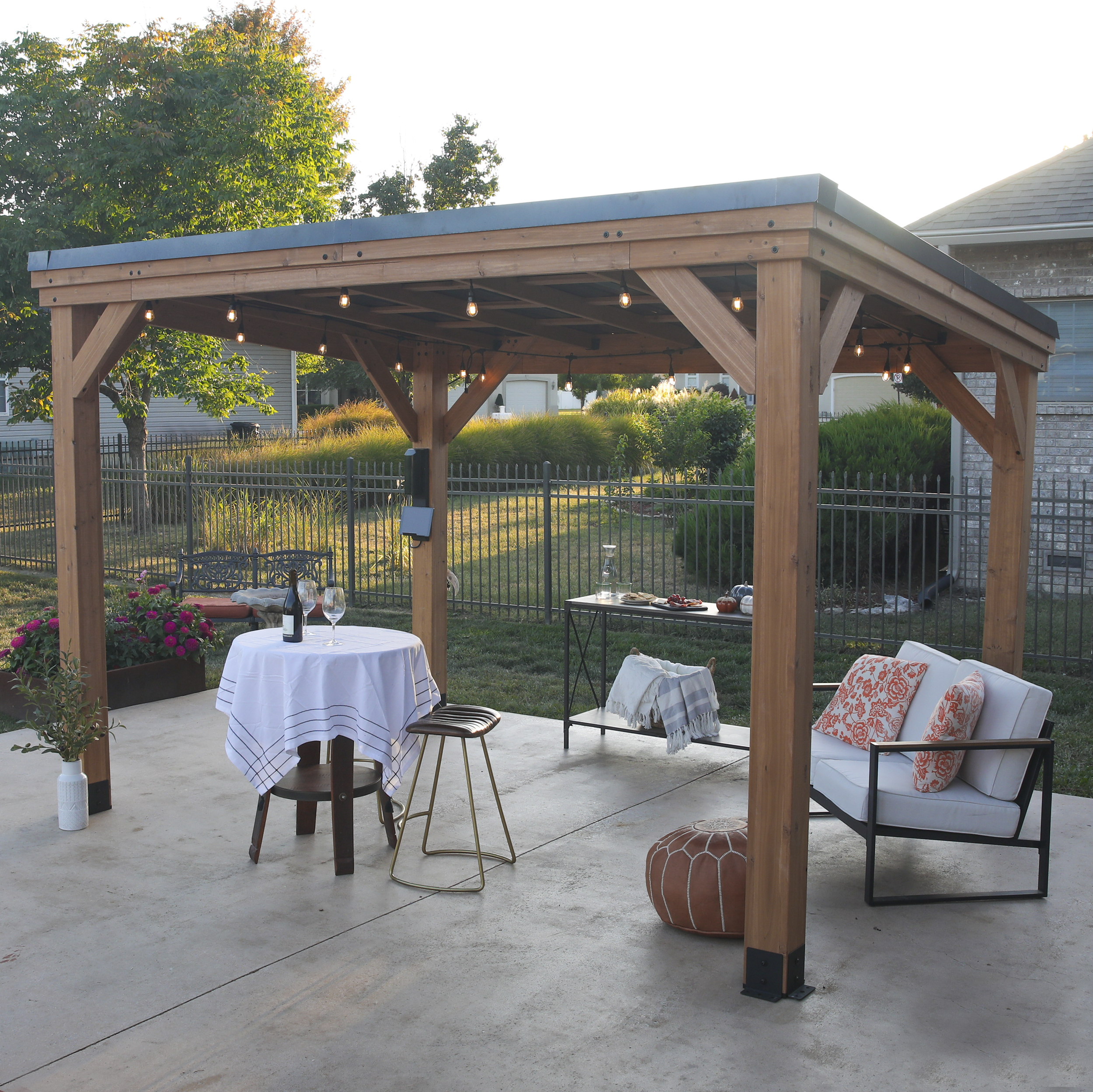 | Amazon Long Tail Name | Backyard Discovery Arcadia 12' x 9.5' Cedar Wood Outdoor Gazebo Pavilion with Hardtop Galvanized Steel Slope Roof, Snow Support, Wind Resistance, PowerPort, Shade for Garden, Patio, Deck, Entertaining |