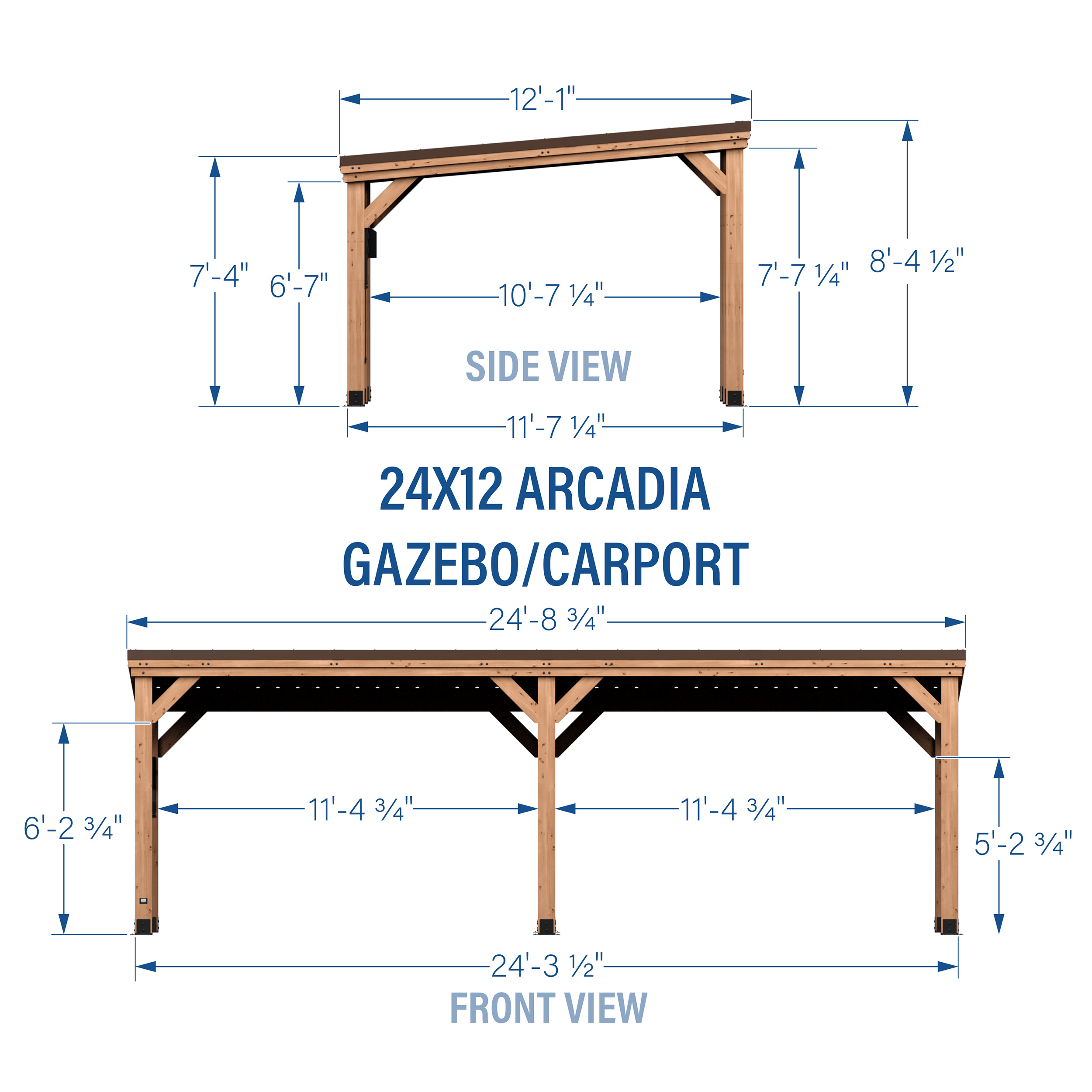 | Amazon Long Tail Name | Backyard Discovery Arcadia 24' x 12' Cedar Wood Outdoor Gazebo Pavilion with Hardtop Galvanized Steel Slope Roof, Snow Support, Wind Resistance, PowerPort, Shade for Garden, Patio, Deck, Entertaining |