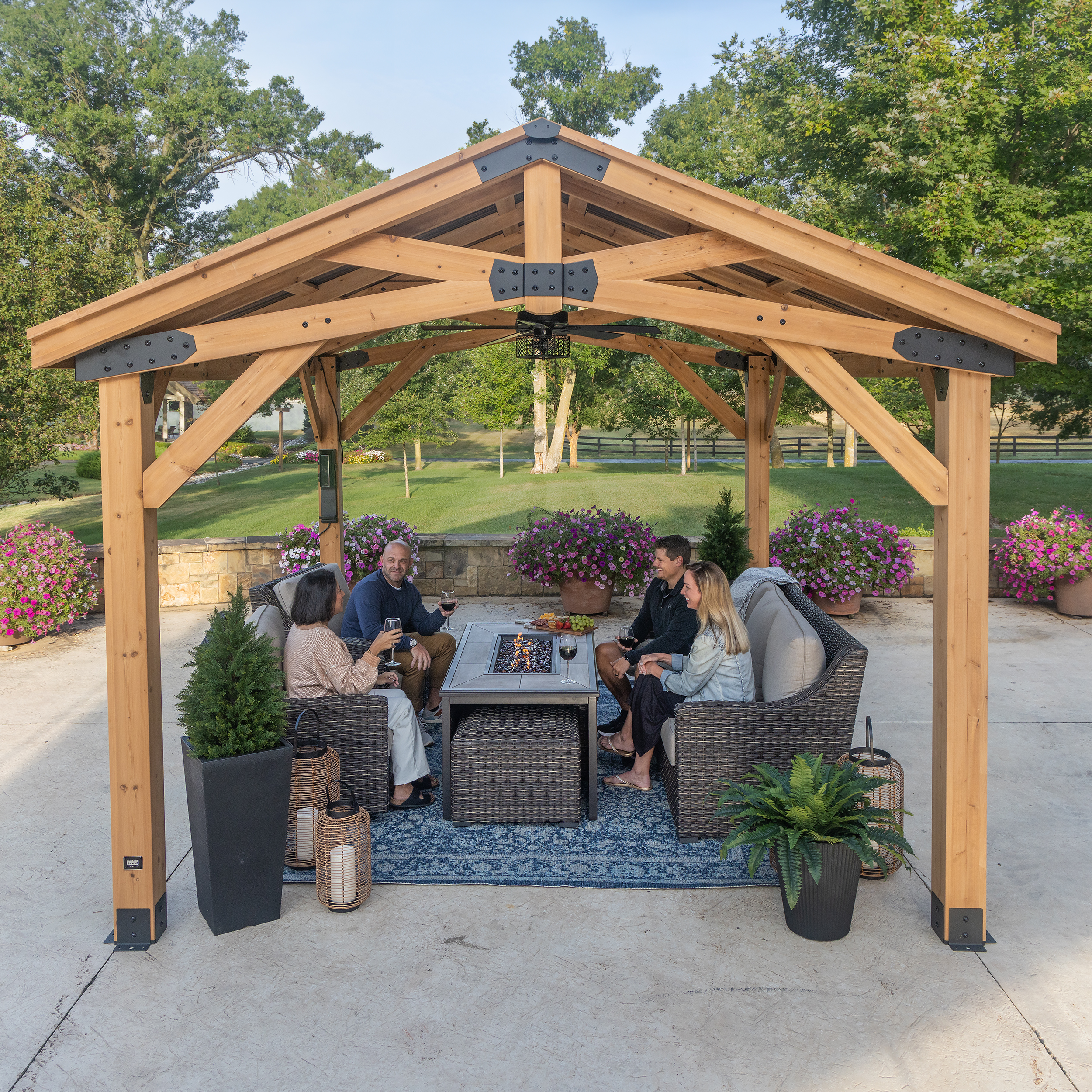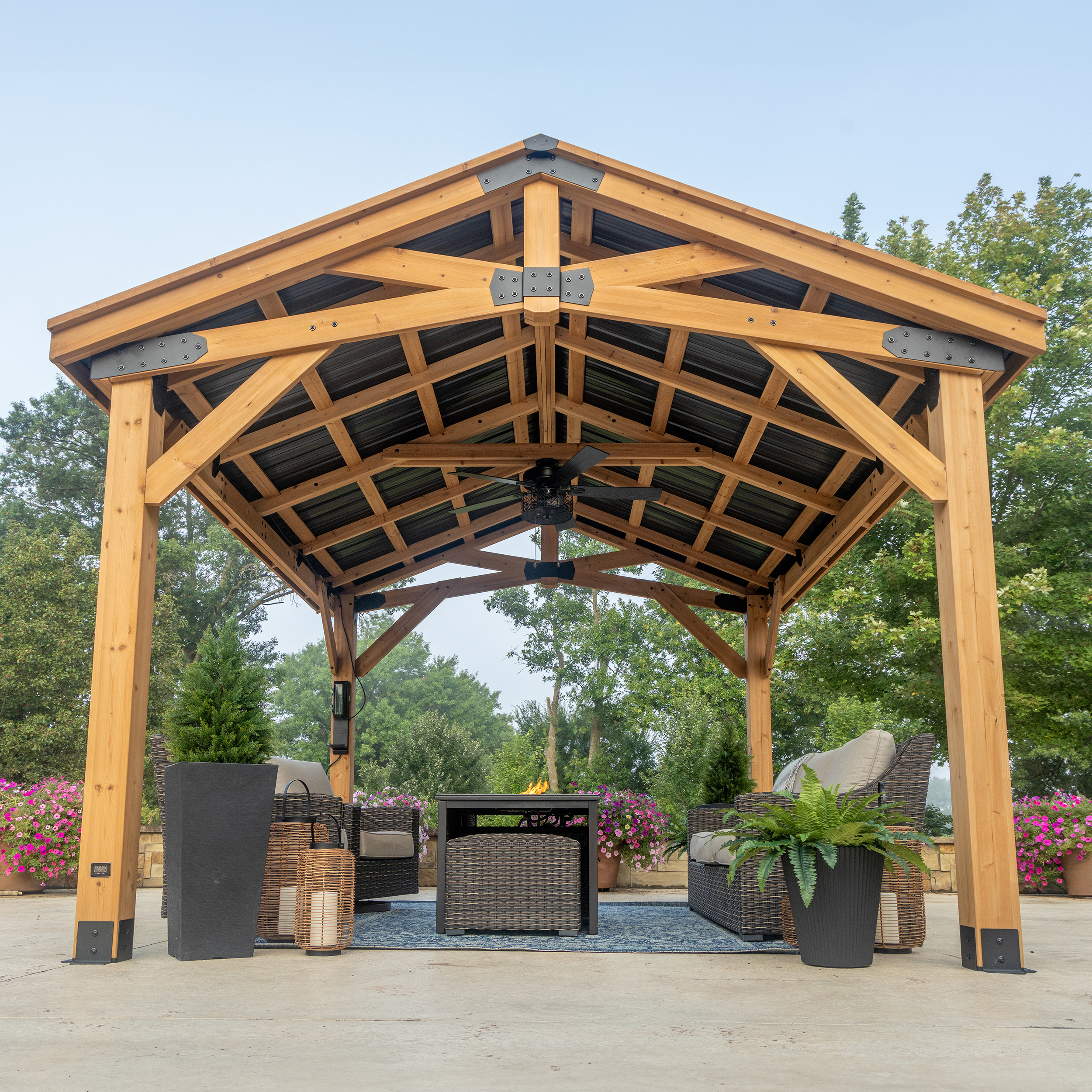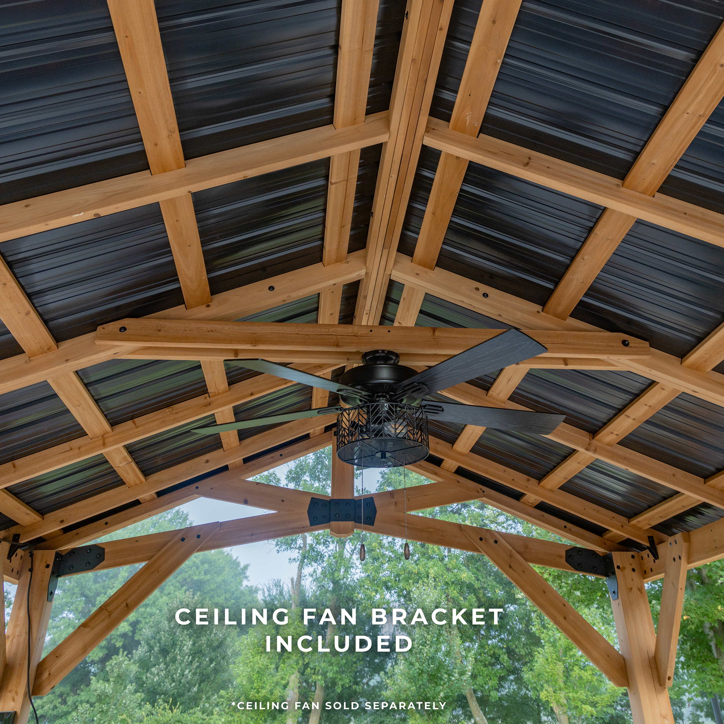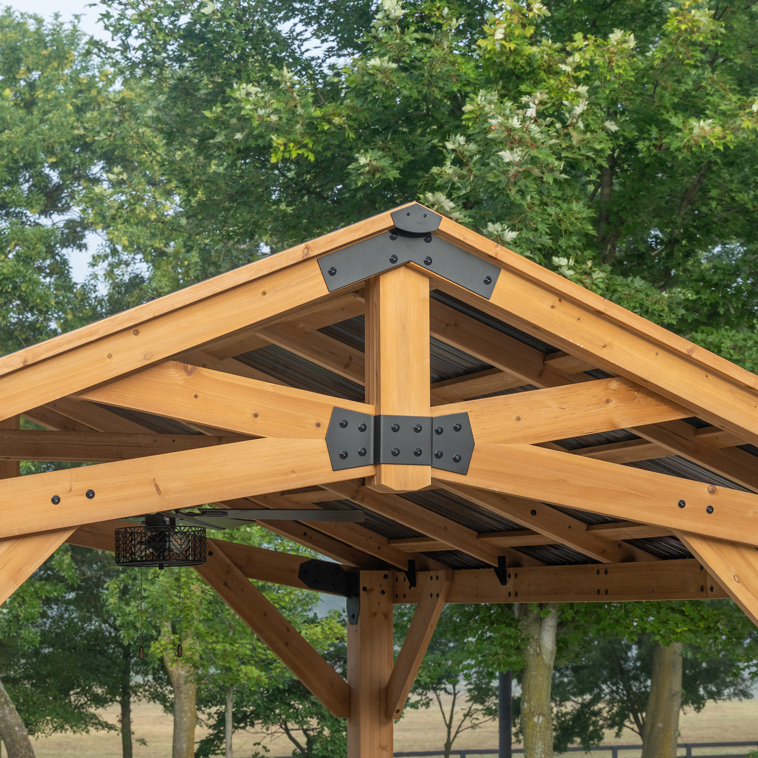 | Amazon Long Description | The Backyard Discovery Norwood Gazebo combines beautiful style with modern comfort. Expertly crafted from high-quality 100% cedar, this wooden gazebo delivers elegant style and natural durability. The Norwood stands as a Pro-Tect™ tested and proven structure, engineered to withstand up to 9,000 pounds of roof weight and wind speeds up to 100 mph* providing resilience through every season. Its strong, 29-gauge galvanized steel roof offers superior protection against corrosion and dents for lasting durability. Adorned with black steel accents, the gazebo's peak roof design adds a sophisticated look while providing plenty of shade and protection from inclement weather. The versatile design offers the ideal setting for elevating your outdoor living. From relaxing with a cup of coffee to entertaining guests, this backyard gazebo adapts to any occasion. Our exclusive PowerPort™ brings convenience and lets you add a custom touch. It features three electrical outlets and three USB ports to easily connect lighting, play your favorite music, or charge devices. This patio gazebo kit is ready to assemble with pre-cut, pre-drilled, and pre-stained components, while the interactive BILT® app provides step-by-step guidance. Experience outdoor living at its finest with the Norwood Gazebo—where comfort meets timeless style in your own backyard sanctuary. |