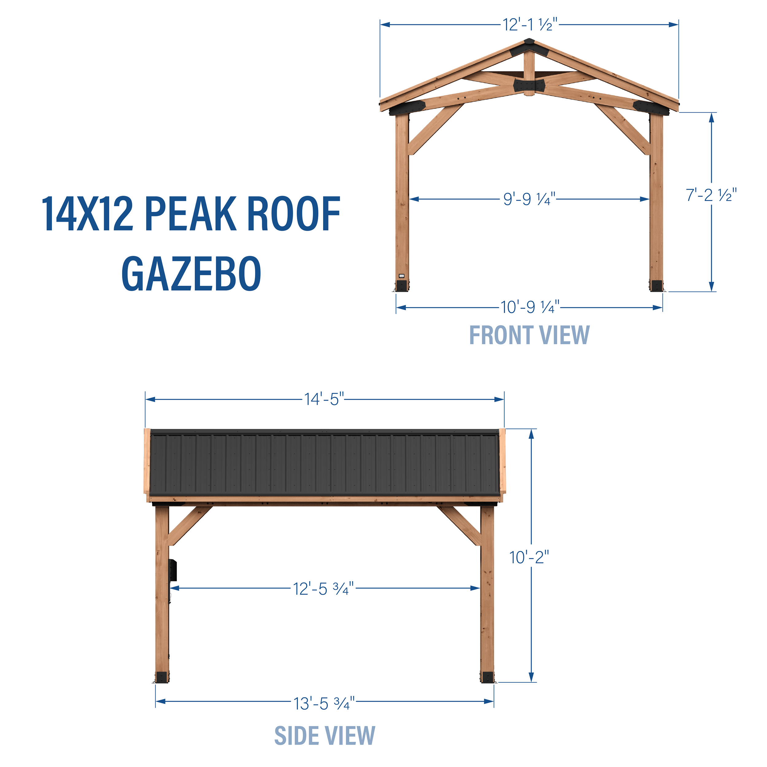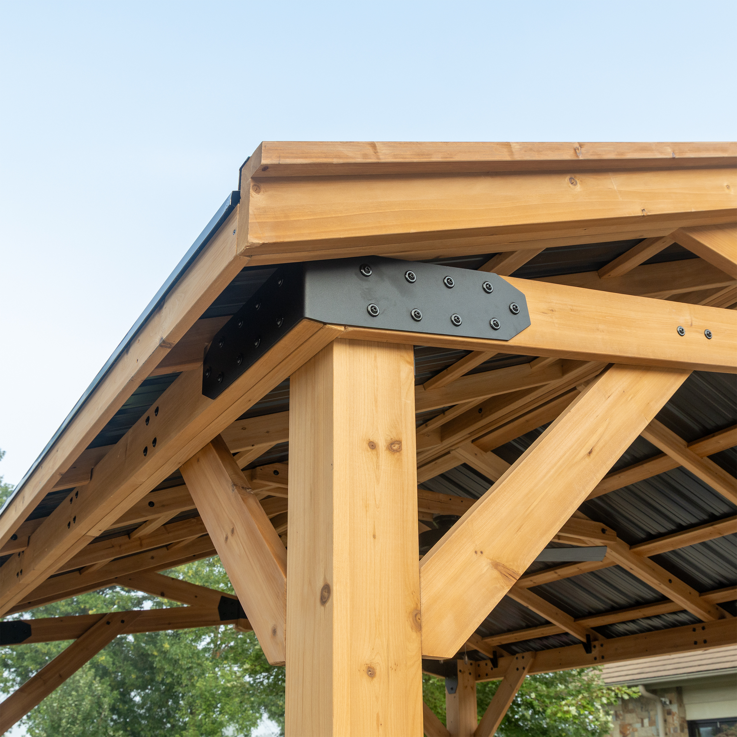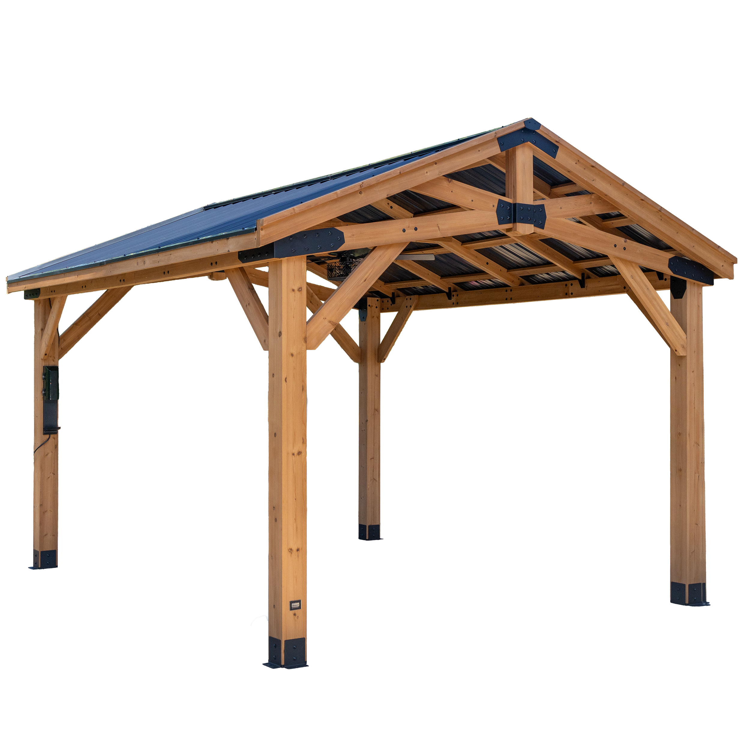 | Amazon Long Tail Name | Backyard Discovery Norwood 14' x 12' Cedar Wood Outdoor Gazebo Pavilion with Hardtop Galvanized Steel Peak Roof, Snow Support, Wind Resistance, PowerPort, Shade for Garden, Patio, Deck, Entertaining |