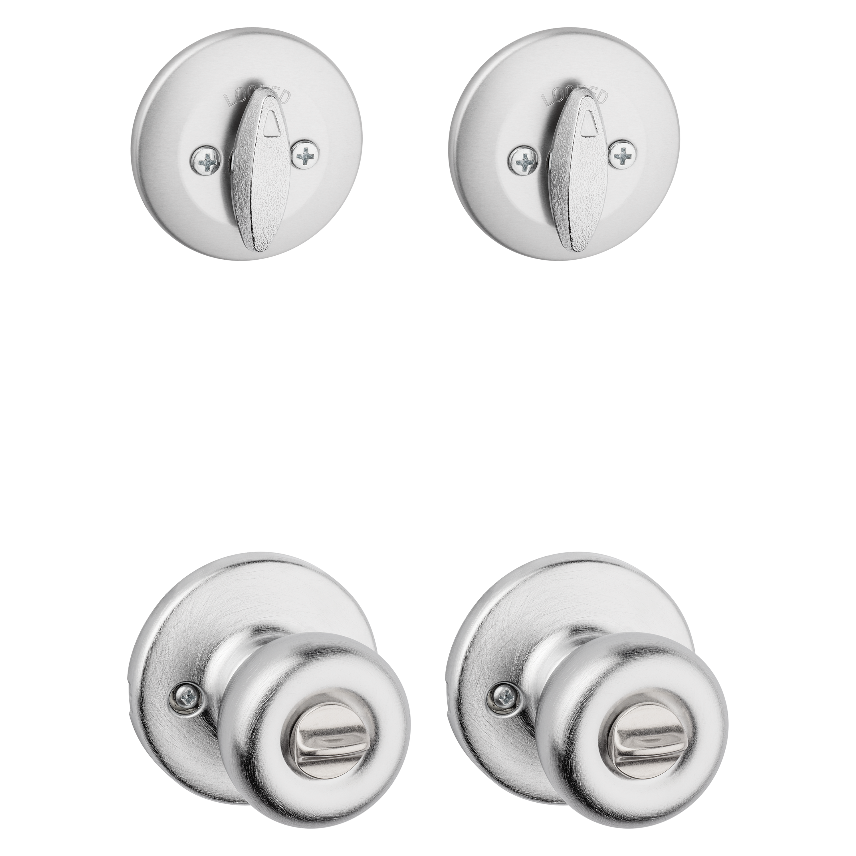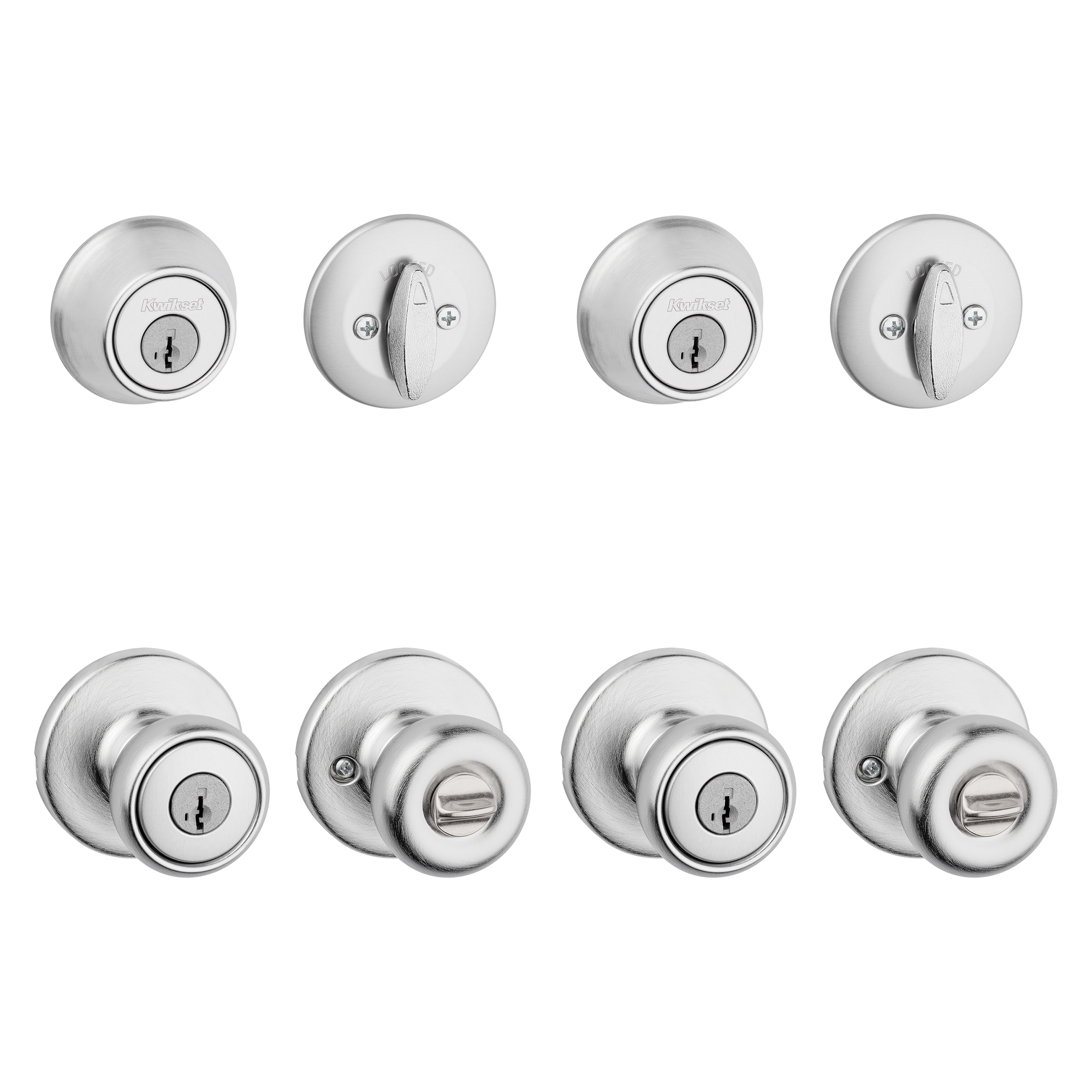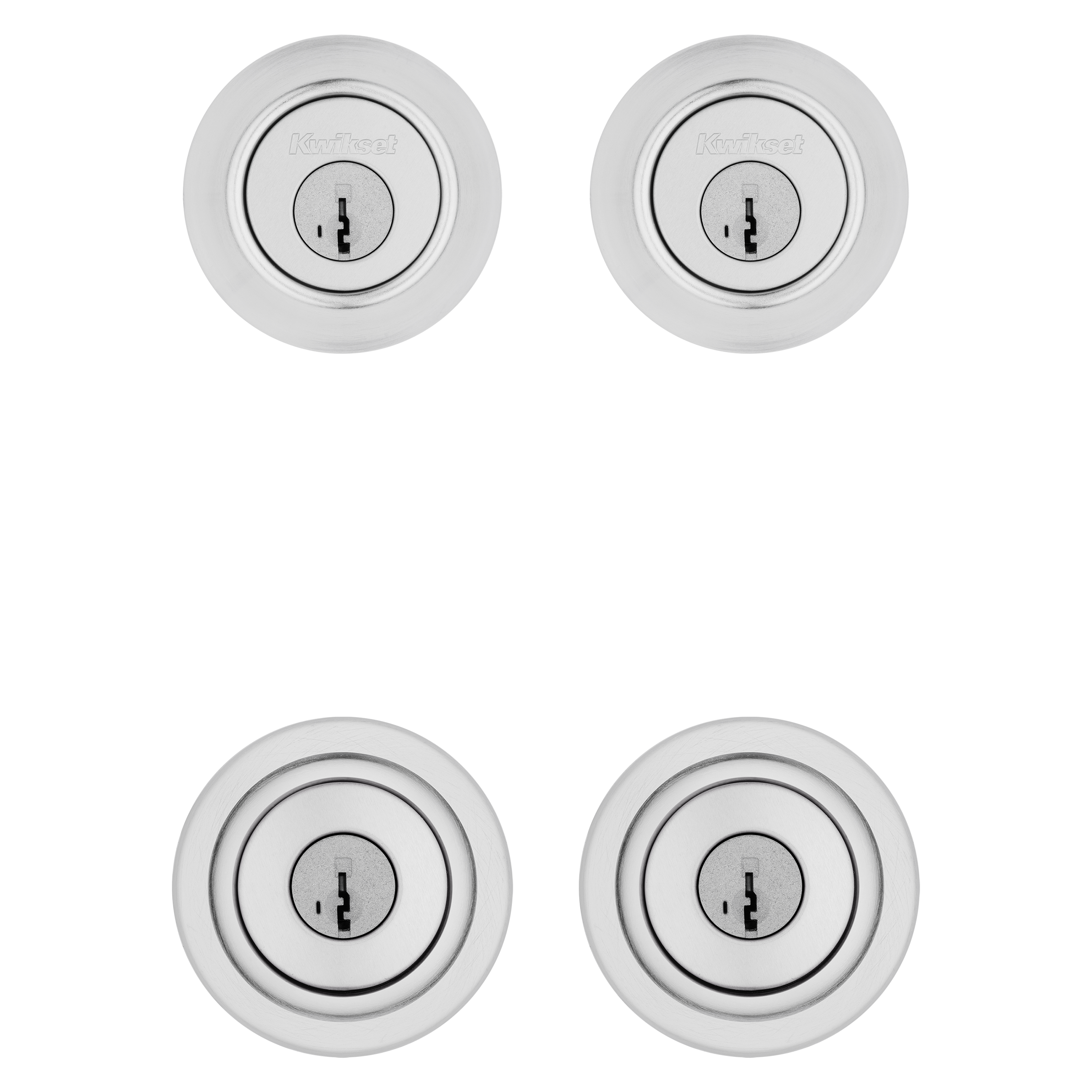 242 Tylo Keyed Entry Knob and Single Cylinder Deadbolt Project Pack featuring SmartKey Security™ in Satin Chrome