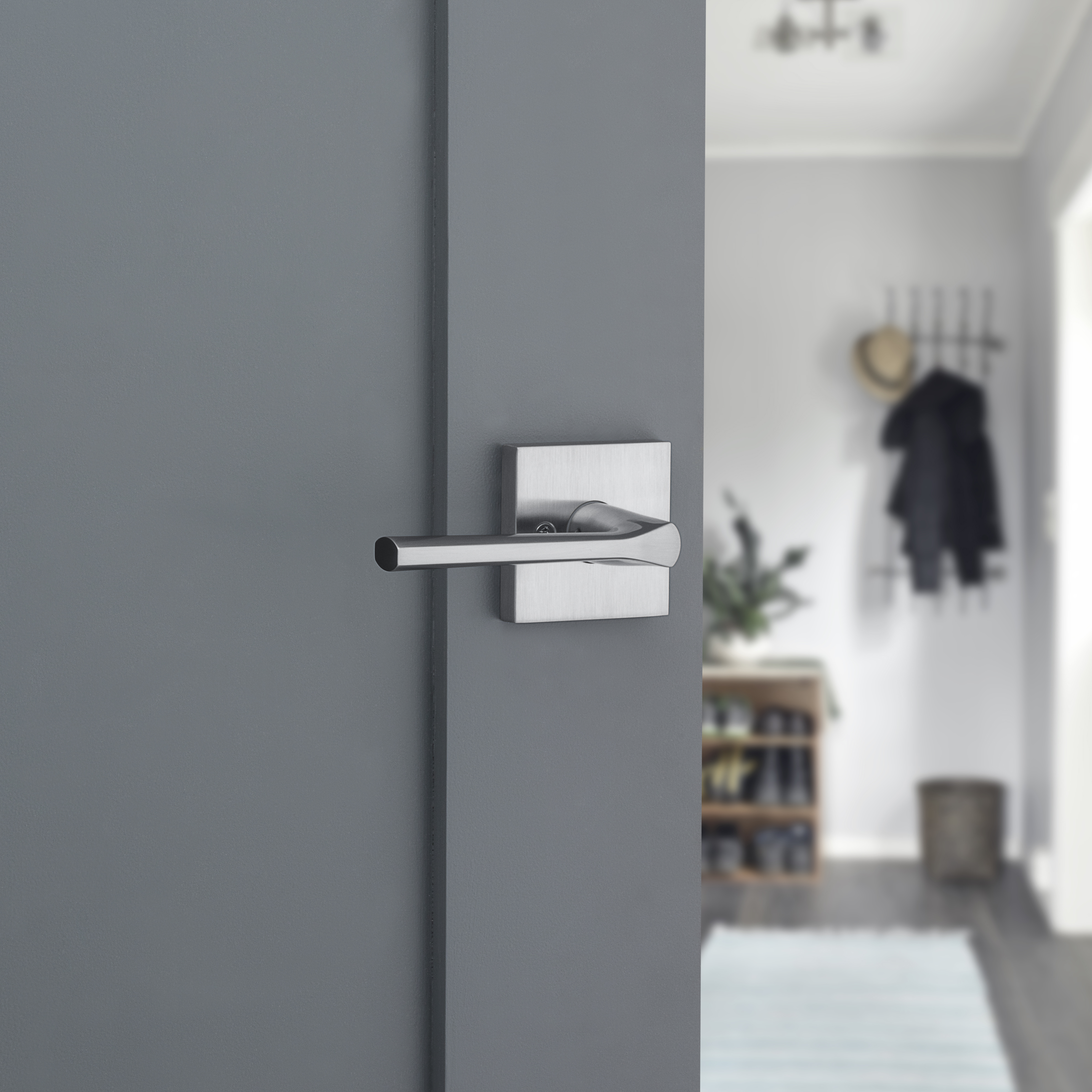 Lisbon Square Hall/Closet Lever in Satin Chrome