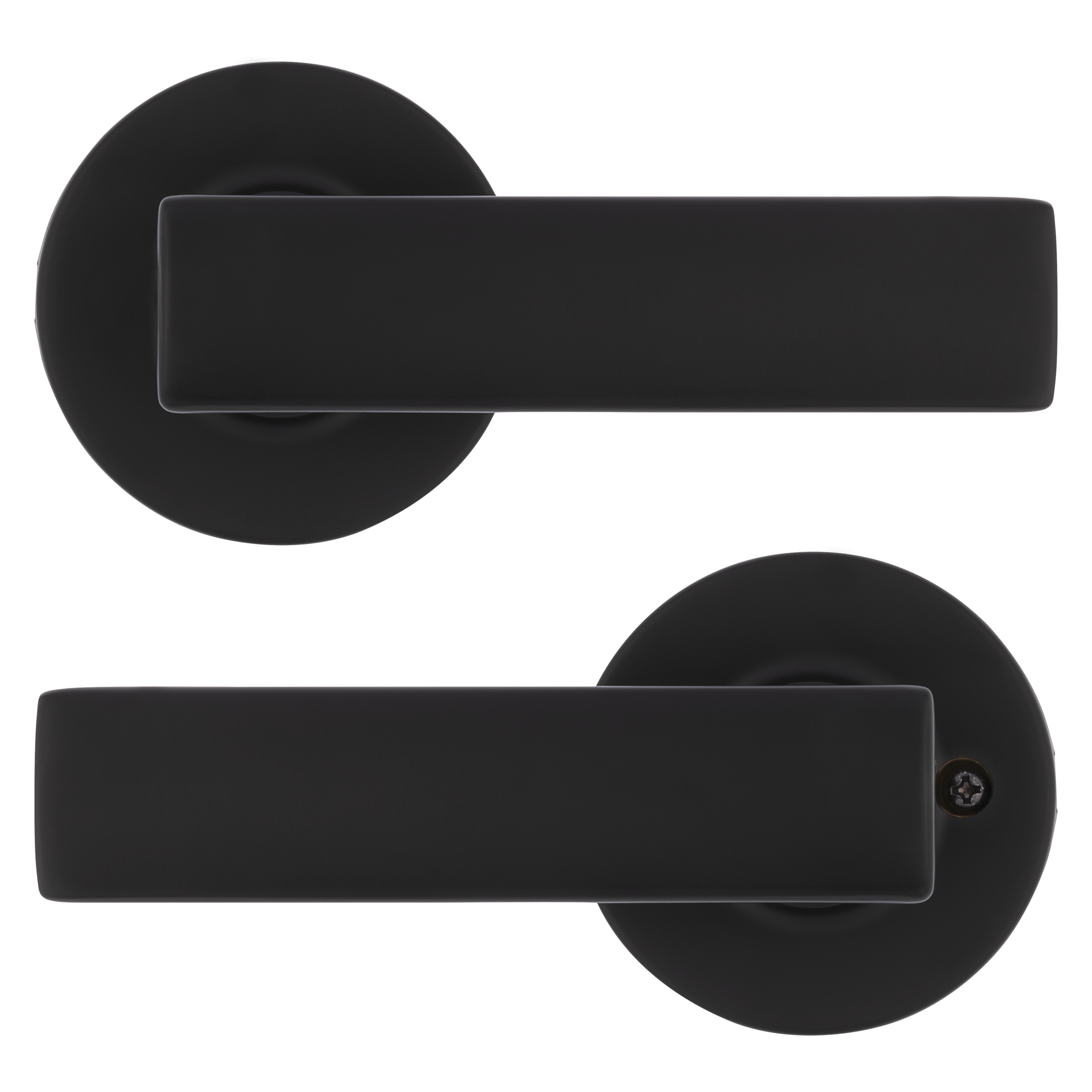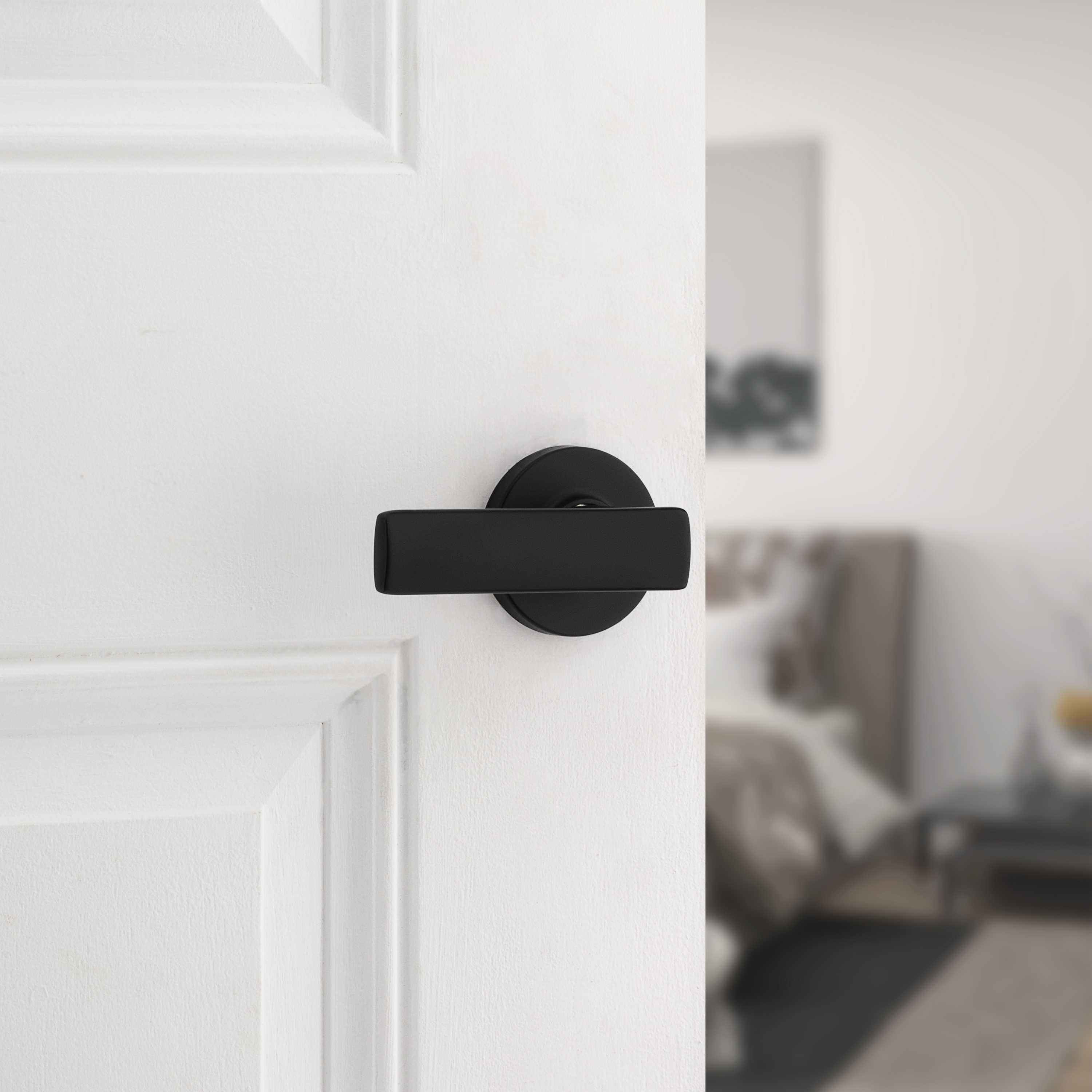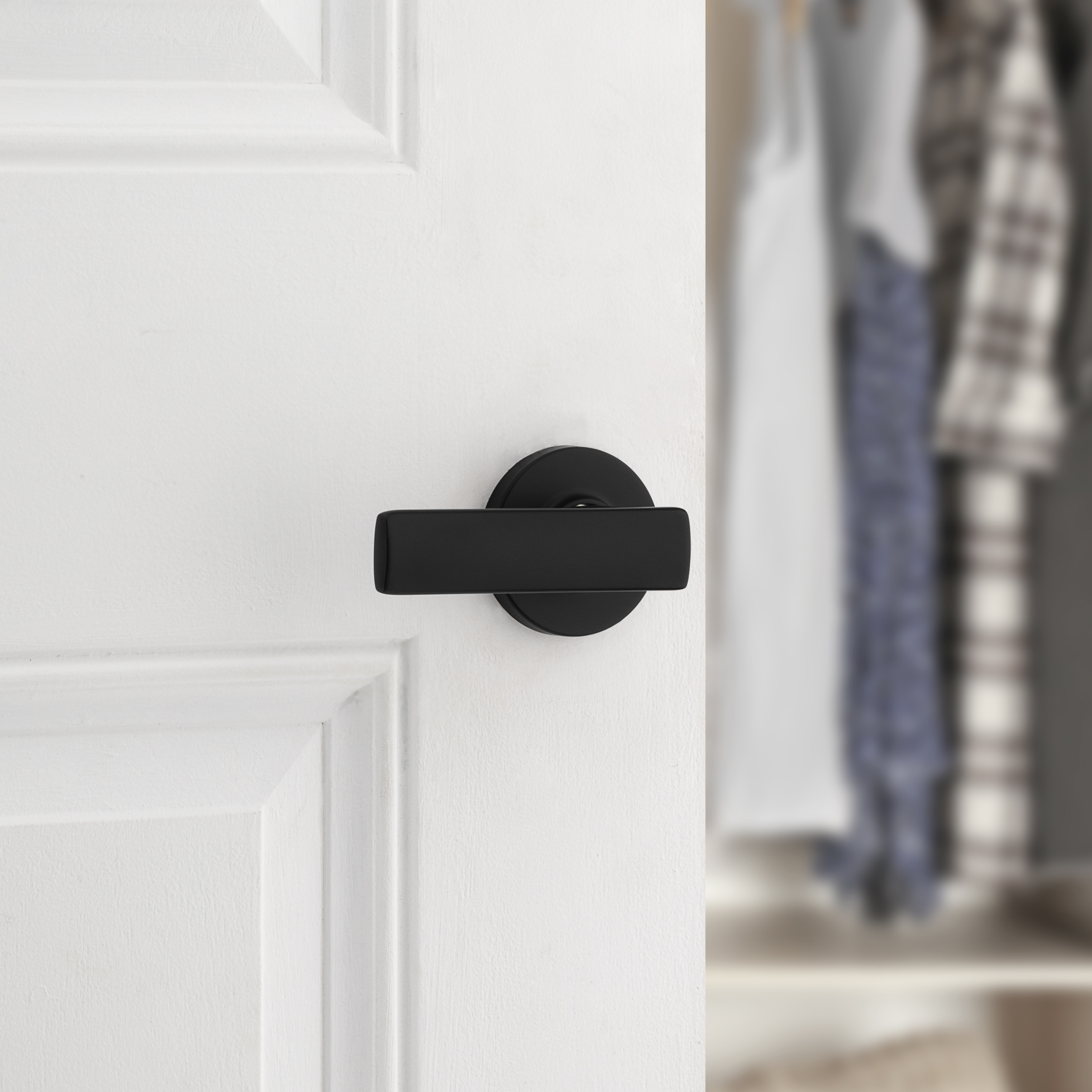 Breton Hall/Closet Door Lever with Round Rosette in Matte Black