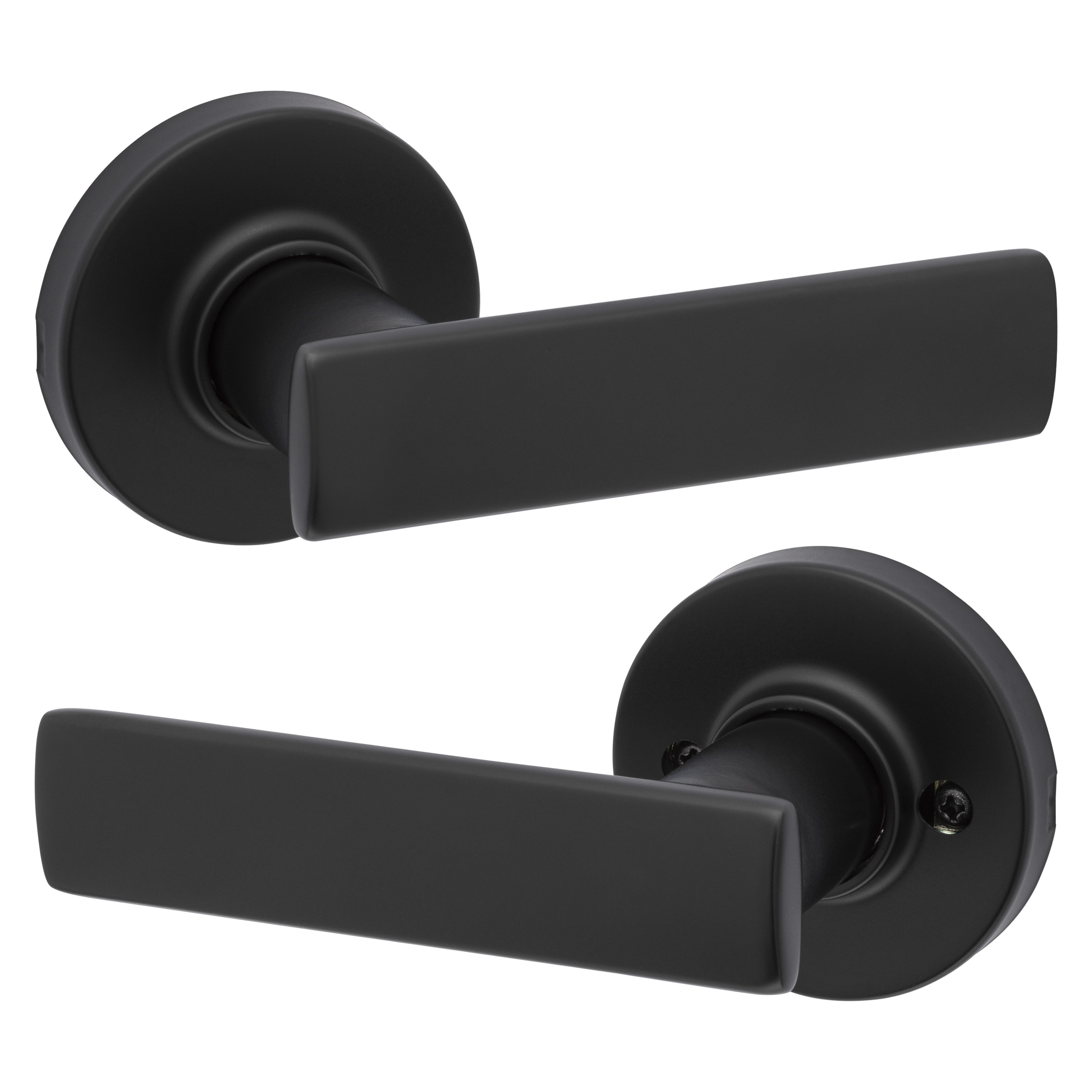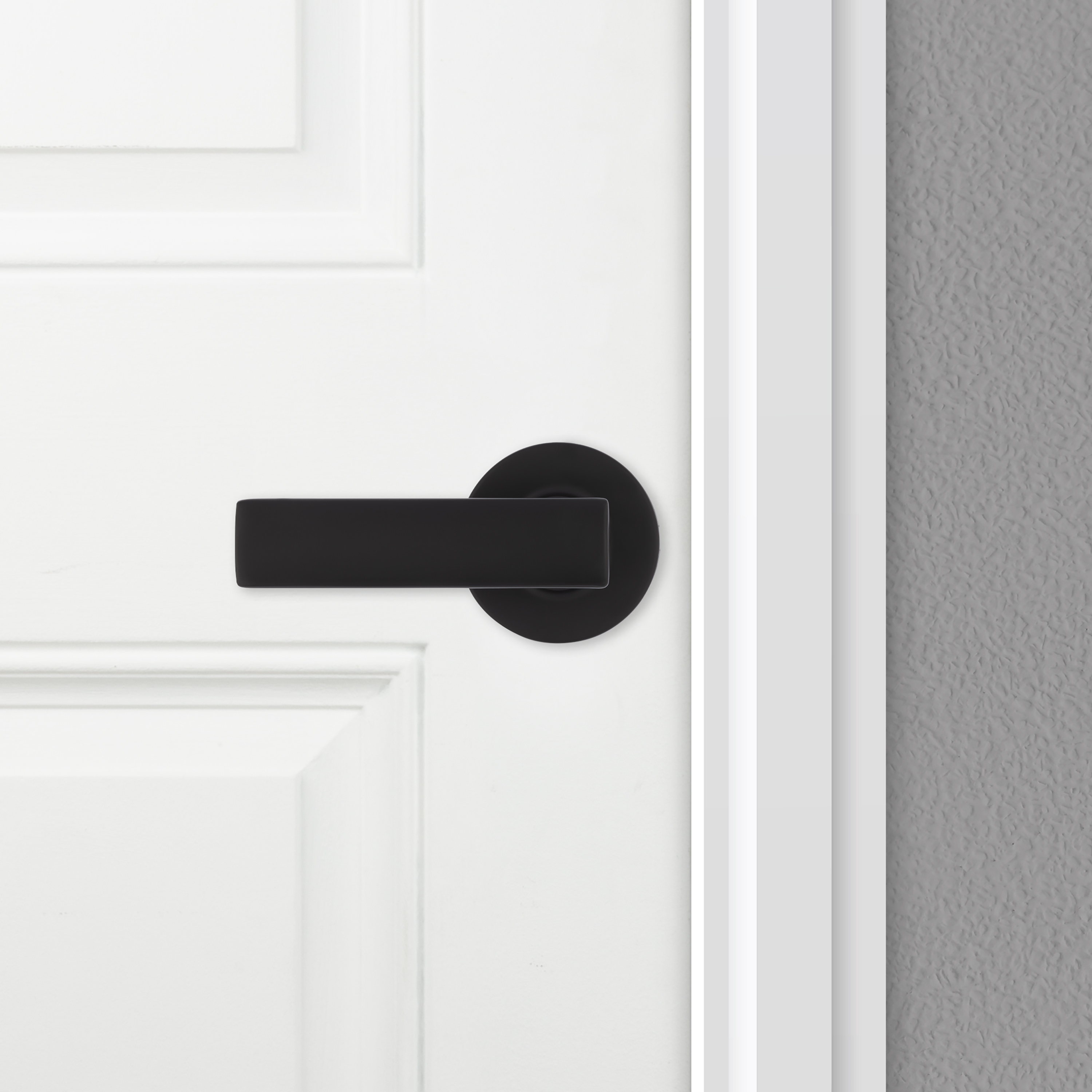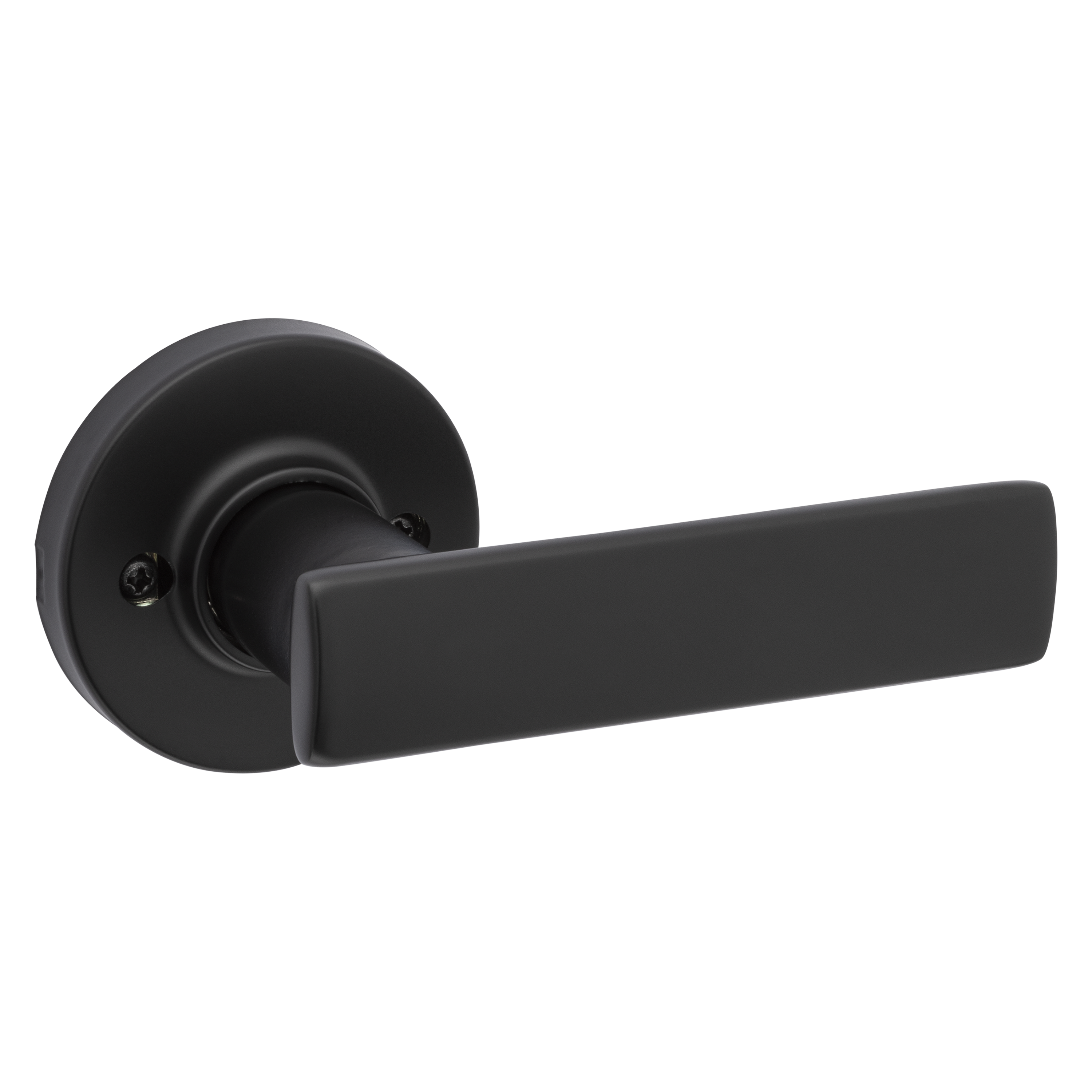 Breton Hall/Closet Door Lever with Round Rosette in Matte Black