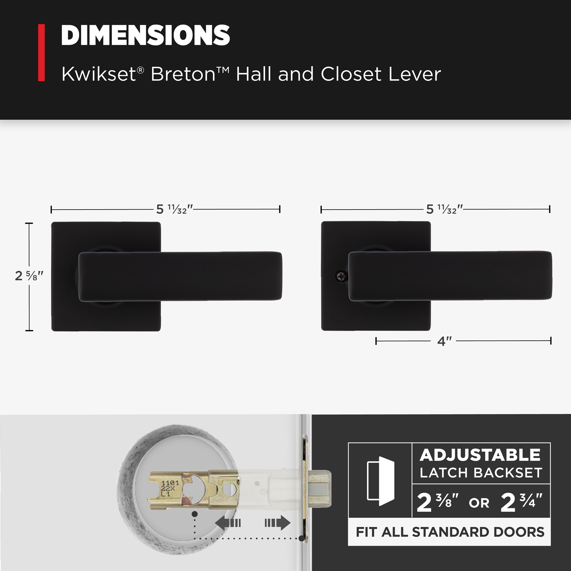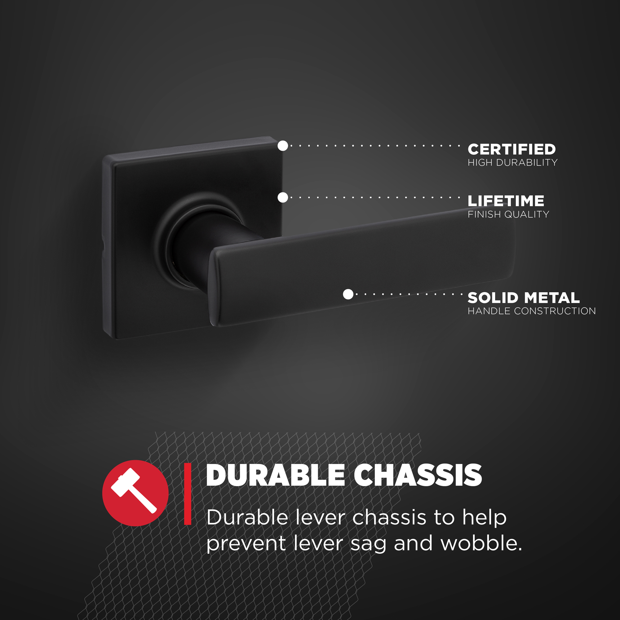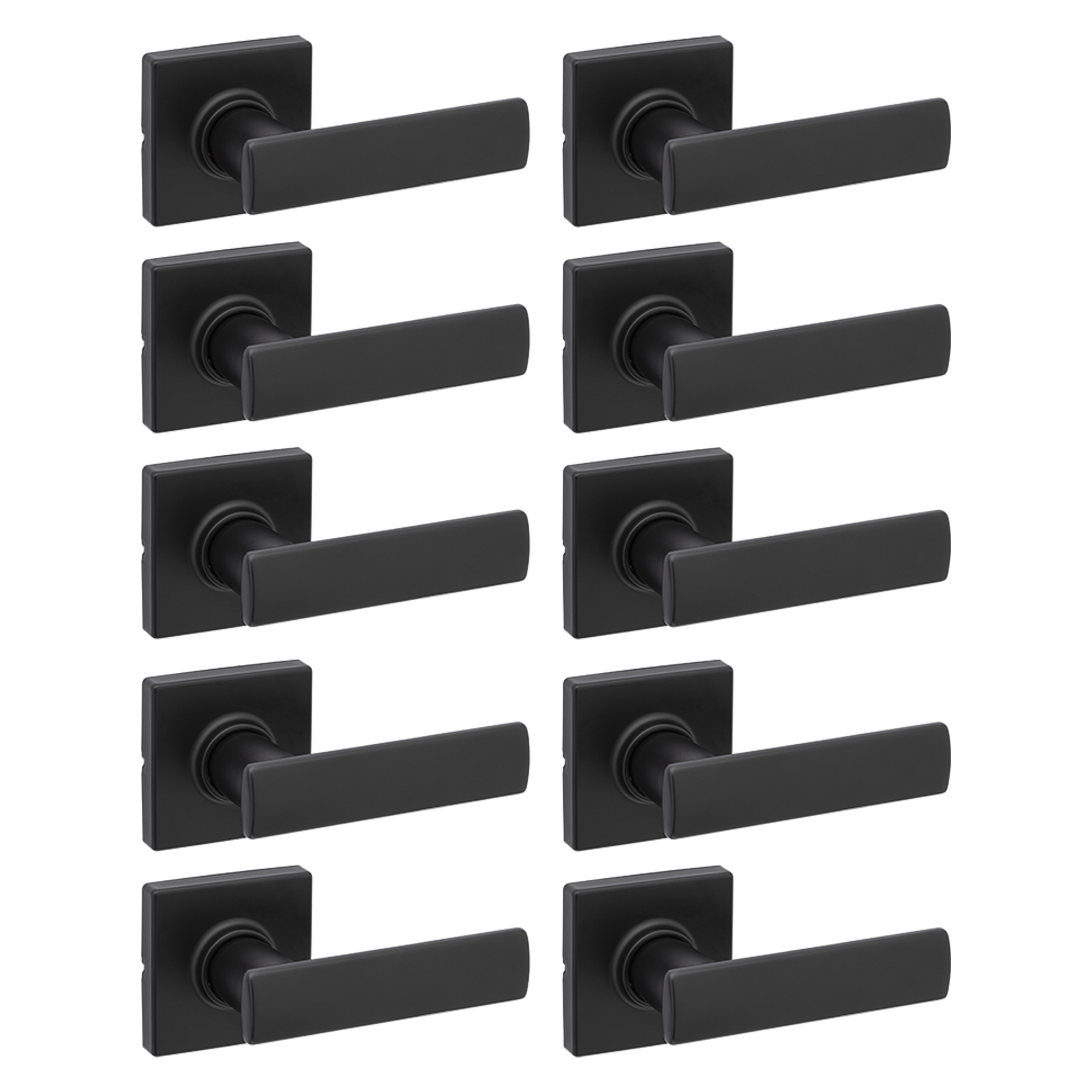 Breton Square Hall/Closet Lever featuring Microban in Matte Black (10-Pack)