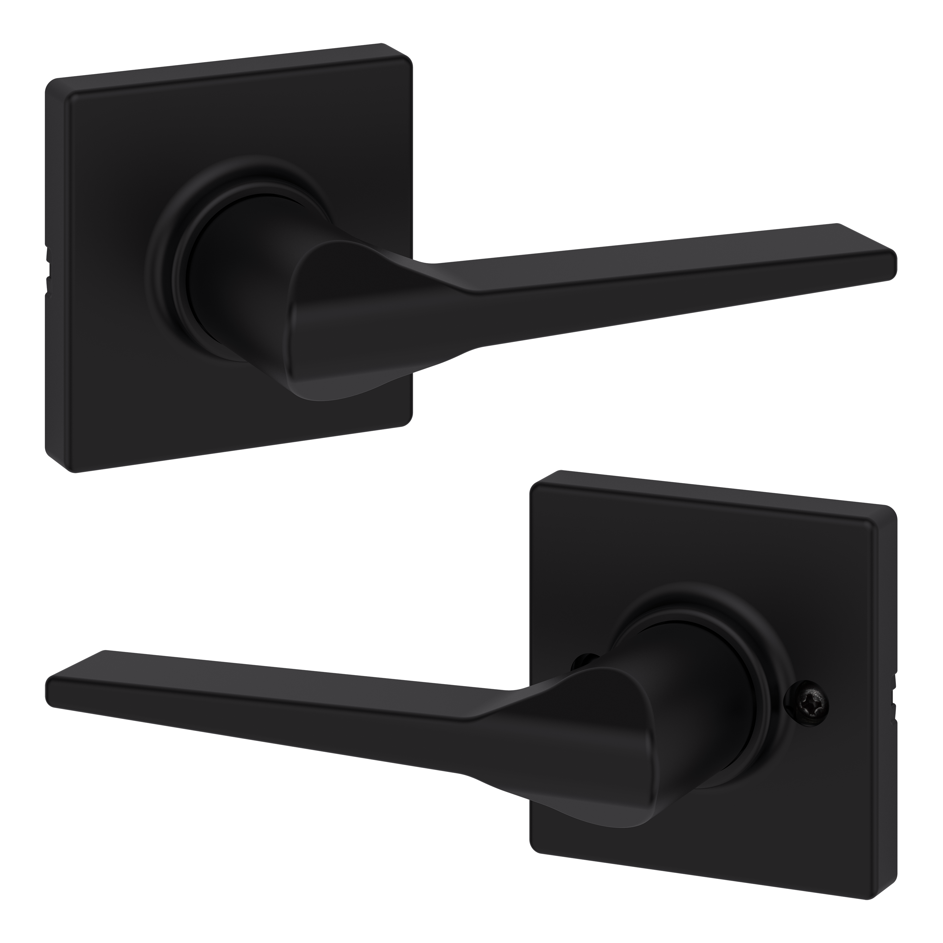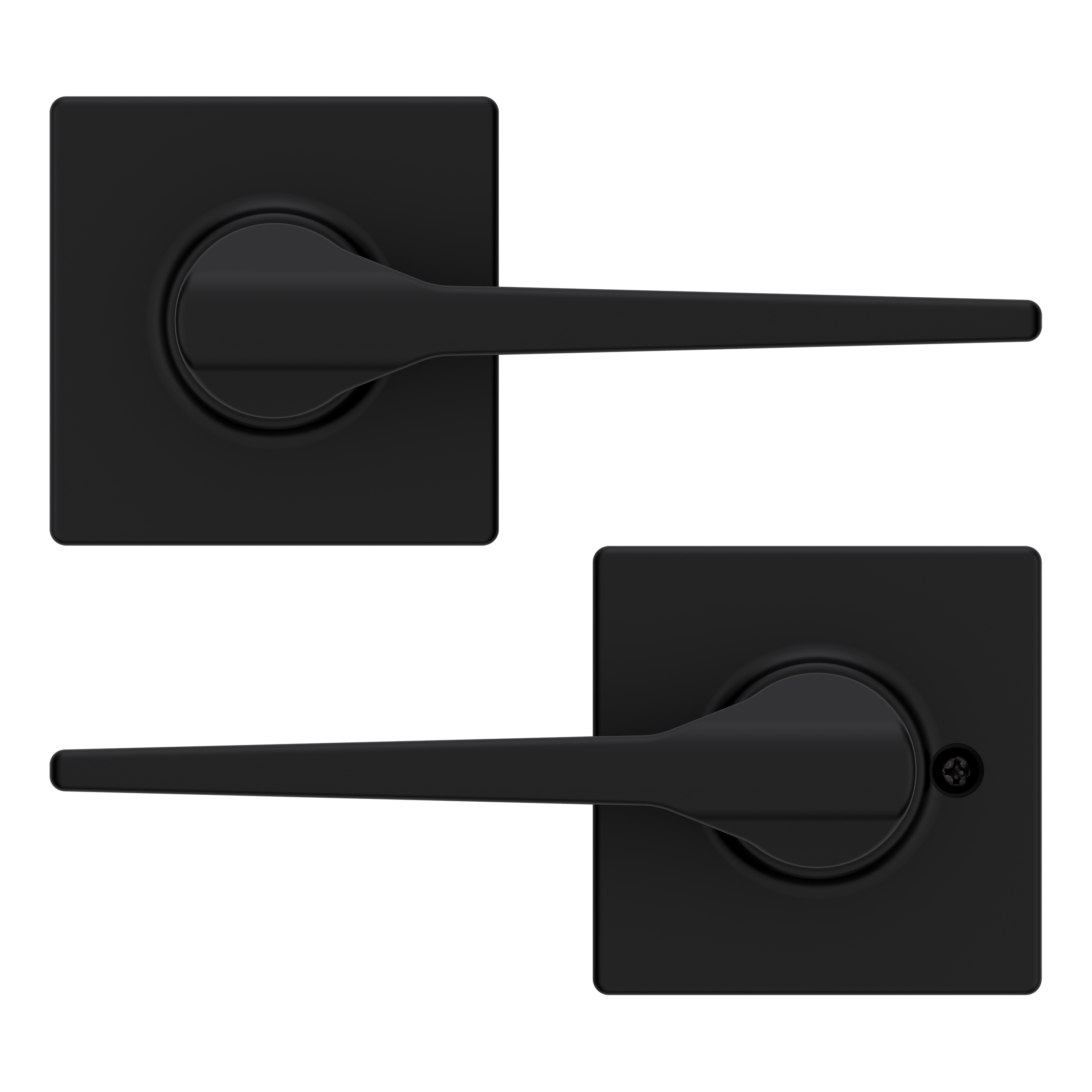 Box Includes: Box Includes passage lever, Adjustable Latch with round and square front options or drive-in collar, round corner strike, designer rosette, screws and Allen wrench