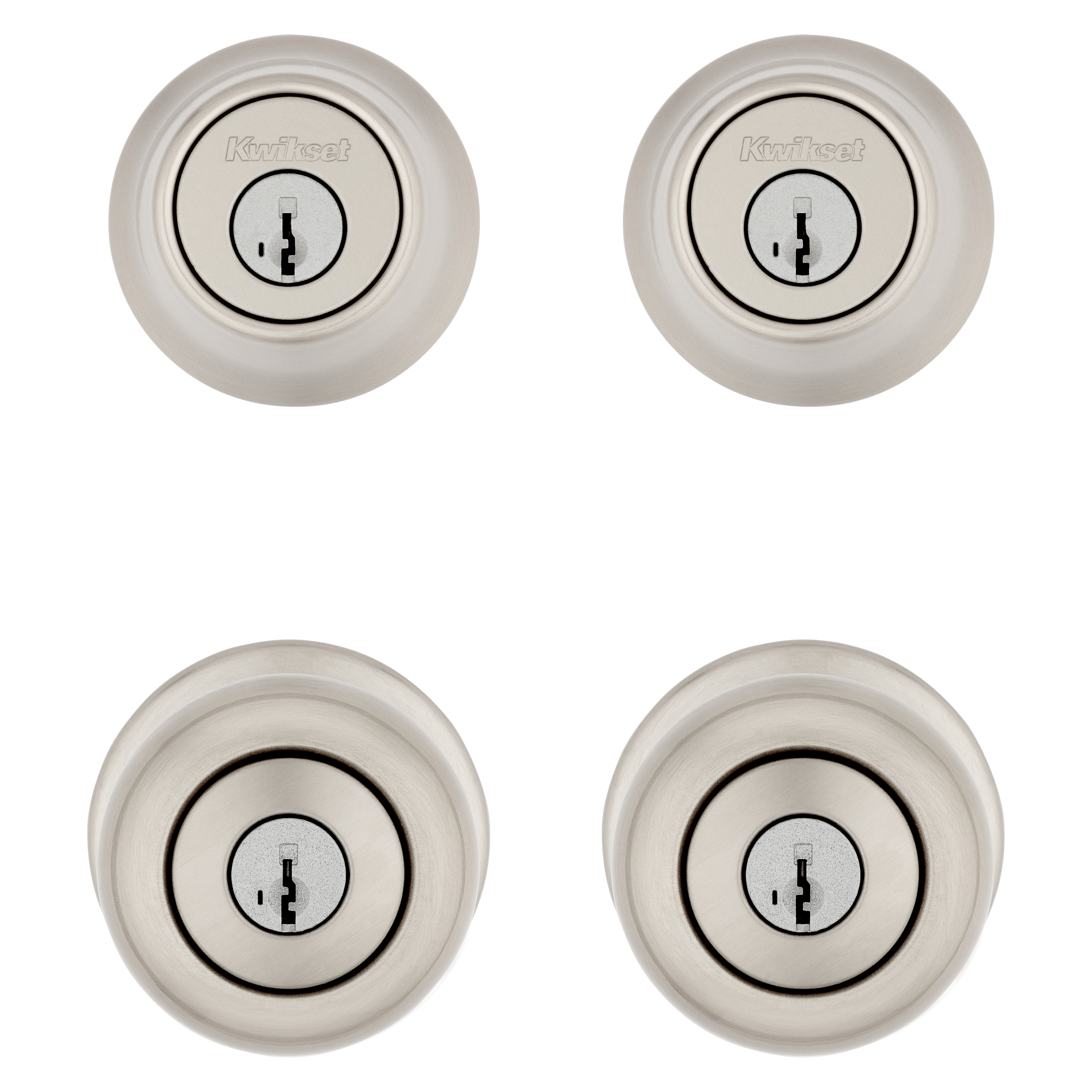 242 Cove Keyed Entry Knob and Single Cylinder Deadbolt Project Pack featuring SmartKey Security™ in Satin Nickel featuring Microban