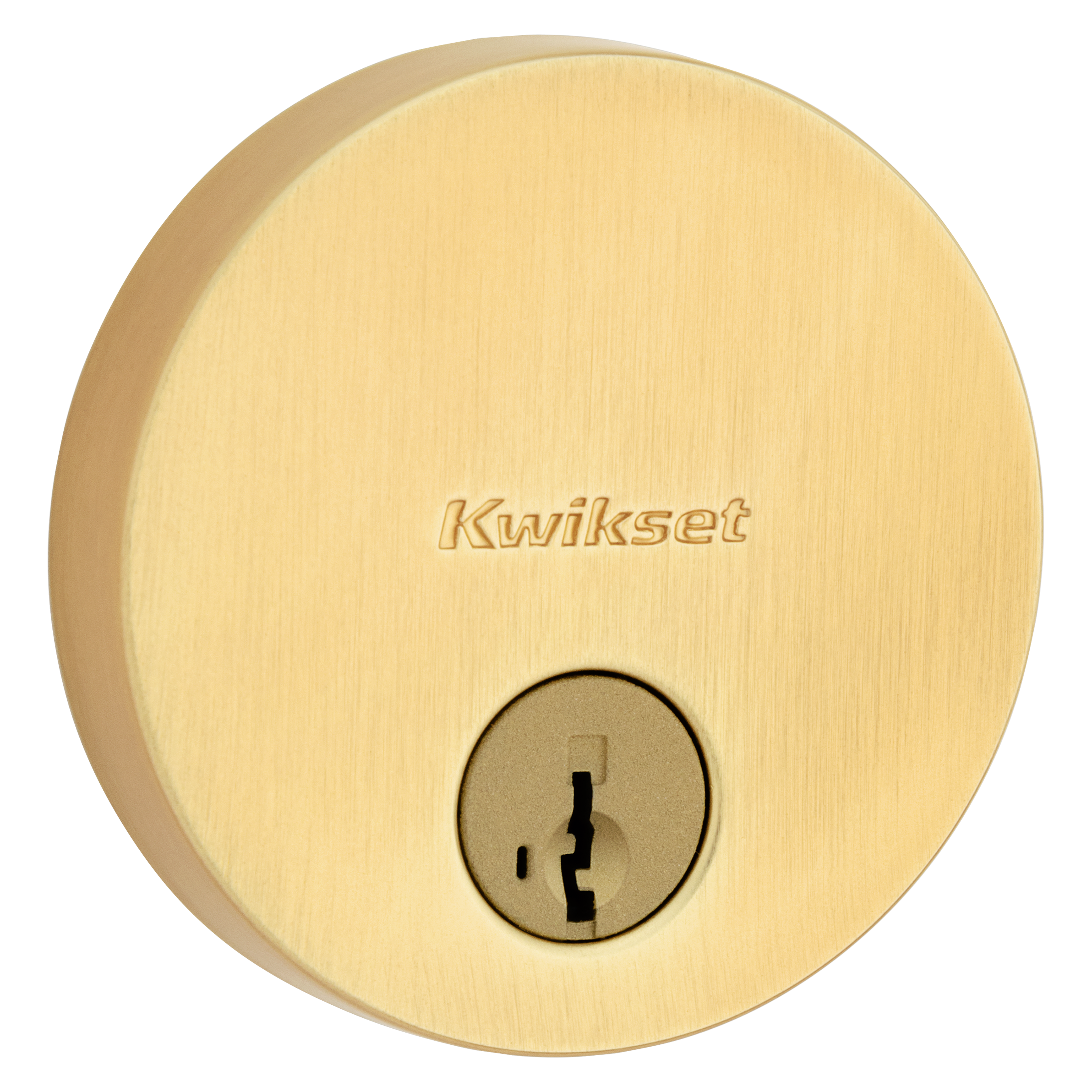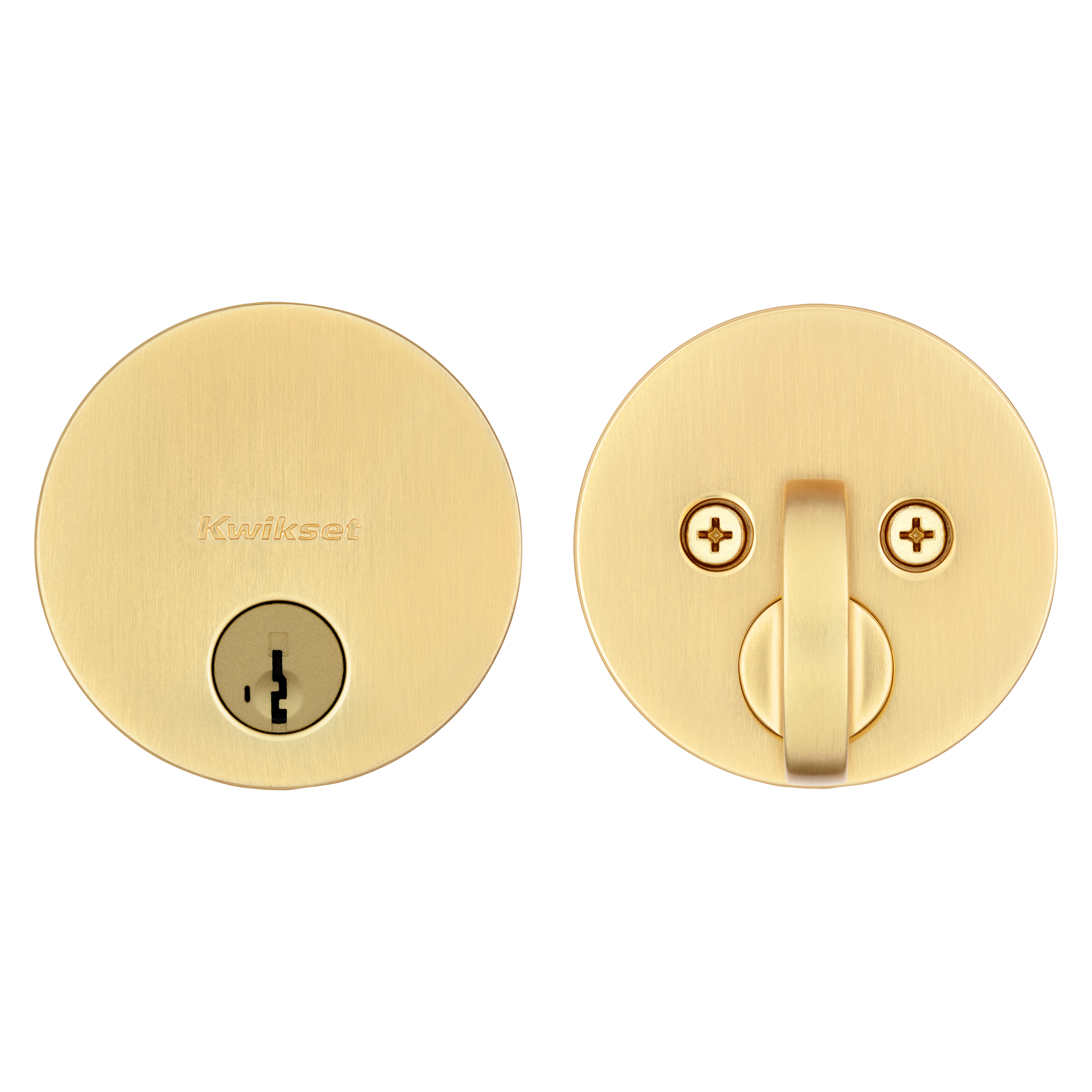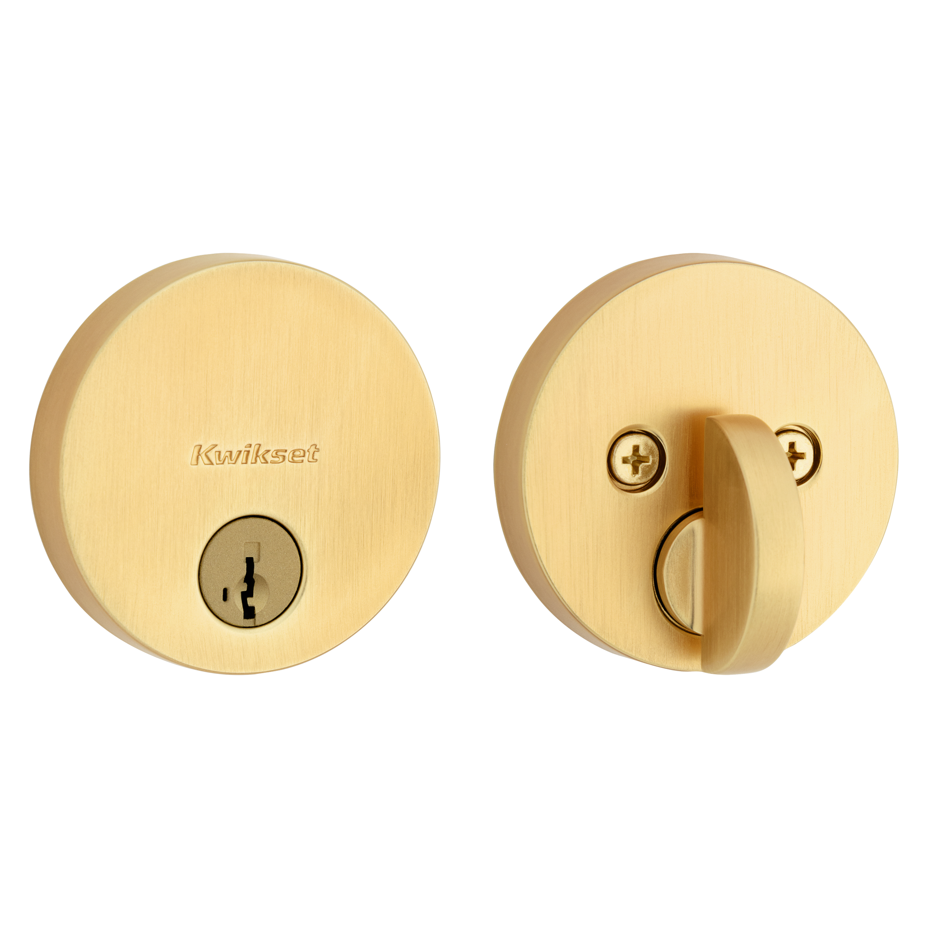 Uptown Single Cylinder Deadbolt in Satin Brass featuring SmartKey Security