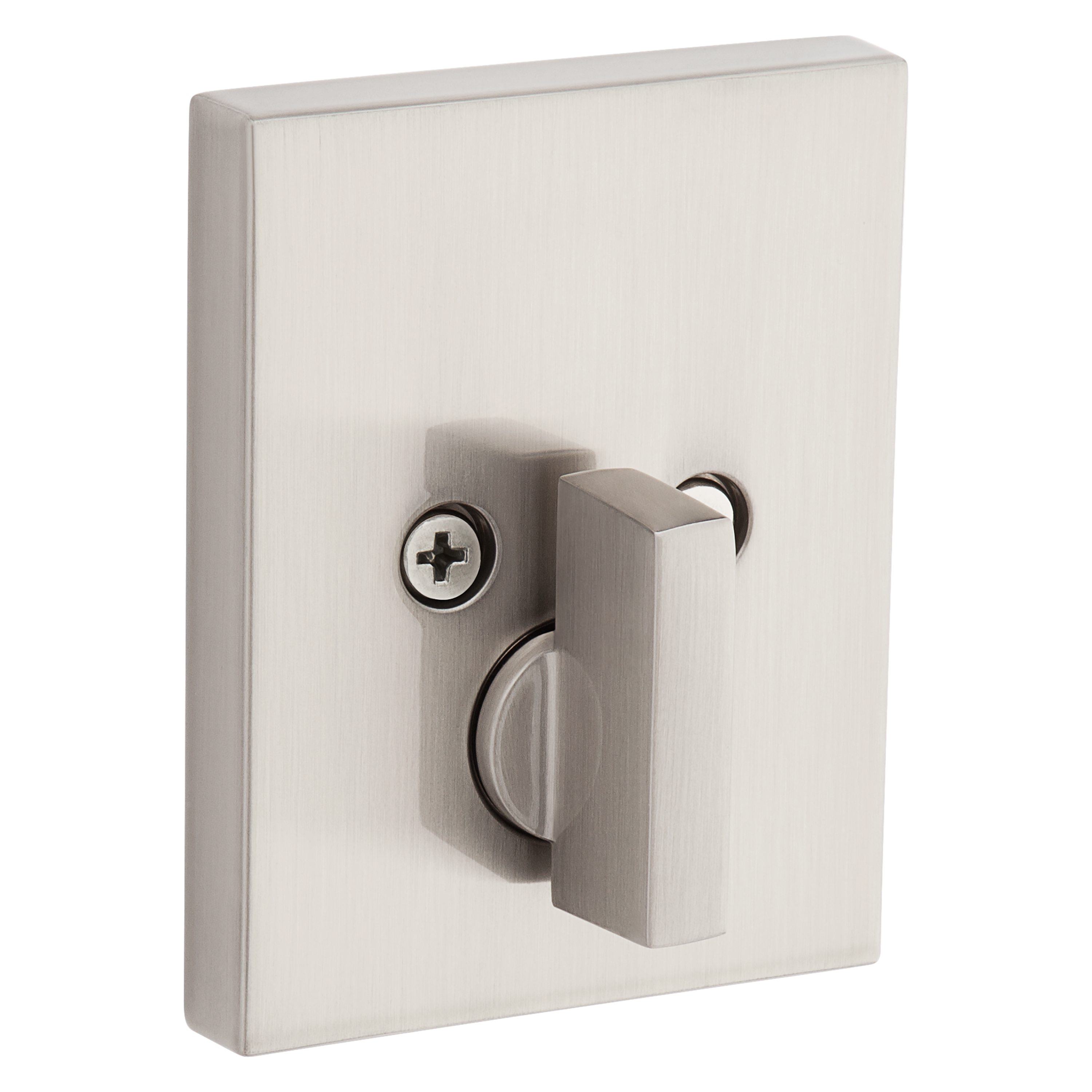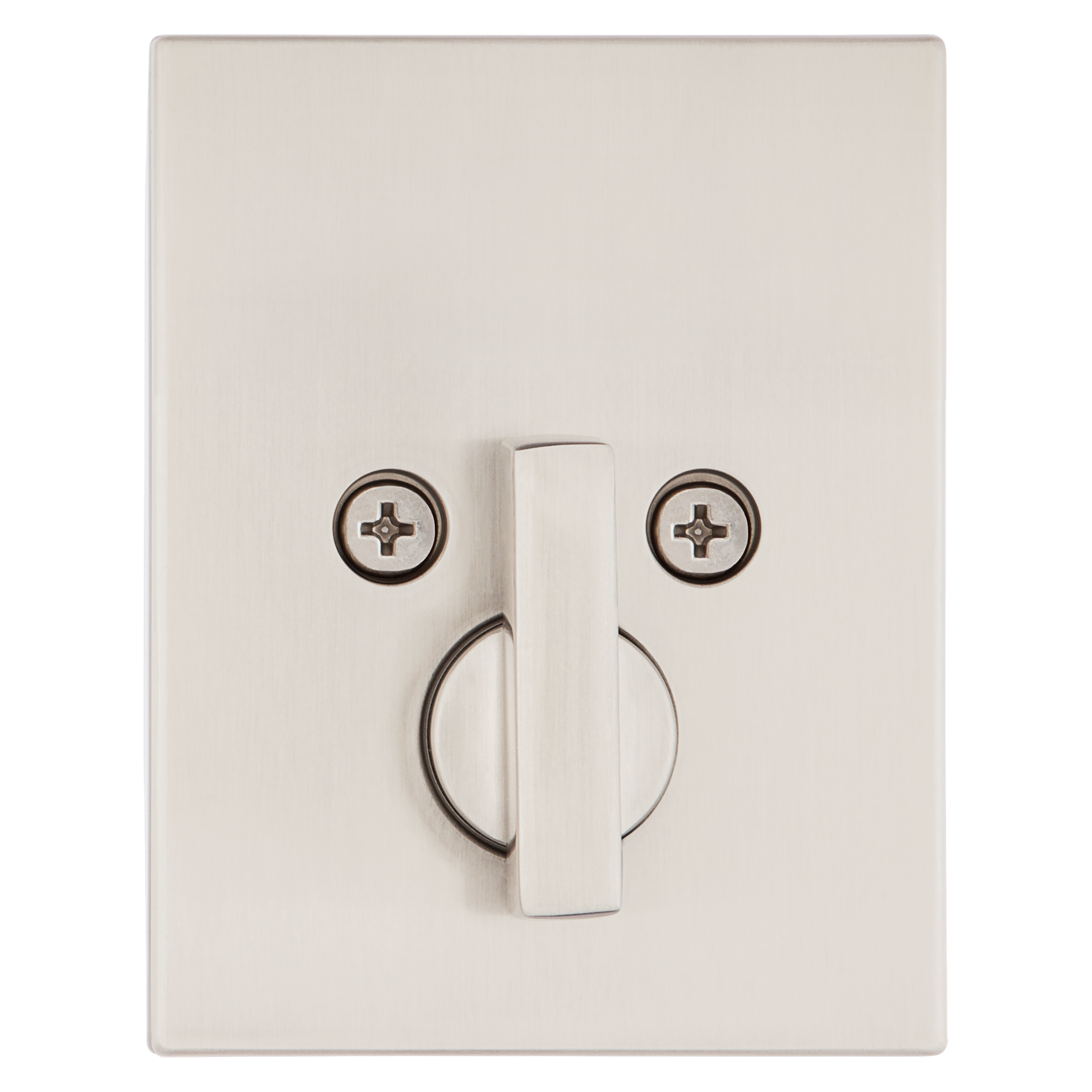 Deadbolt Latch has 3 interchangable faceplates - round corner, square corner, and drive-in collar