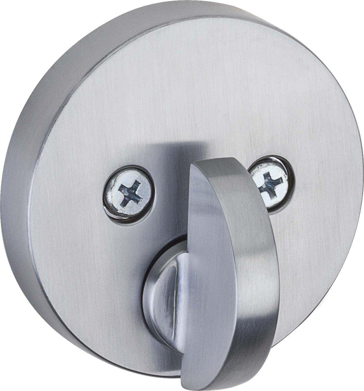 Deadbolt Latch has 3 interchangable faceplates - round corner, square corner, and drive-in collar