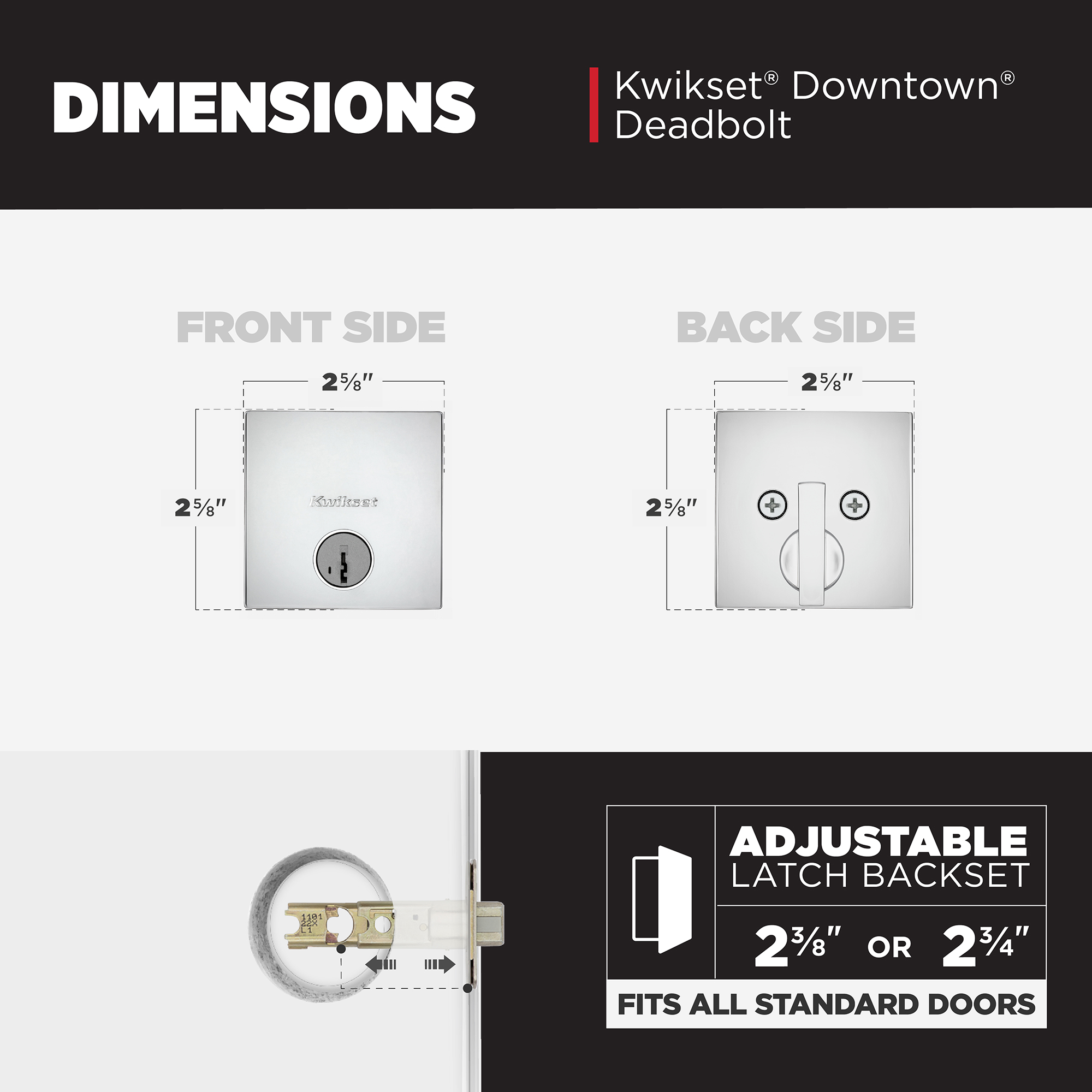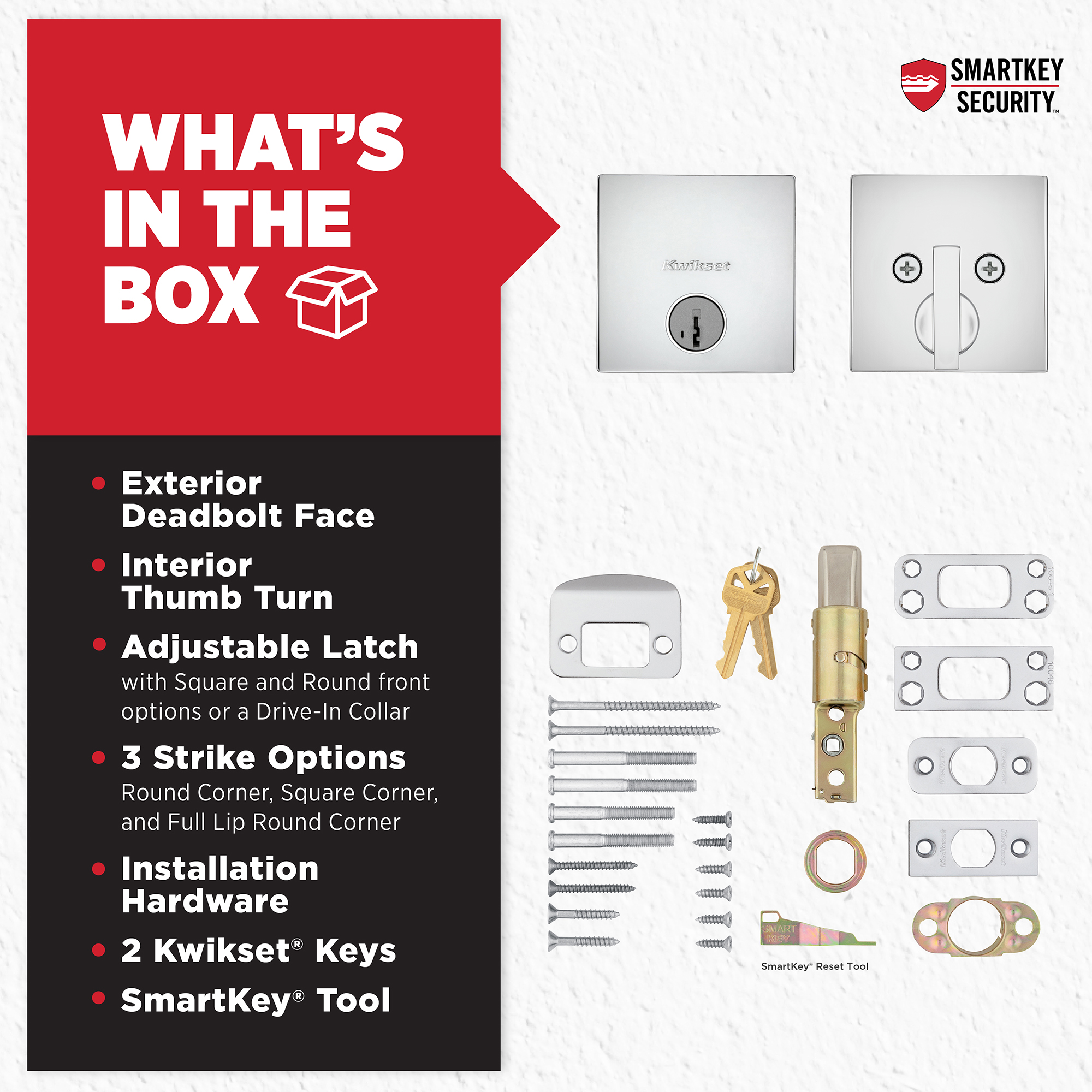 | Product Description | Our low profile deadbolts take a modern approach to design. Their sleek, slim profile will enhance your entryway’s appeal. Available in traditional to contemporary styles to match any lever or knob, and built with our patented SmartKey® Security, there’s a 258 deadbolt perfect for your front door. |