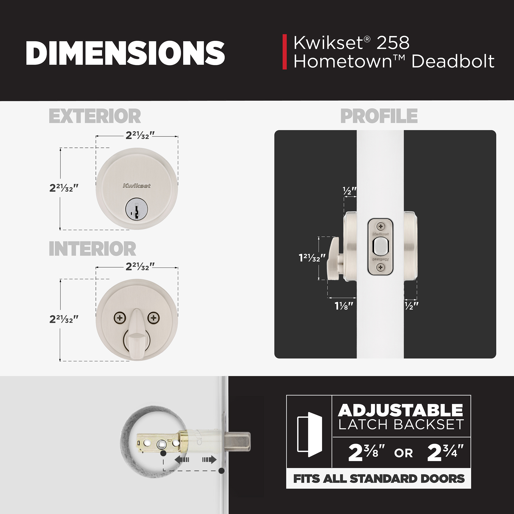 258 Hometown Round Keyed One Side Low Profile Deadbolt featuring SmartKey Security™ in Satin Nickel