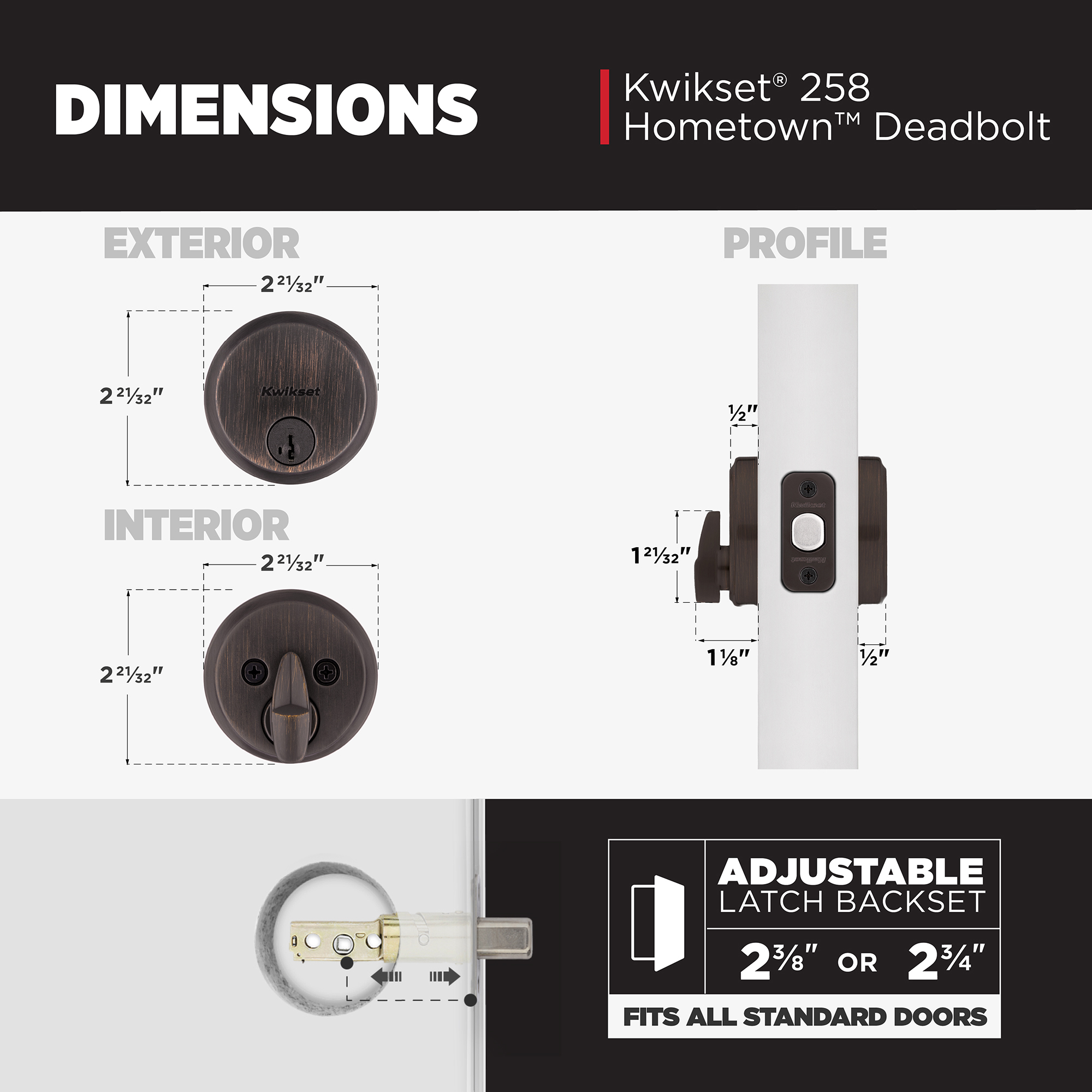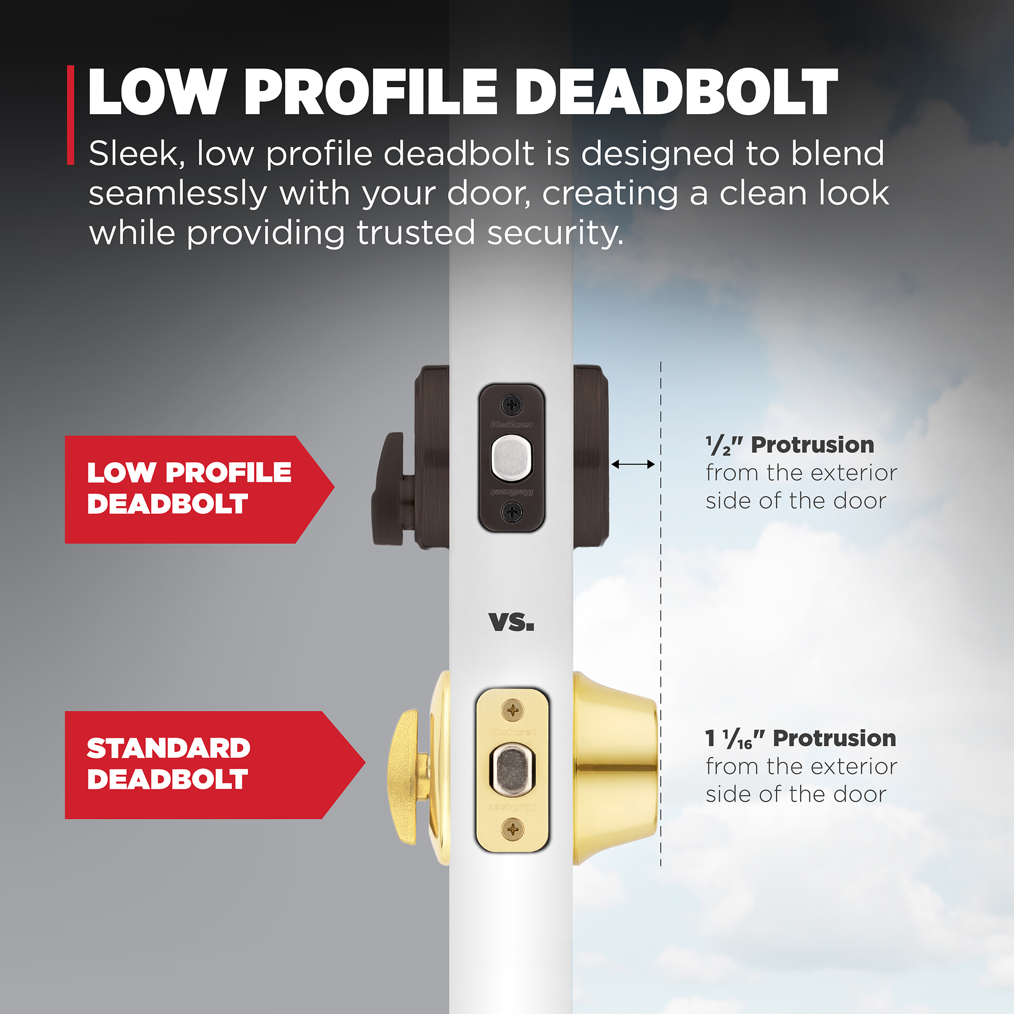 Our low profile deadbolts take a modern approach to design. Their sleek, slim profile will enhance your entryway’s appeal. Available in traditional to contemporary styles to match any lever or knob, and built with our patented SmartKey® Security, there’s a 258 deadbolt perfect for your front door.