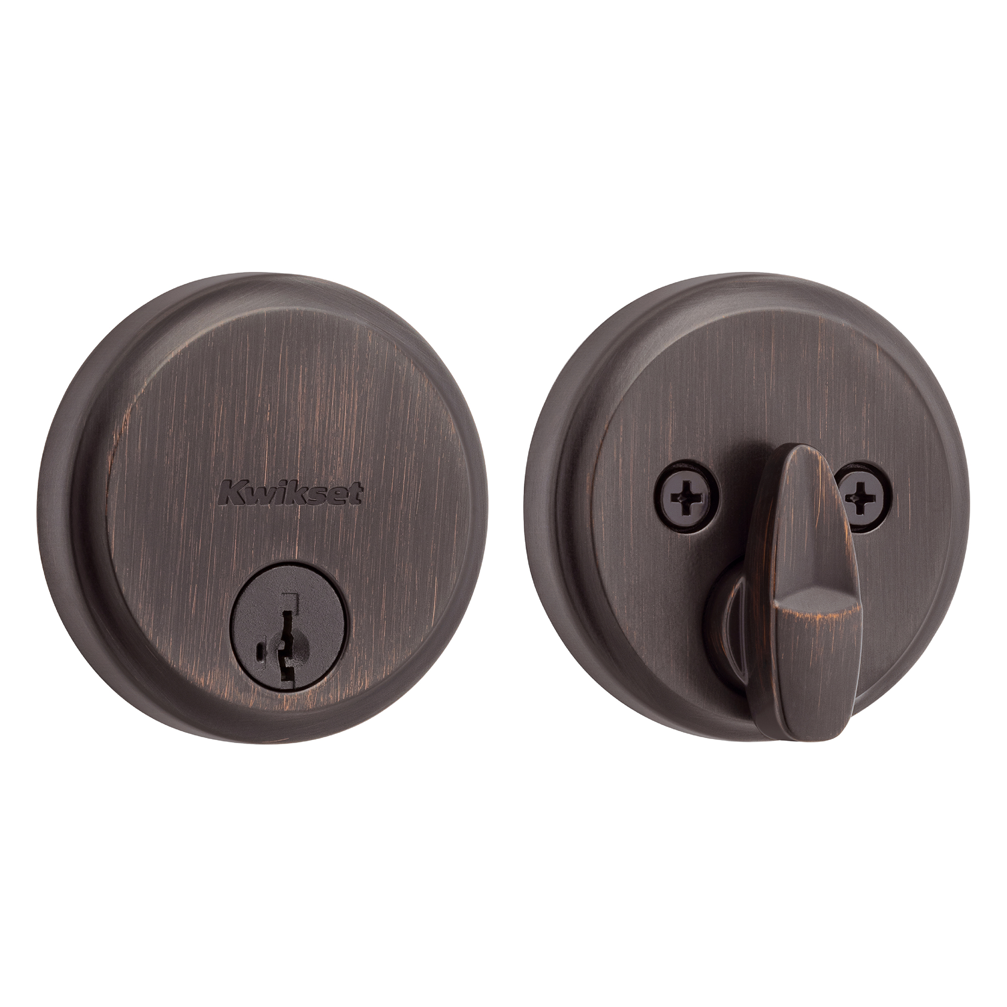258 Hometown Round Keyed One Side Low Profile Deadbolt featuring SmartKey Security™ in Venetian Bronze
