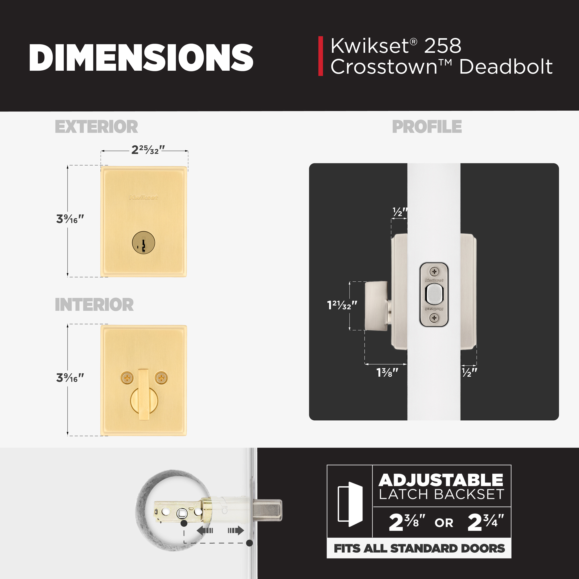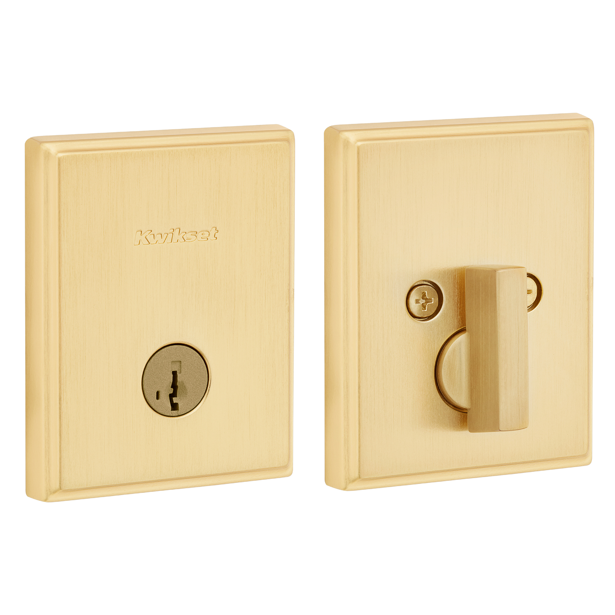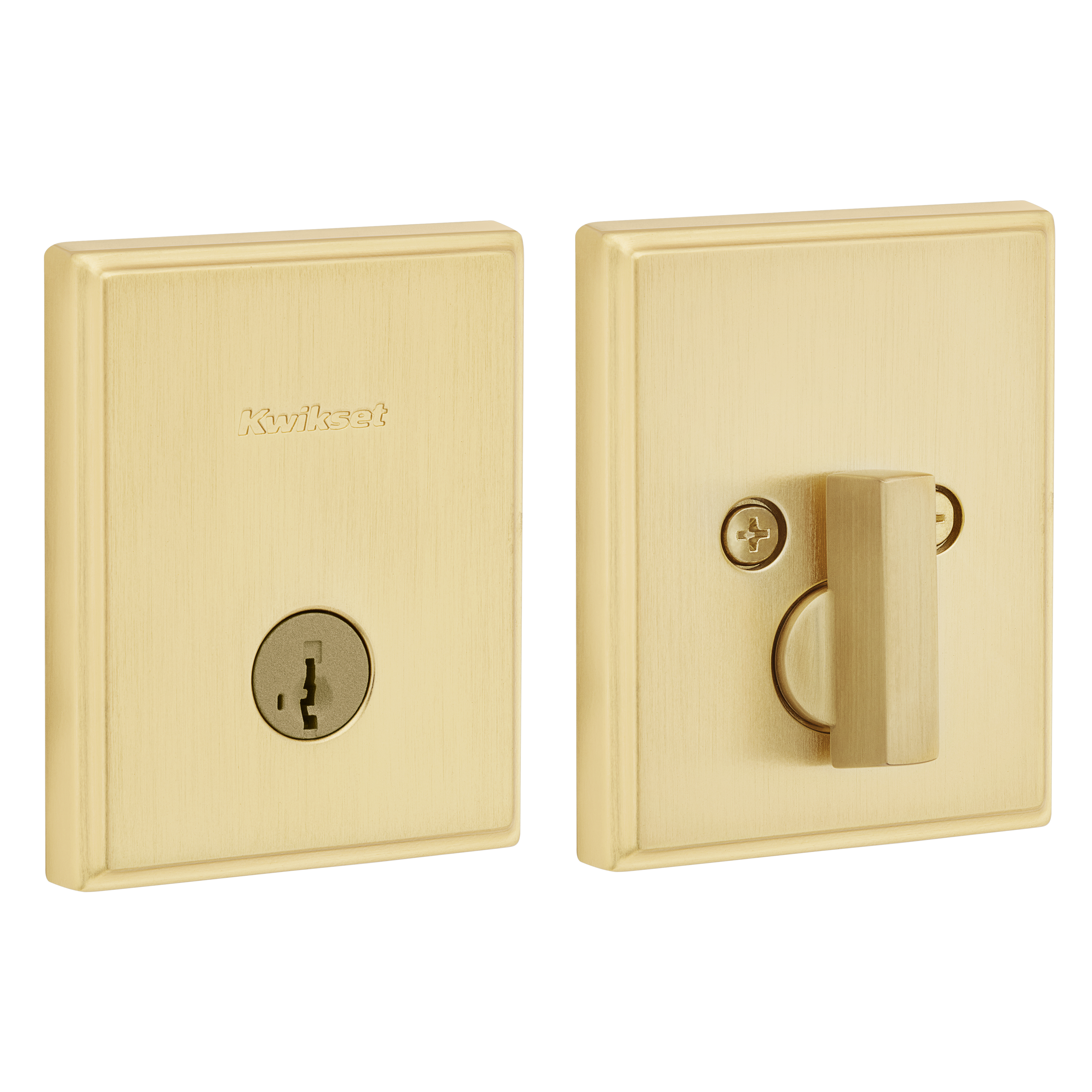 258 Crosstown Rectangle Keyed One Side Low Profile Deadbolt featuring SmartKey Security™ in Satin Brass