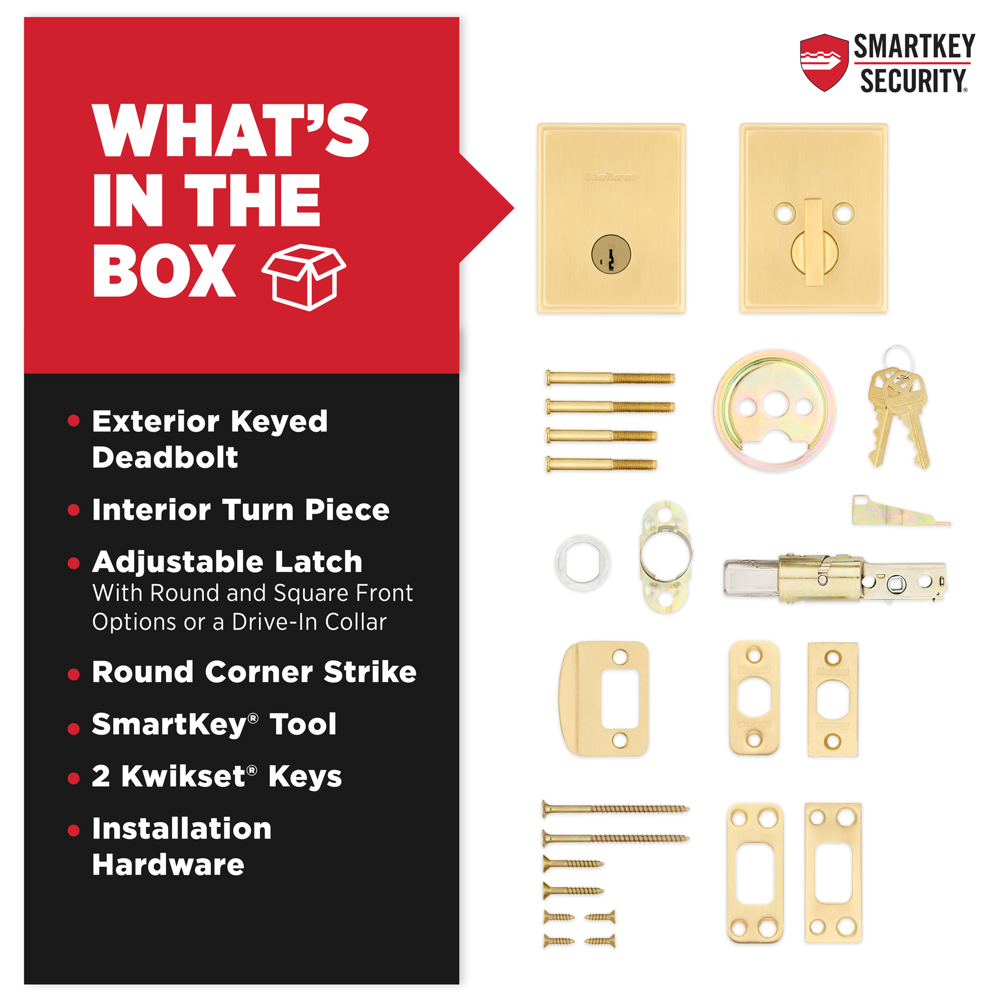SmartKey Security™ re-key technology is compatible with Kwikset (KW1) keyway or (SC1) keyway options