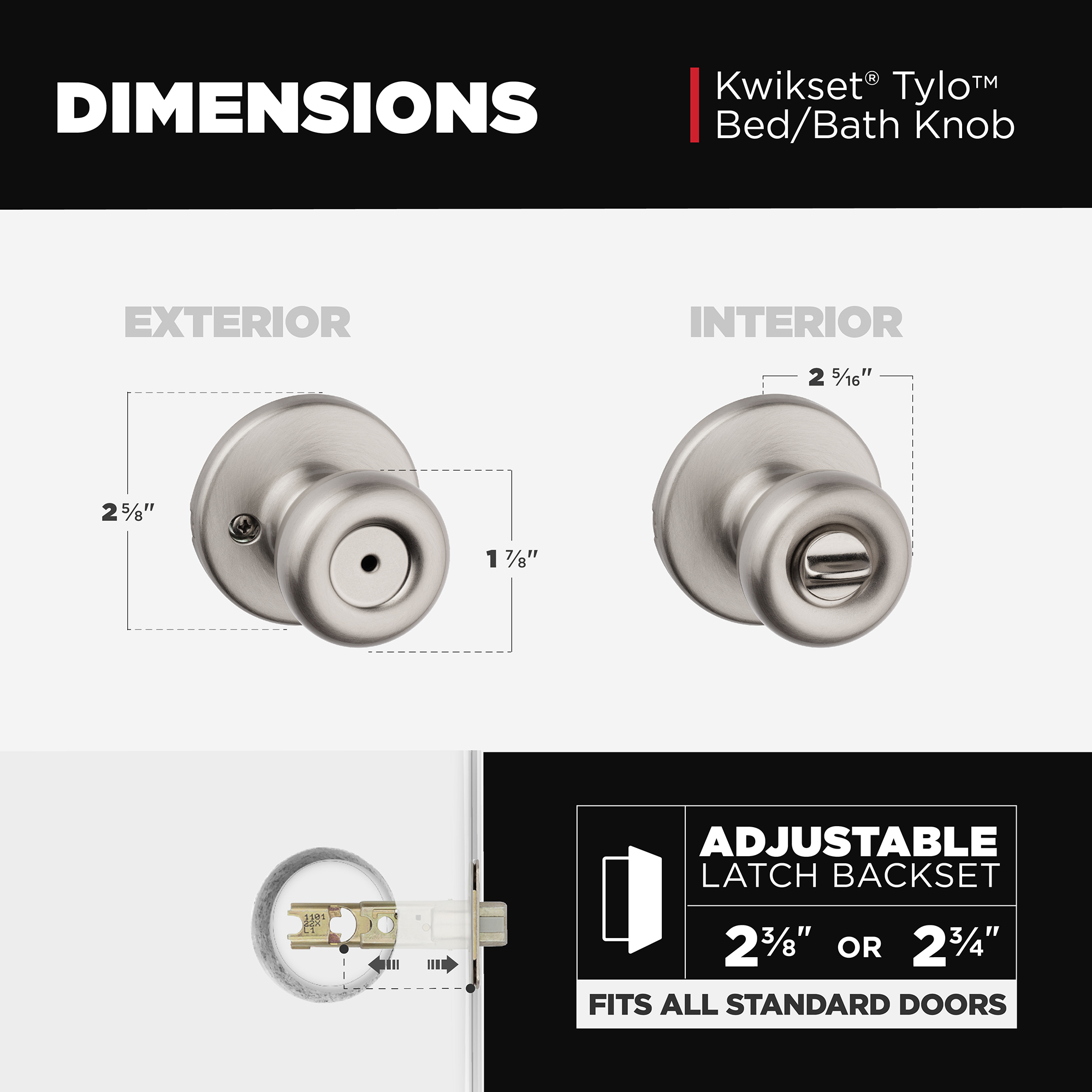 Fits Standard Doors: Fits standard size doors 1-3/8" to 1-3/4" thick, latch backset adjusts to either 2-3/8" or 2-3/4" by sliding the adjustment pin during installation
