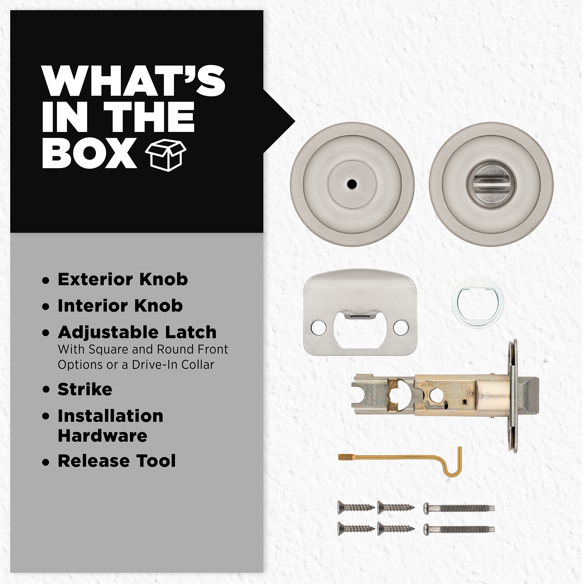 Adjustable Latch: By sliding the adjustment pin during installation, the latch backset can be adjusted to either 2-3/8" or 2-3/4" in order to fit all standard door preparations