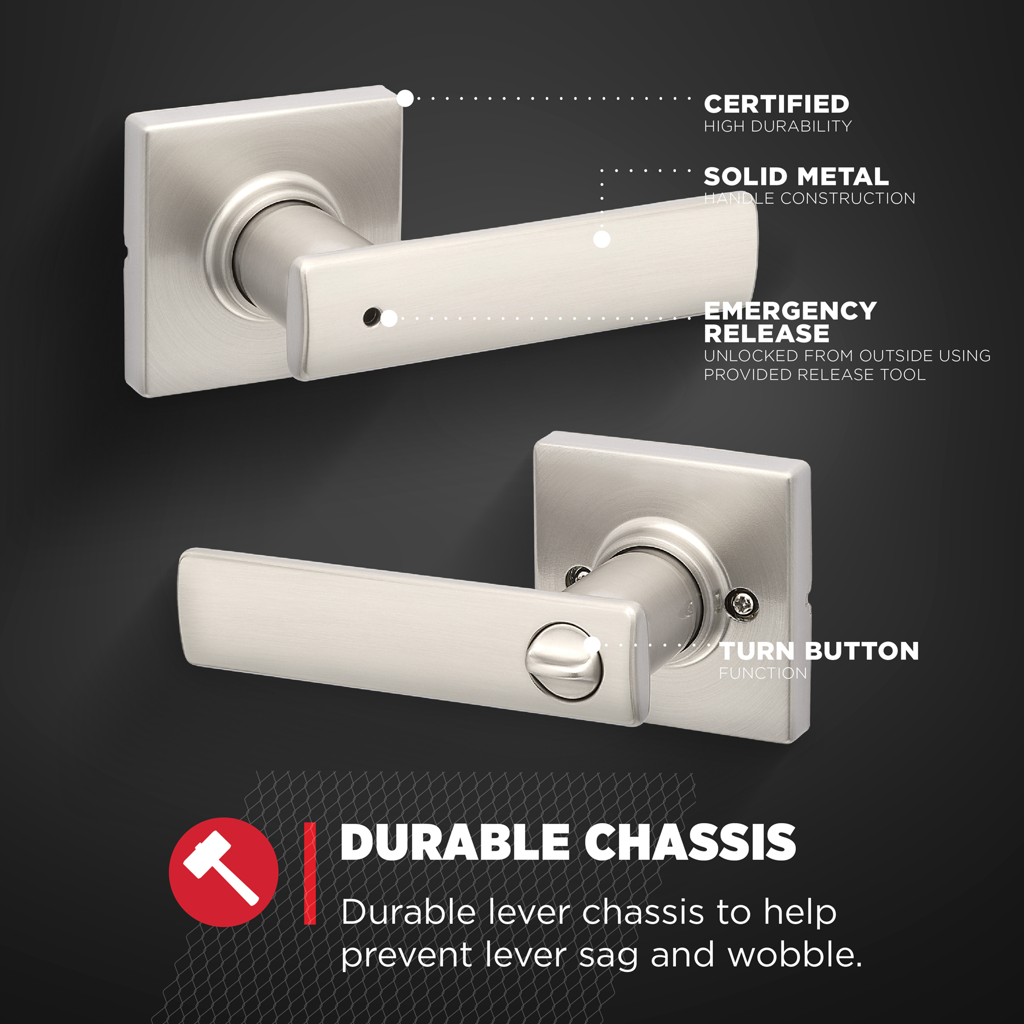 - Locking Privacy: Use on doors requiring privacy, can be locked inside with a turn button and unlocked outside with provided release tool. Recommended for bedrooms and bathrooms