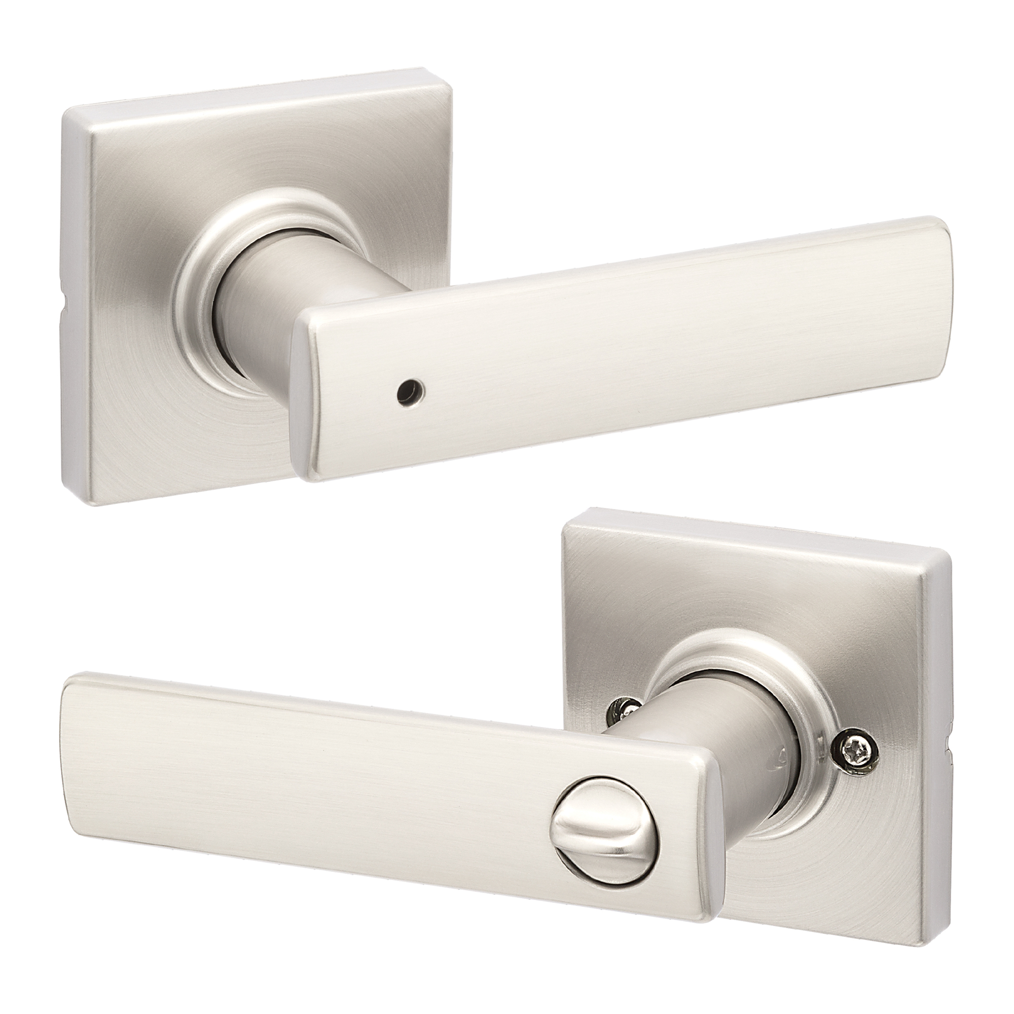 Breton Square Bed/Bath Lever featuring Microban in Satin Nickel