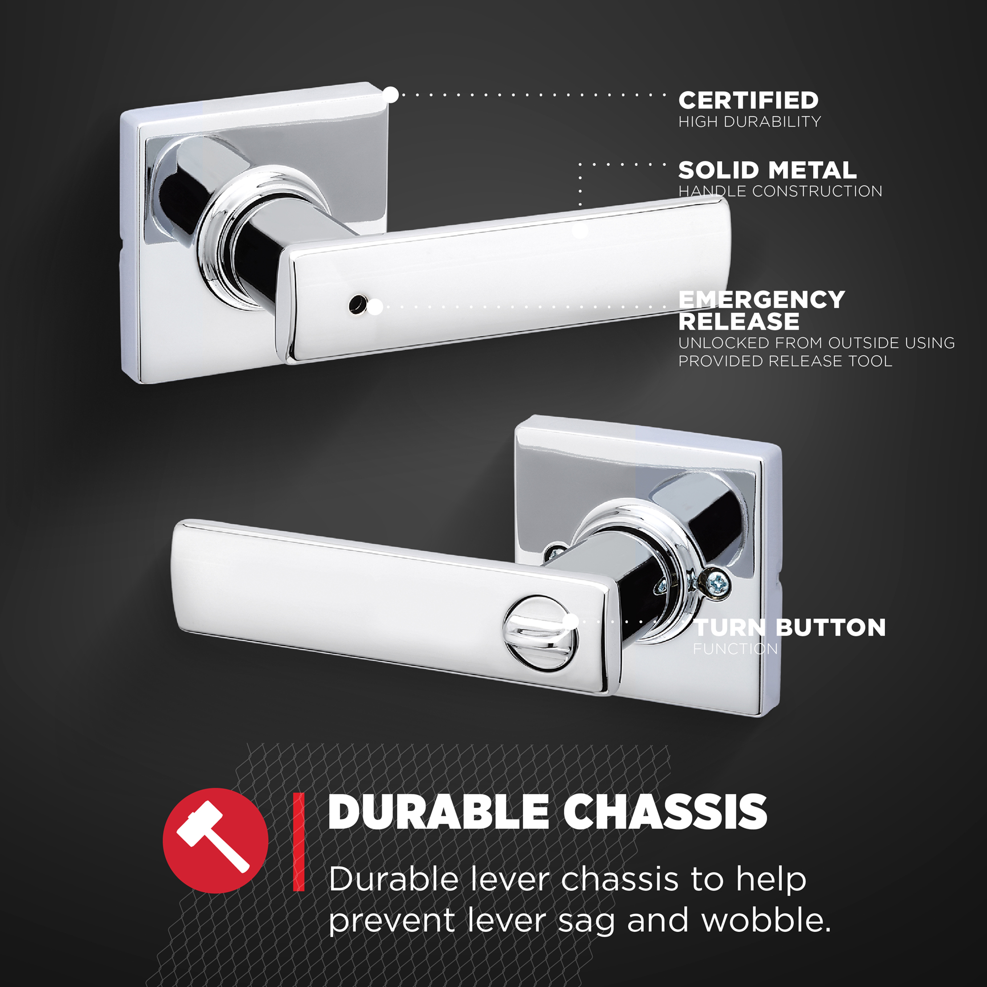 - Locking Privacy: Use on doors requiring privacy, can be locked inside with a turn button and unlocked outside with provided release tool. Recommended for bedrooms and bathrooms