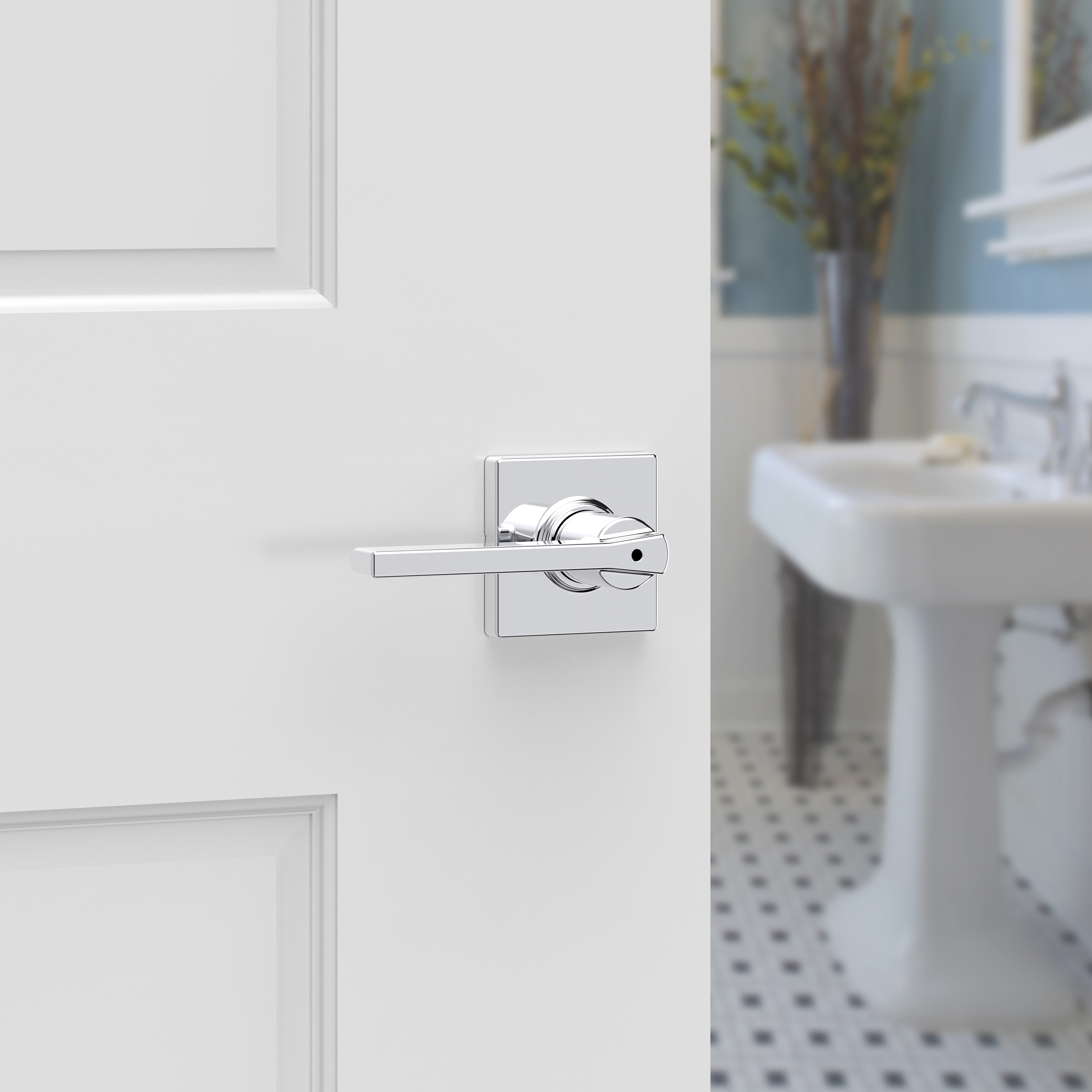 Casey Bed/Bath Door Lever in Polished Chrome with Square Rosette