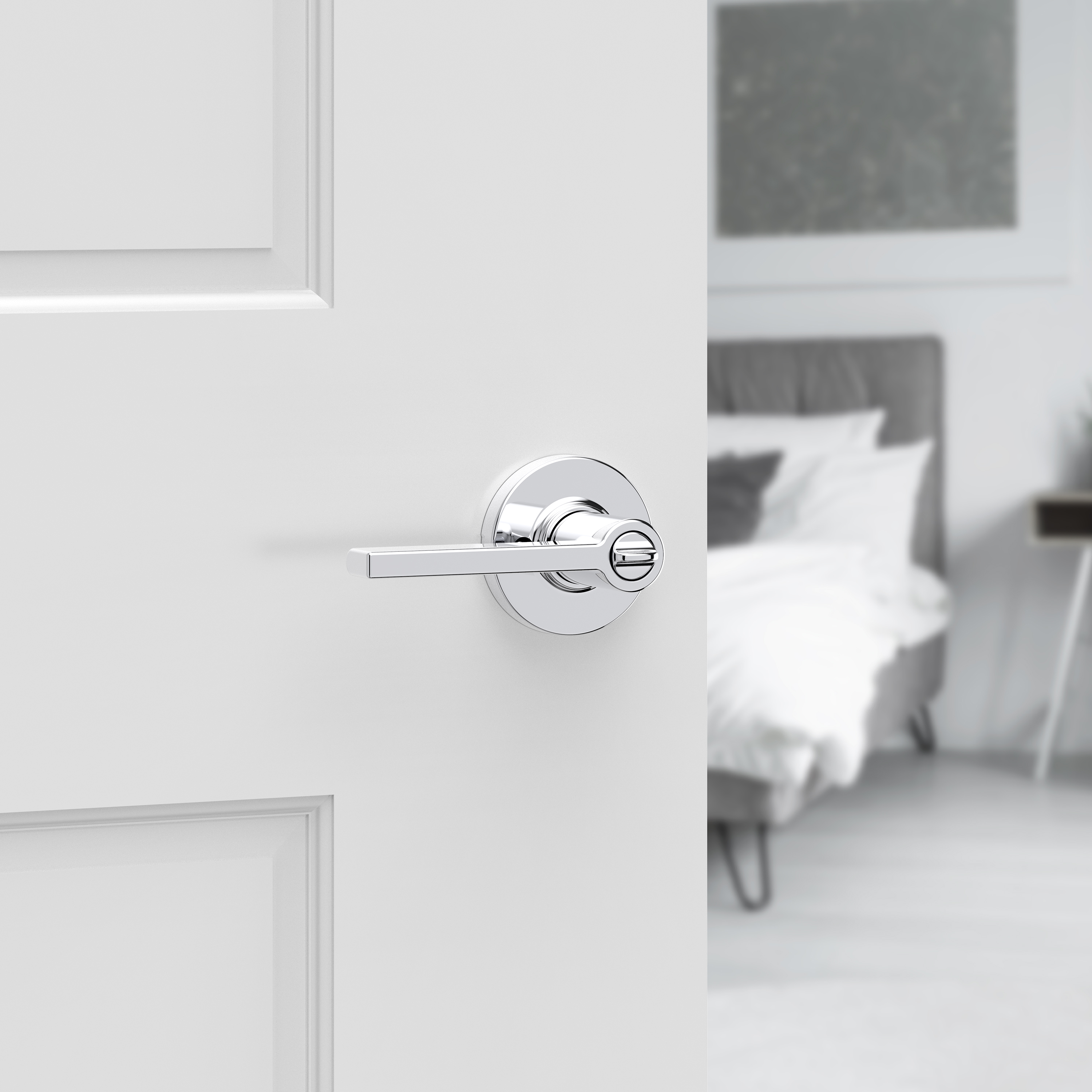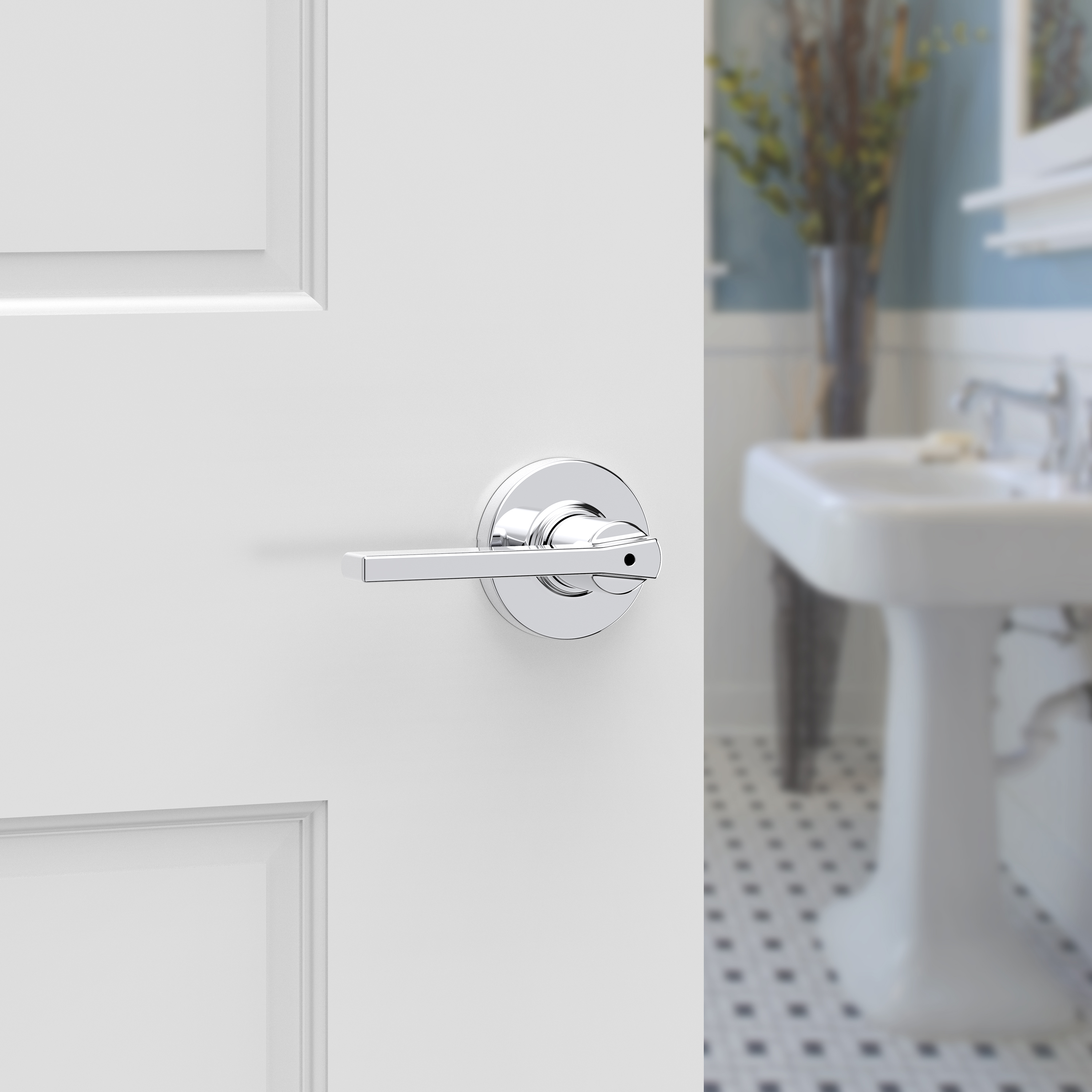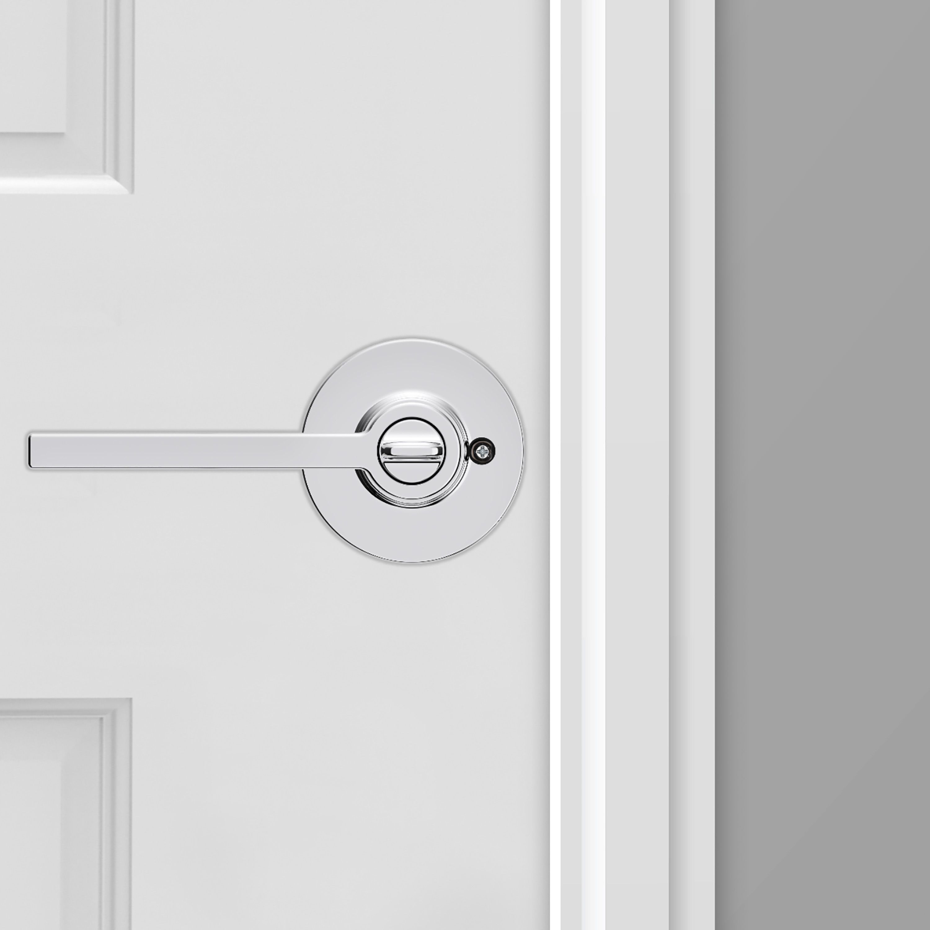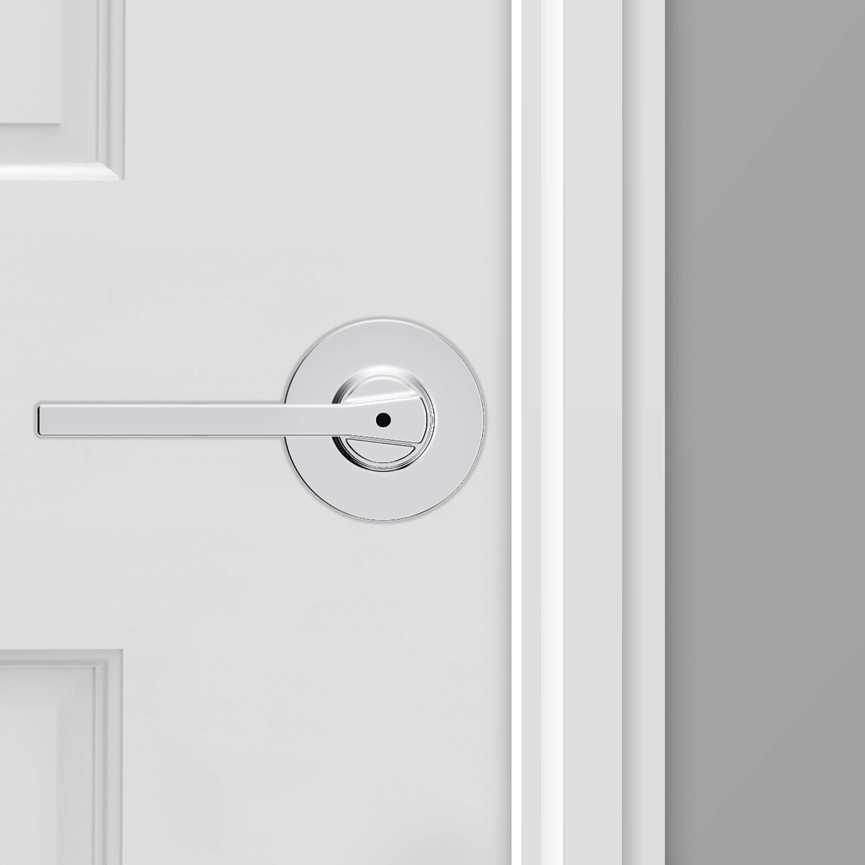 Casey Bed/Bath Door Lever in Polished Chrome with Round Rosette