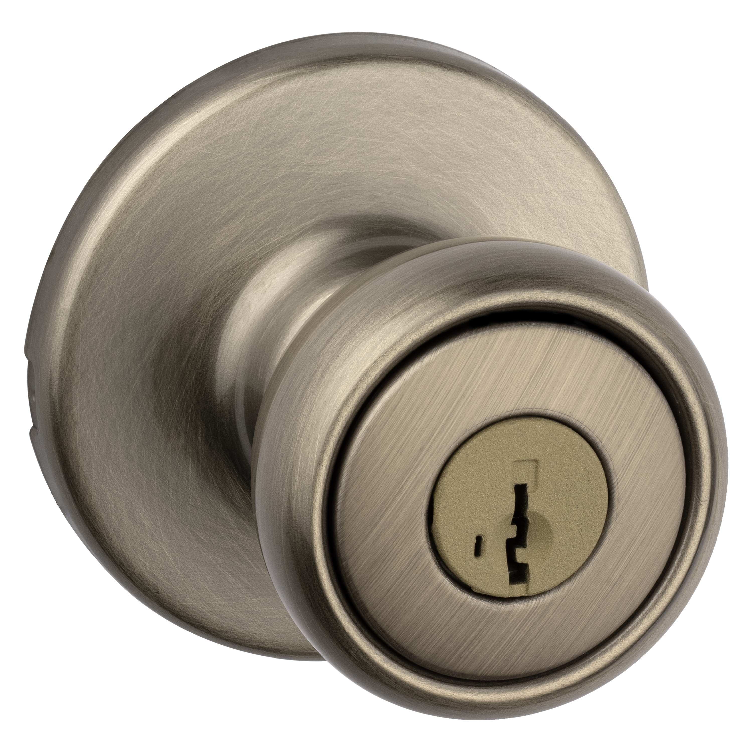 Tylo Keyed Entry Knob featuring SmartKey Security™ in Antique Brass
