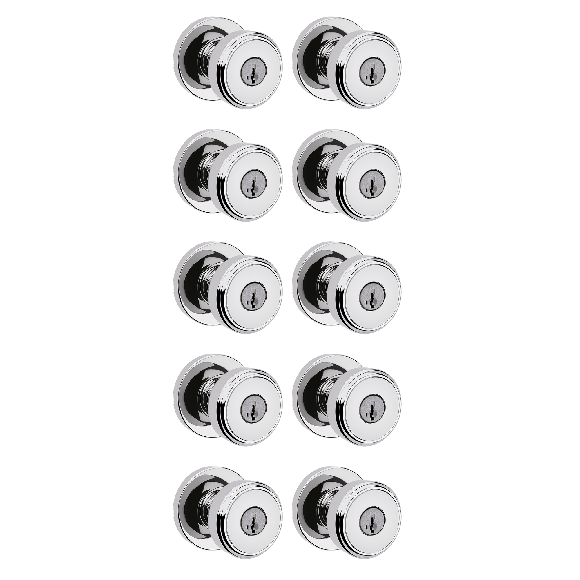 10 PACK KEYED ENTRY: Use on doors where extra security is needed, turn piece interior locking, exterior locking using a key. Recommended for exterior-facing doors