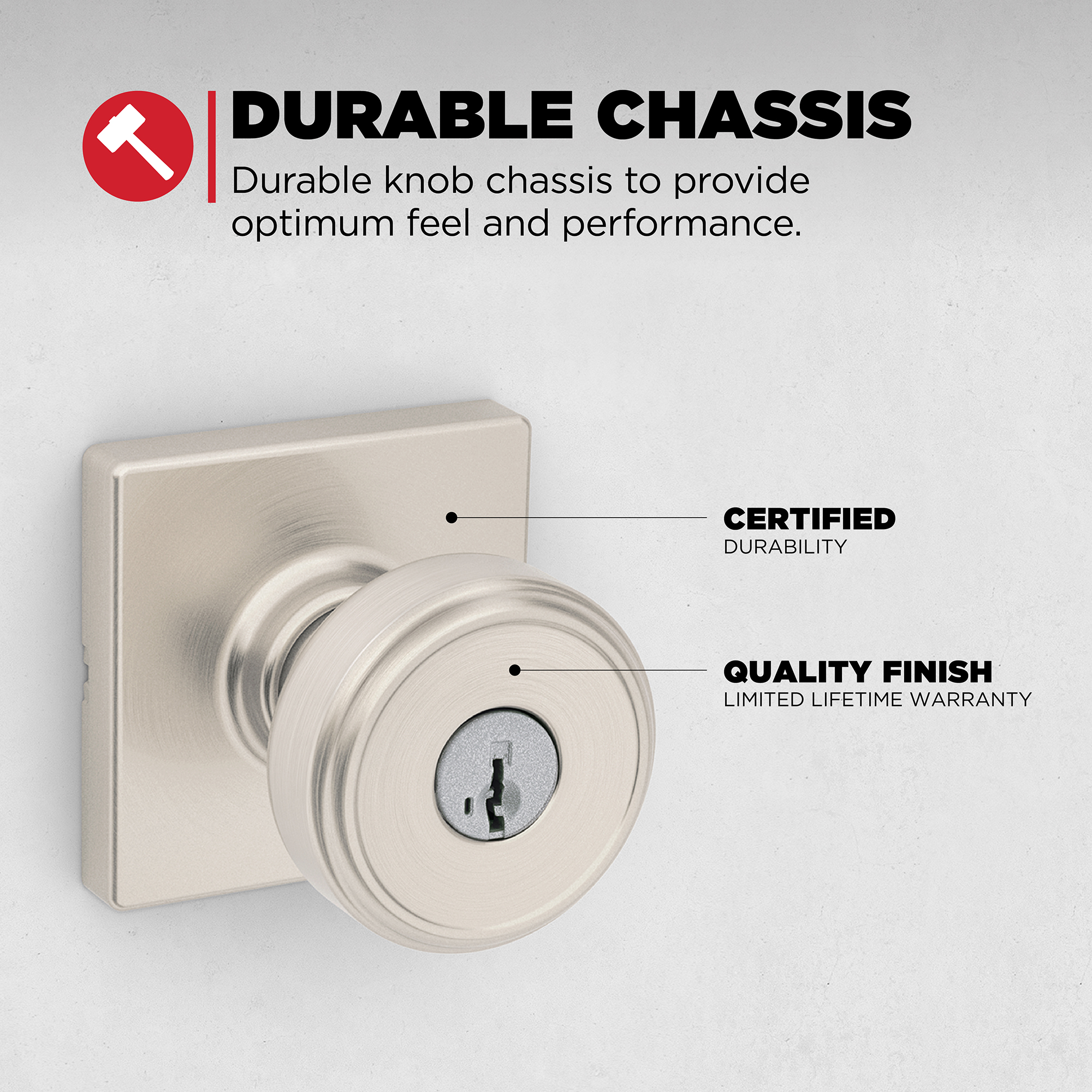 SMARTKEY SECURITY: Kwikset’s SmartKey Security technology protects against advanced break-in techniques and allows you to re-key your lock yourself in seconds