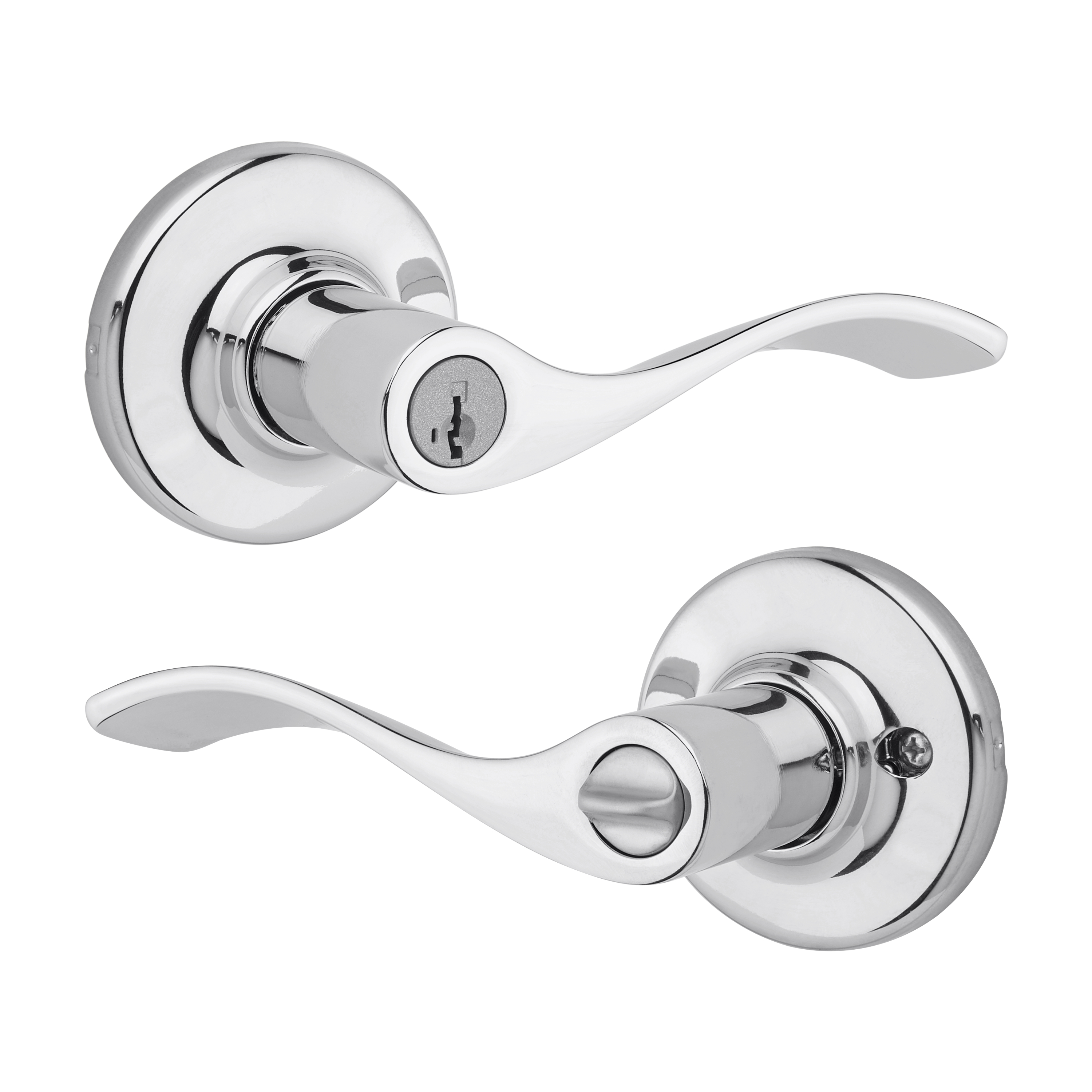 Box Includes: Box includes entry levers, adjustable latch with round and square front options or drive-in collar, round corner strike, SmartKey® tool, 2 Kwikset keys, designer rosette, screws and Allen wrench