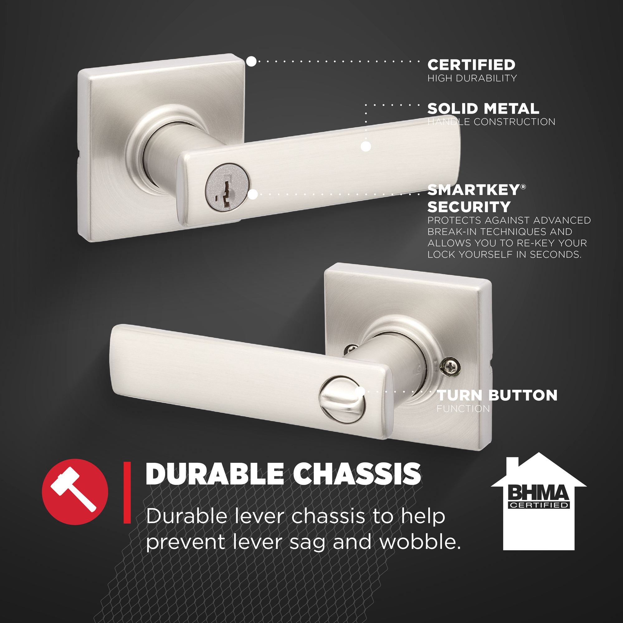 SmartKey Security: Kwikset’s SmartKey Security technology protects against advanced break-in techniques and allows you to re-key your lock yourself in seconds