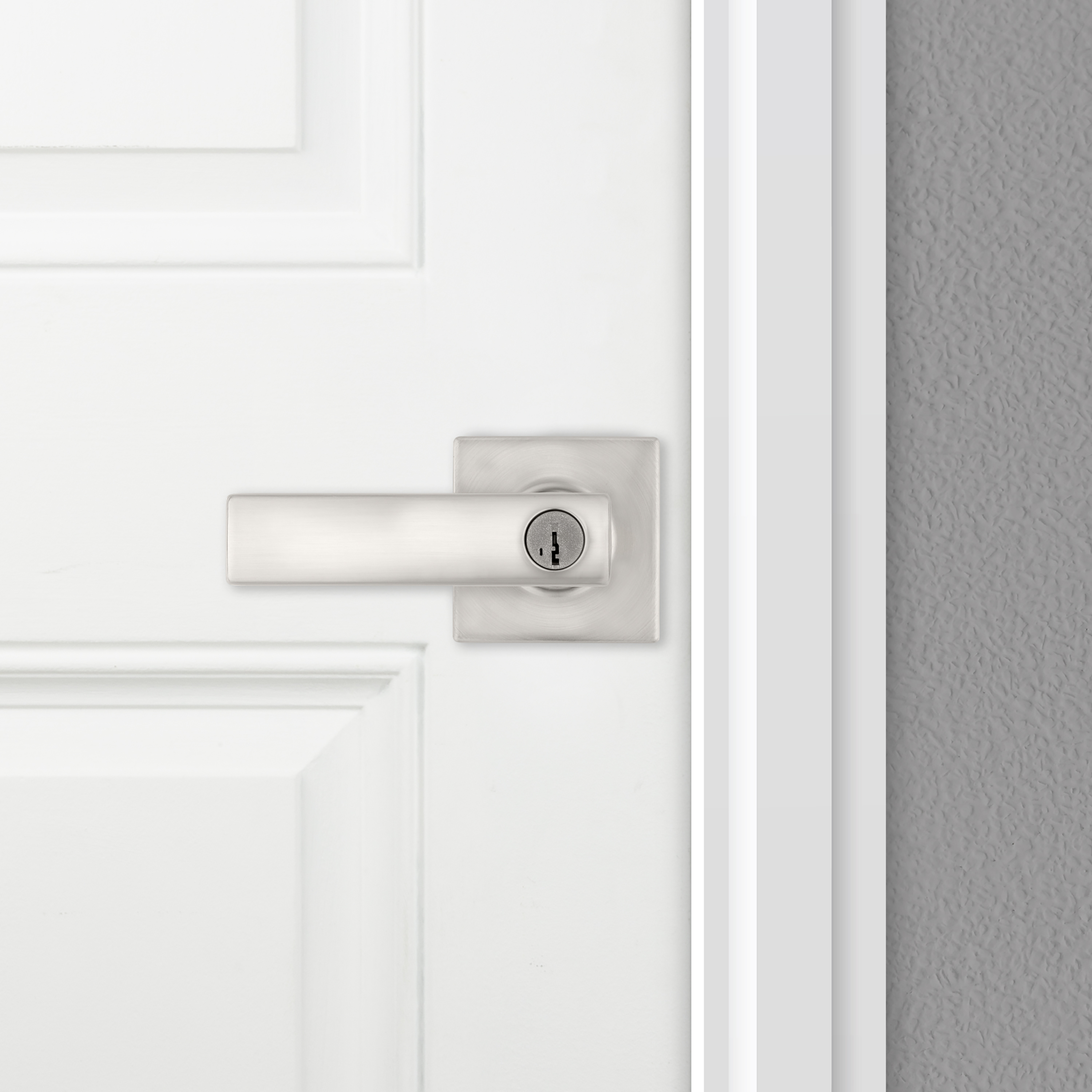 Breton Square Keyed Entry Lever featuring SmartKey Security™ and Microban in Satin Nickel
